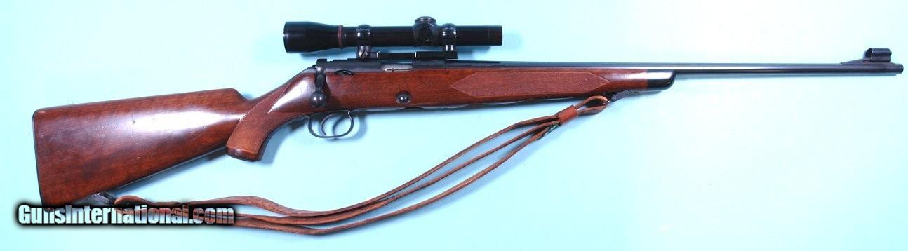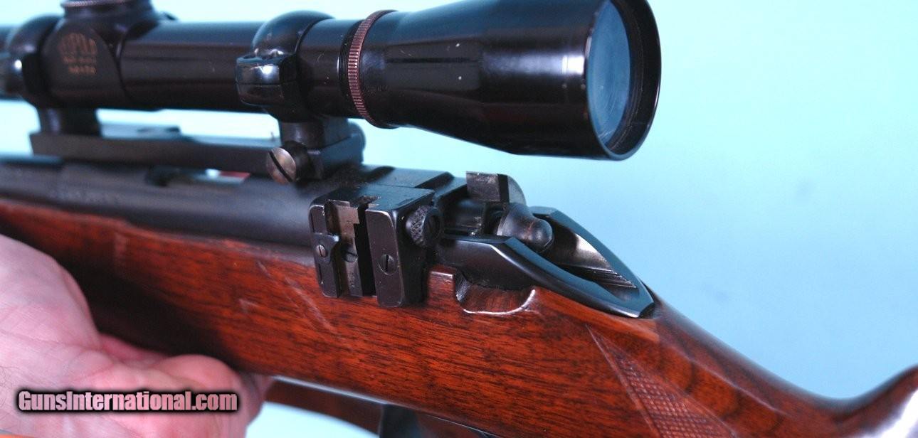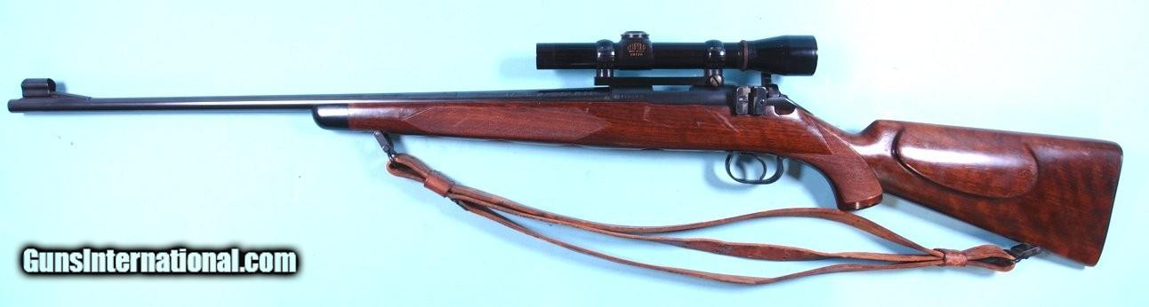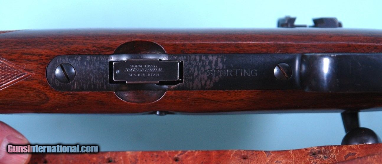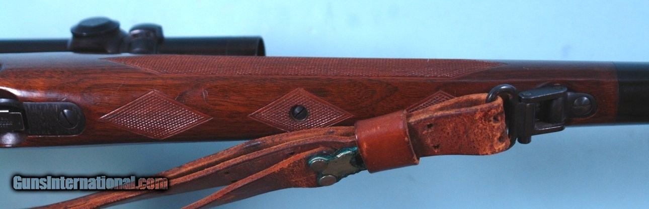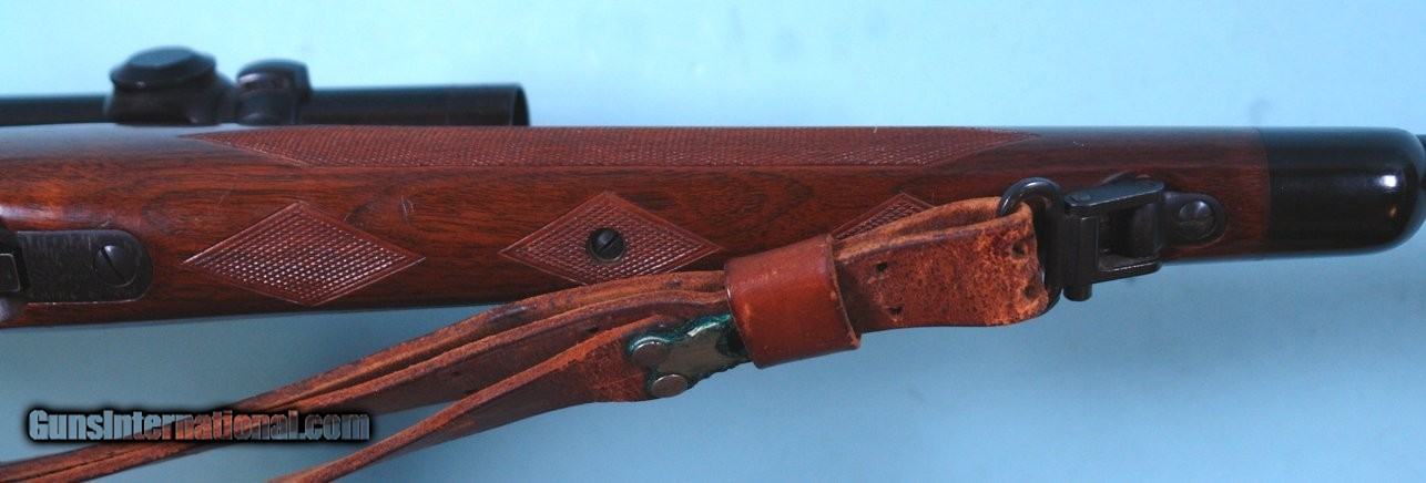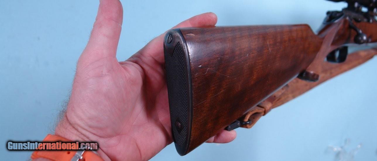Description: EARLY PRE-WAR WINCHESTER MODEL 52 SPORTER .22LR RIFLE MFG. NOV. 1937 WITH EARLY LEUPOLD SCOPE. 24” barrel. Rare early “B” Sporter and in all original excellent plus condition with 99% original blue and nearly all the original stock finish with mint checkering. Has a few minor stock small scratches on the left side. Has seen almost no use with mint new bore. Transition SPORTING model from the “A” model without the side safety to the “B” with it. Stock still has the recess for the bolt safety on the left side opposite the bolt handle. Redfield mount. No added tap holes. Early Leupold M7-3X scope in perfect condition (plain crosshairs). Still has the factory Lyman receiver sight base. Original Winchester Quick Detachable sling swivels. SOLD Curio/Relic: Yes Rifle Caliber: .22 Long Rifle |