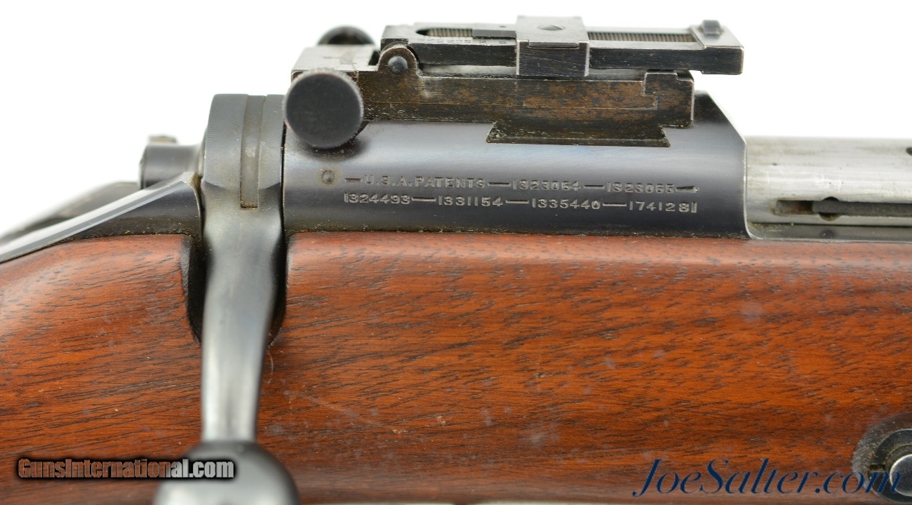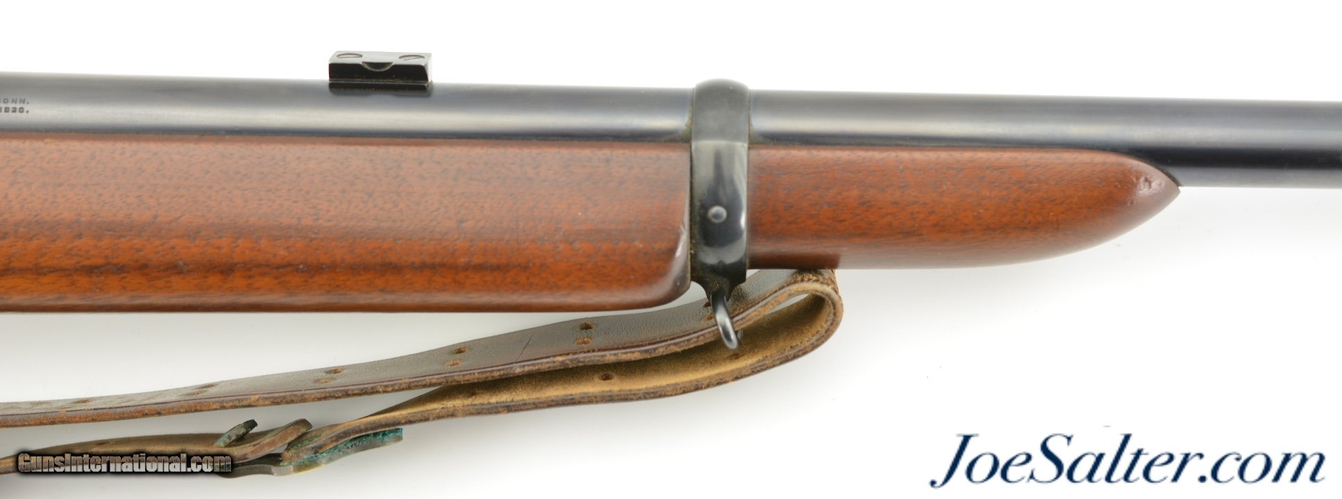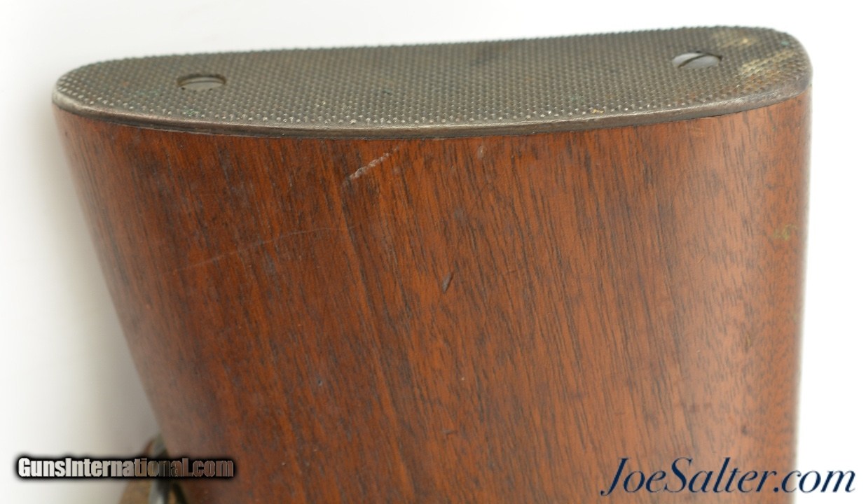 Description: Serial #34811, .22 LR, 28 inch barrel with a bright, excellent bore. This is the Winchester Model 52 Standard rifle manufactured in 1934 featuring the then new Speed Lock and the original model of Laudensack's improved stock with Semi-Beavertail fore-end stock. In excellent condition the barrel and action retain virtually all, 97-98% of the original blue finish with loss at the muzzle and some freckling at the trigger-guard. The stock is in excellent condition. It is equipped with scope blocks and sighted with a redfield front sight with target insert and filp-up adjustable rear sight. Included is an original 10 round Winchester magazine with 1919 patent date and a H.D.C / H&P 1918 dated leather military rifle sling. An excellent Winchester 52 in very high condition. FFL or C&R SOLD Curio/Relic: Yes |