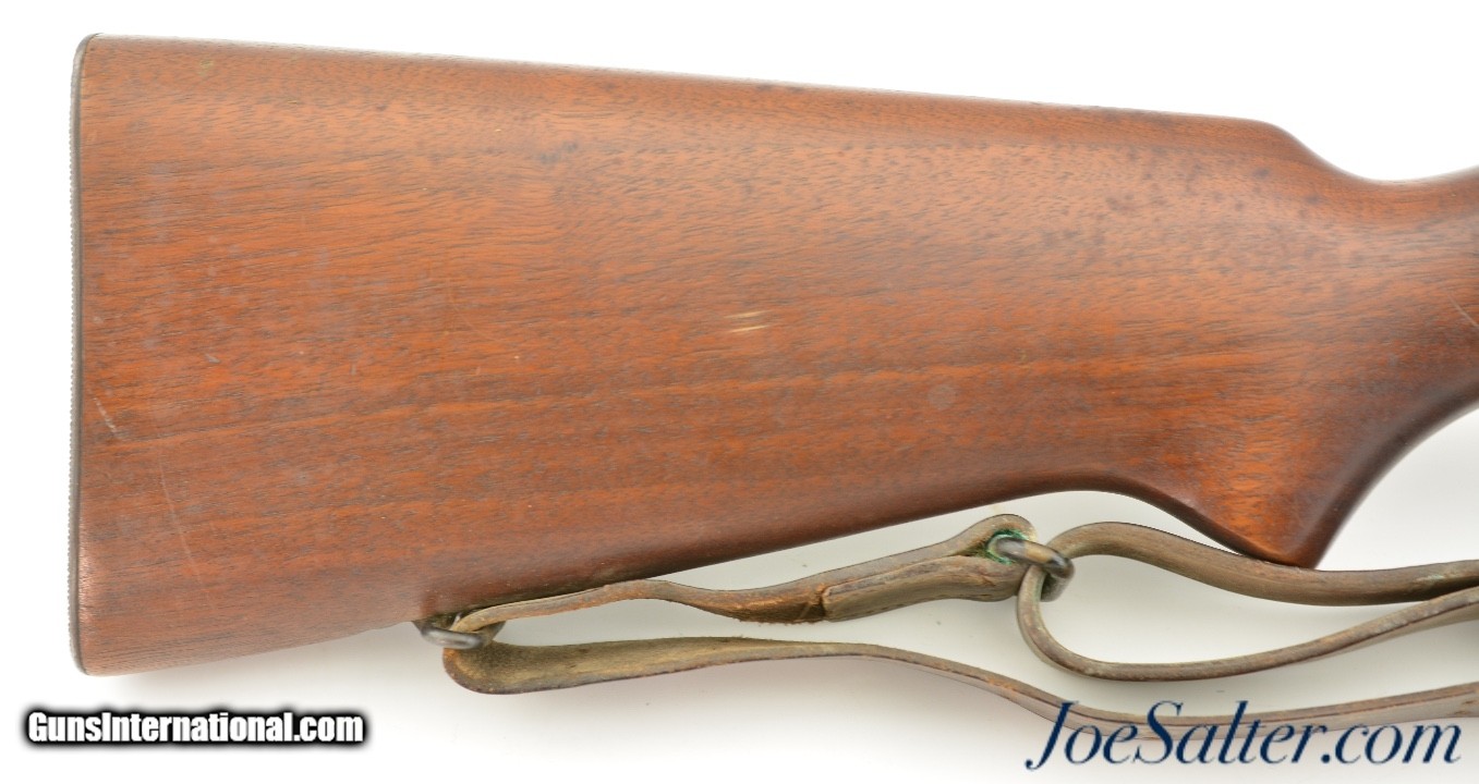 Description: Serial #34811, .22 LR, 28 inch barrel with a bright, excellent bore. This is the Winchester Model 52 Standard rifle manufactured in 1934 featuring the then new Speed Lock and the original model of Laudensack's improved stock with Semi-Beavertail fore-end stock. In excellent condition the barrel and action retain virtually all, 97-98% of the original blue finish with loss at the muzzle and some freckling at the trigger-guard. The stock is in excellent condition. It is equipped with scope blocks and sighted with a redfield front sight with target insert and filp-up adjustable rear sight. Included is an original 10 round Winchester magazine with 1919 patent date and a H.D.C / H&P 1918 dated leather military rifle sling. An excellent Winchester 52 in very high condition. FFL or C&R SOLD Curio/Relic: Yes |
