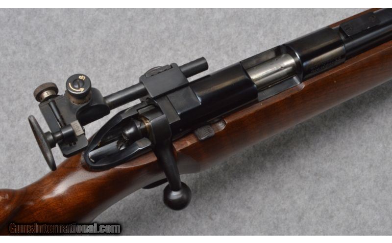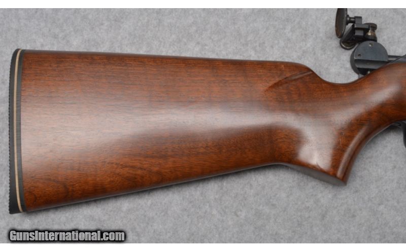 Description: SOLD Manufacturer: S/N - 1055310 Caliber Info: .22 LR Metal Condition: Excellent Wood Condition: Very Good Bore Condition: Bright & Crisp Barrels: 28 Triggers: Factory Stock: Walnut Stock Dimensions: 13-3/8" LOP Fore End: Walnut Butt Pad: Black Plastic Weight: 9lb 15oz Sights: Lyman Target Peep Rear, Lyman Target Front Item Location: West Chester, OH |