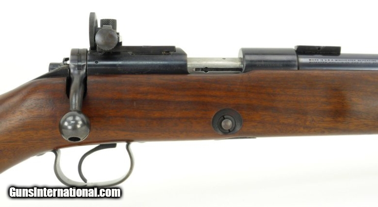 Winchester 52 .22 LR caliber rifle. Model 52 speedlock target. Manufactured approximately 1934. Bore is excellent. Action works perfectly. Gun has 98% blue. Oil finished stock is excellent. Rear sight is a Redfield and front sight is a hooded post bulls-eye. Excellent condition 52 Target.