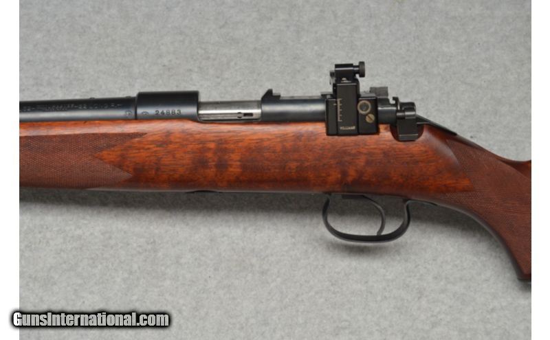 Description: SOLD Caliber Info: .22 long rifle Metal Condition: excellent Wood Condition: excellent Bore Condition: shiny Barrels: 24" heavy barrel Stock: checkered walnut Stock Dimensions: LOP 13 Fore End: checkered walnut Butt Pad: metal plate Weight: 8lbs 1oz Sights: peep iron sights Item Location: Fort Worth, TX |