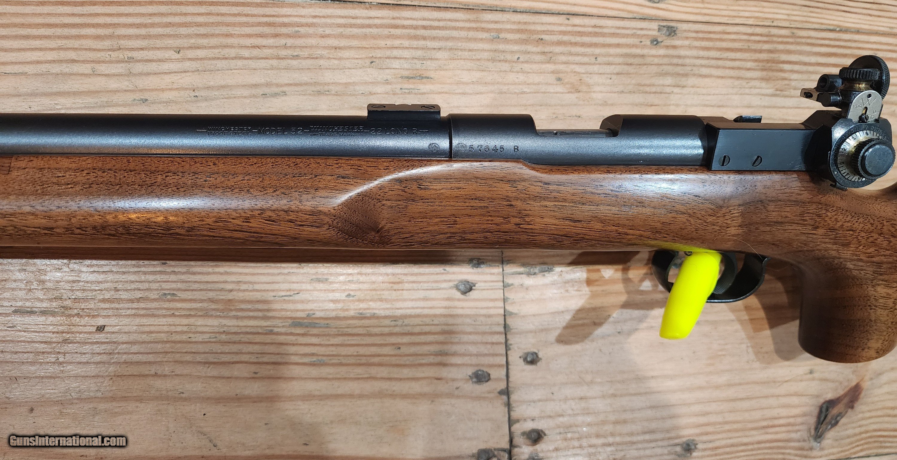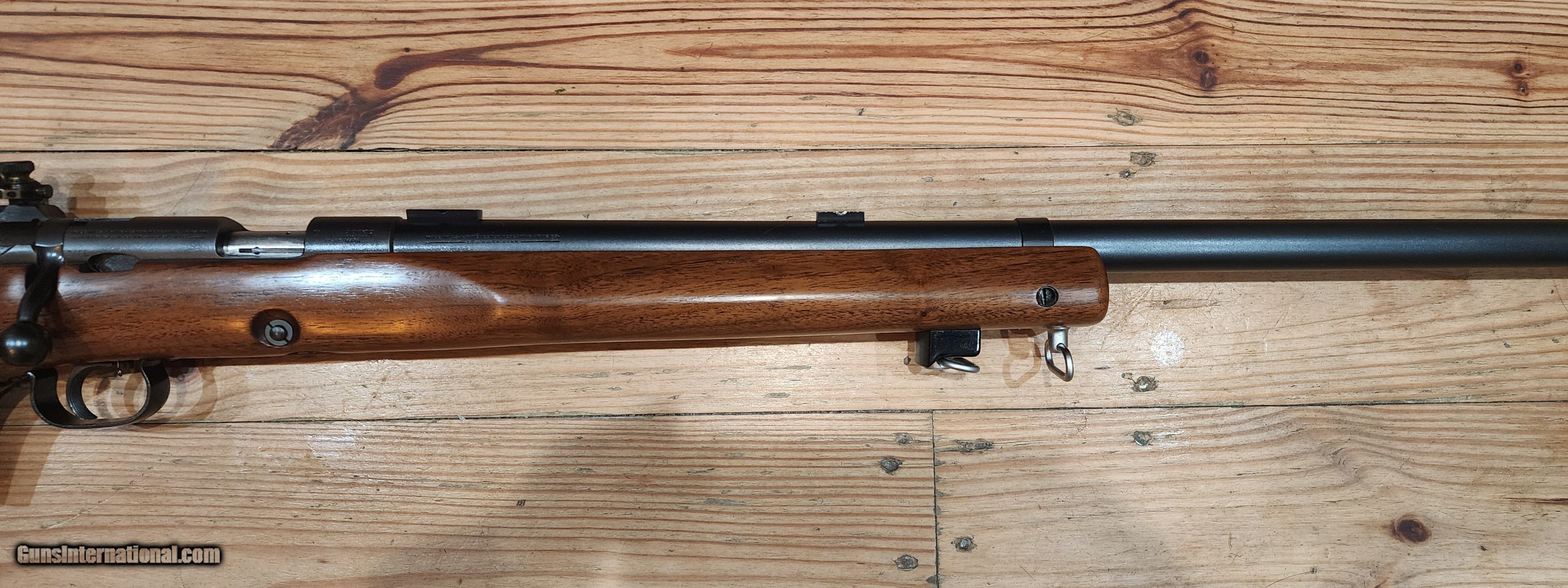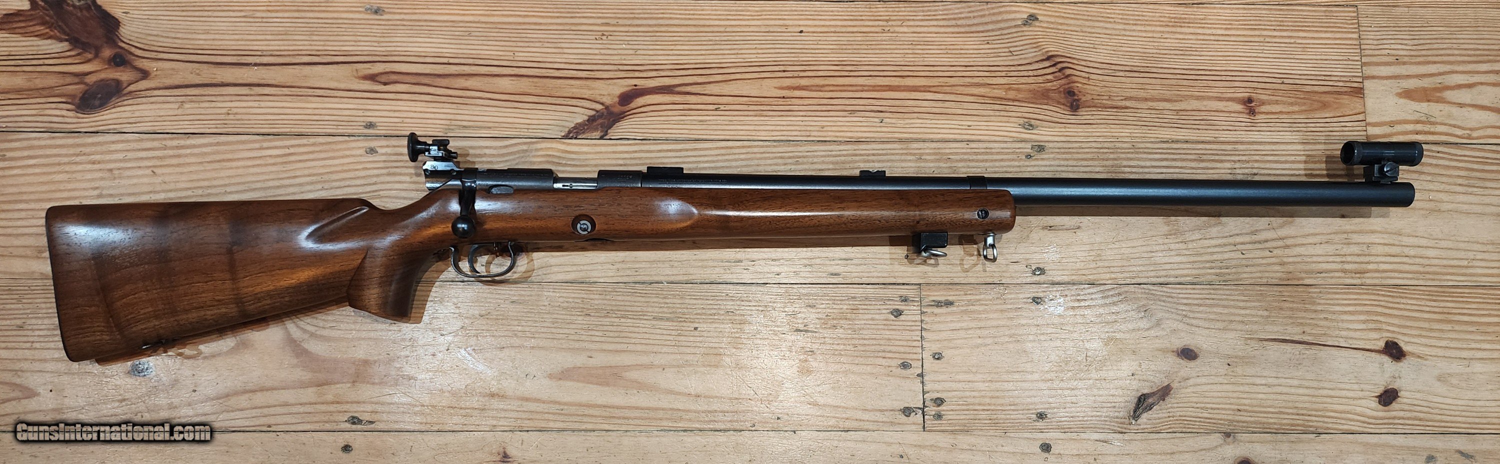 Description: From my personal Collection we have an excellent condition 52B BULL barrel. VERY RARE and made in 1940. If my data is correct it should be a 2nd year gun. Correct bead blast blue finish is in 99% condition with no wear present. Stock is excellent with I believe orginal varnish. There is a small stock repair on the left side half way down the barrel, not noticeable unless your hunting for it. Comes as pictured with RARE Vaver Irons, barrel blocks, apature inserts for front and rear sights and rear sight box. Rare Canjar 2oz Trigger!!! Included is a correct patten date 5 round magazine and a correct 52B single shot magazine. It is clean and ready to go to it's new caretaker. Feel free to call with questions or offers Monday-Sunday 9am-9pm EST More pictures available to serious buyers. Thank you for looking. SOLD Curio/Relic: Yes Rifle Caliber: .22 Long Rifle Manufacturer: Winchester Model: 52 Condition: Mint Metal Condition: Excellent Wood Condition: Excellent Bore Condition: Excellent |