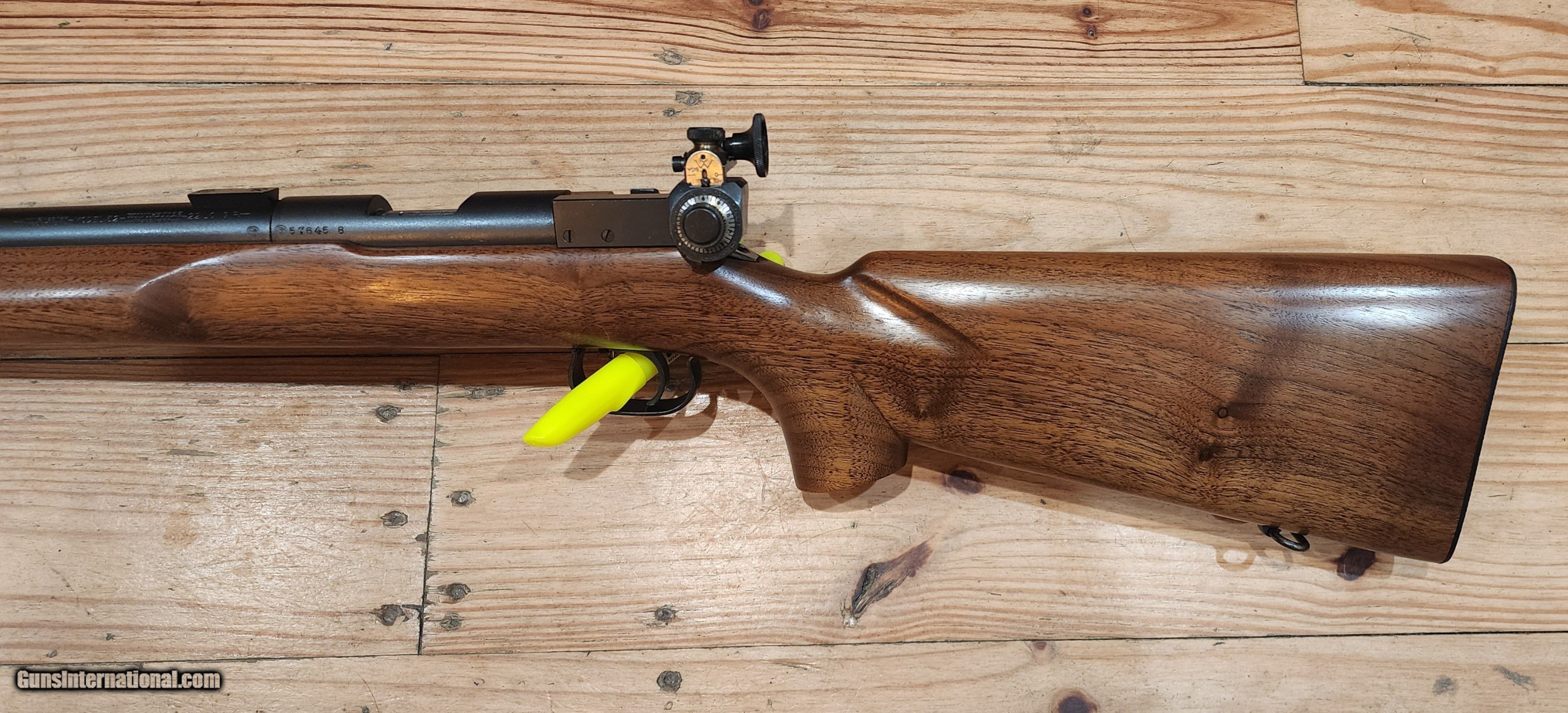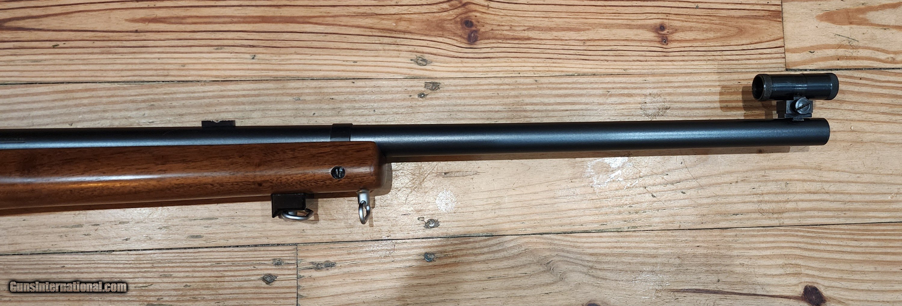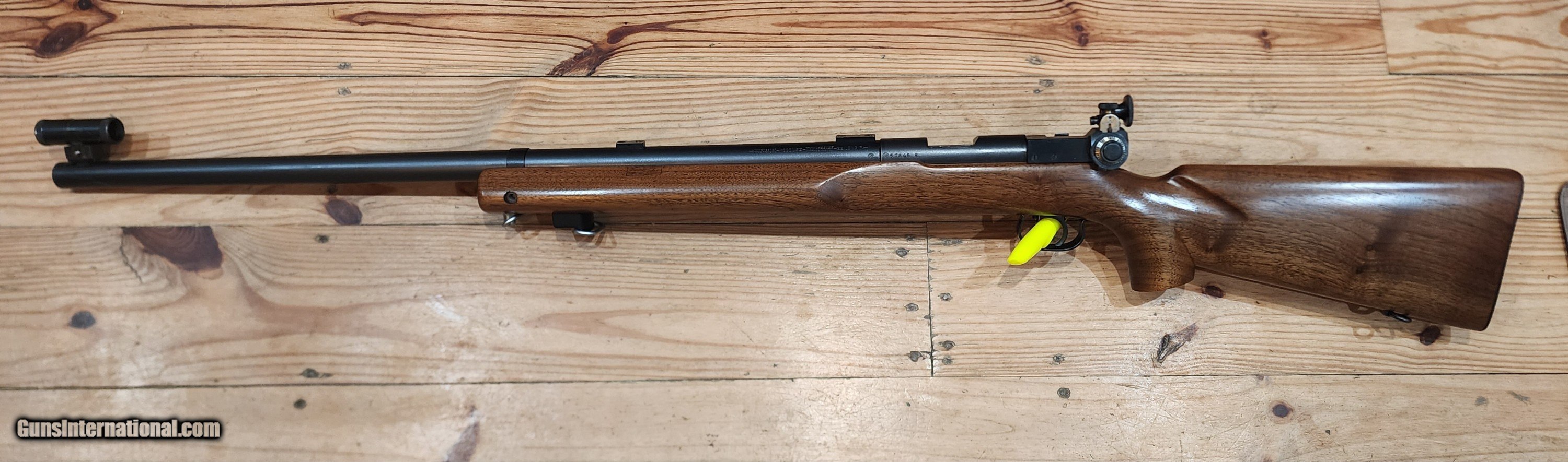 Description: From my personal Collection we have an excellent condition 52B BULL barrel. VERY RARE and made in 1940. If my data is correct it should be a 2nd year gun. Correct bead blast blue finish is in 99% condition with no wear present. Stock is excellent with I believe orginal varnish. There is a small stock repair on the left side half way down the barrel, not noticeable unless your hunting for it. Comes as pictured with RARE Vaver Irons, barrel blocks, apature inserts for front and rear sights and rear sight box. Rare Canjar 2oz Trigger!!! Included is a correct patten date 5 round magazine and a correct 52B single shot magazine. It is clean and ready to go to it's new caretaker. Feel free to call with questions or offers Monday-Sunday 9am-9pm EST More pictures available to serious buyers. Thank you for looking. SOLD Curio/Relic: Yes Rifle Caliber: .22 Long Rifle Manufacturer: Winchester Model: 52 Condition: Mint Metal Condition: Excellent Wood Condition: Excellent Bore Condition: Excellent |