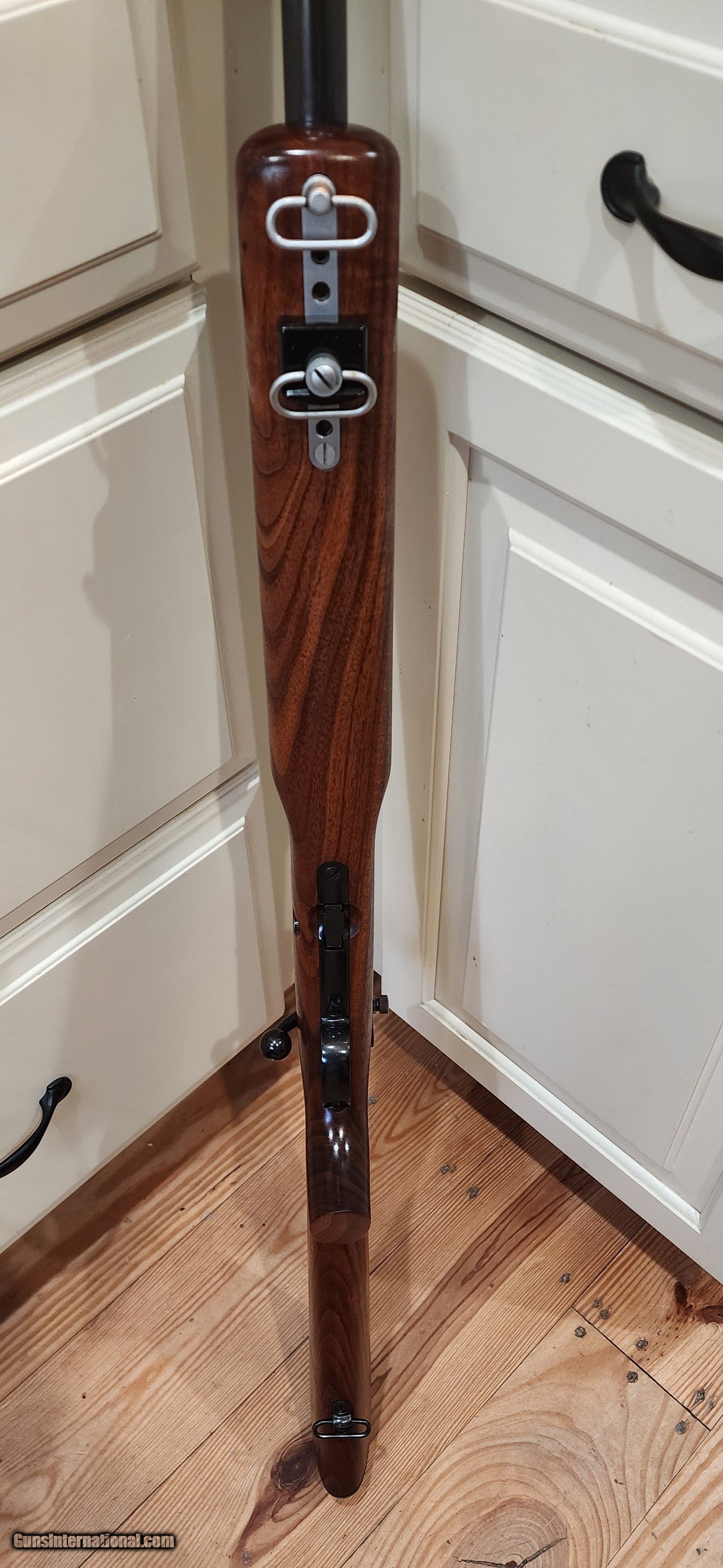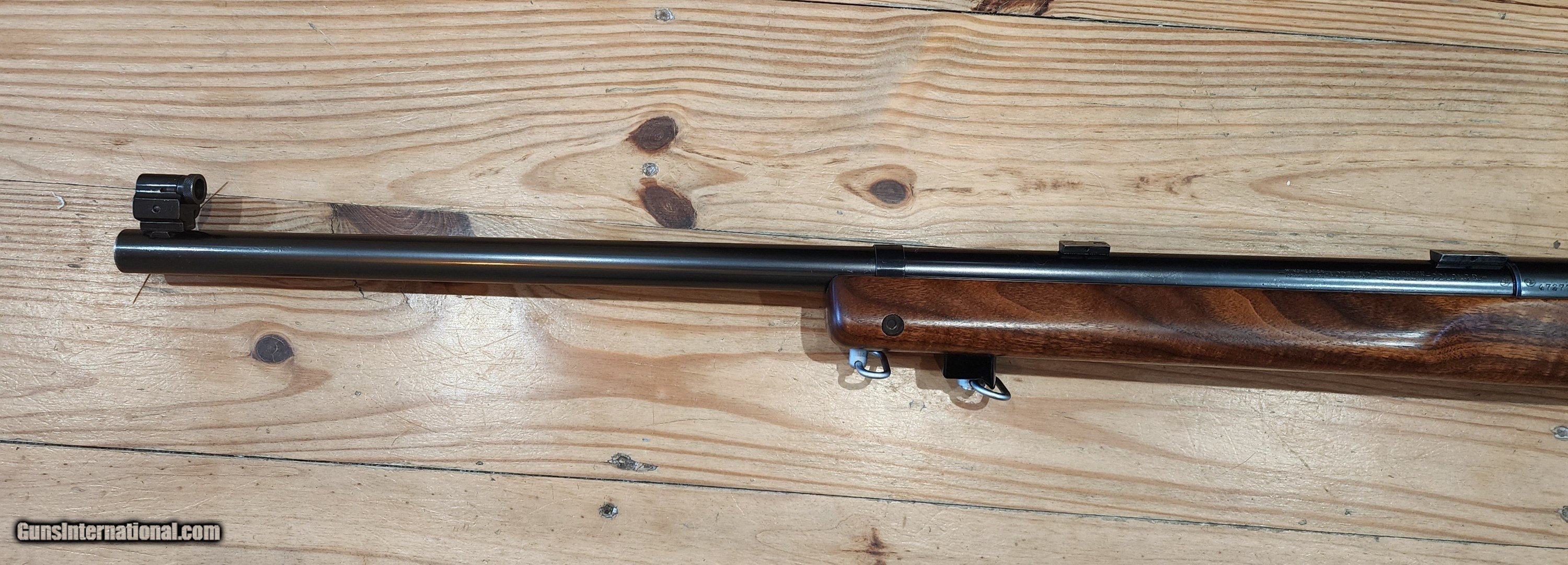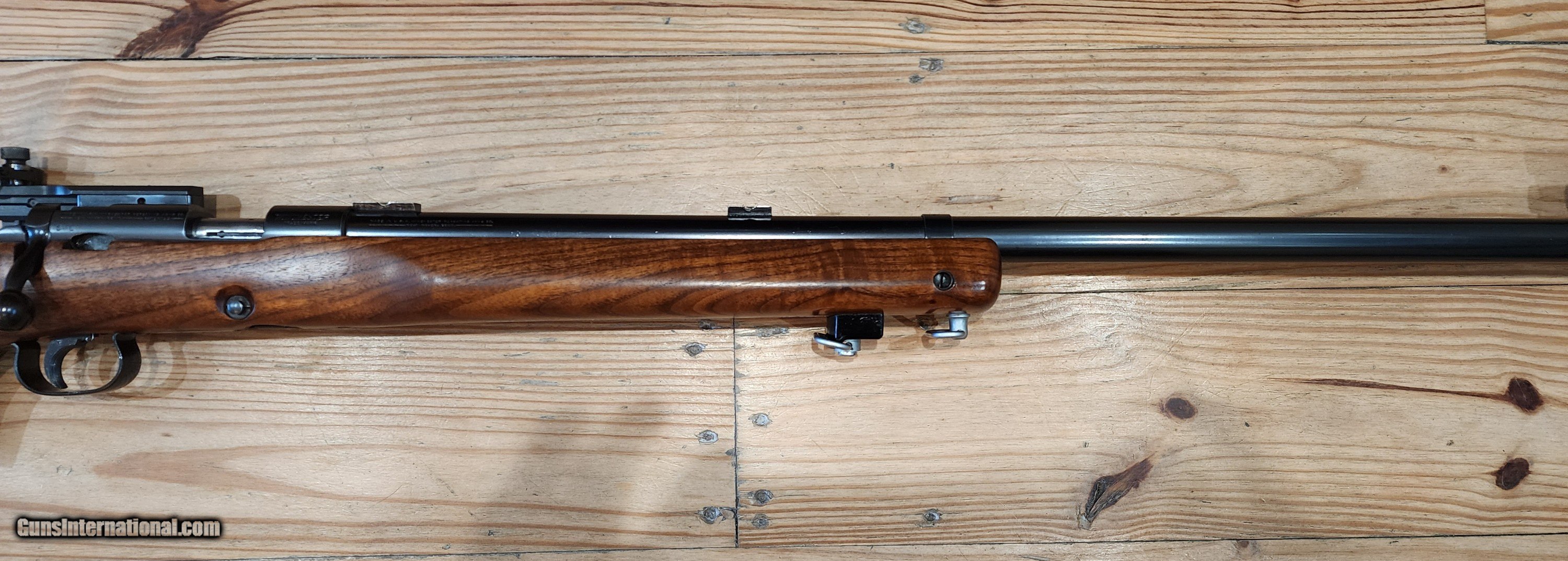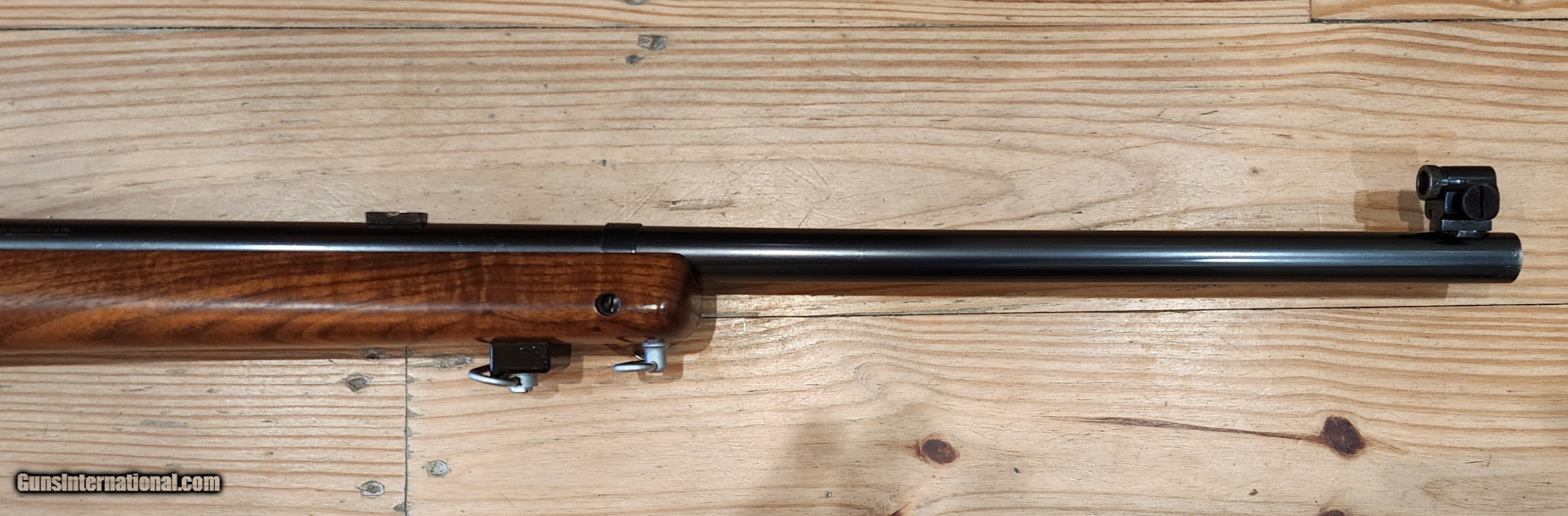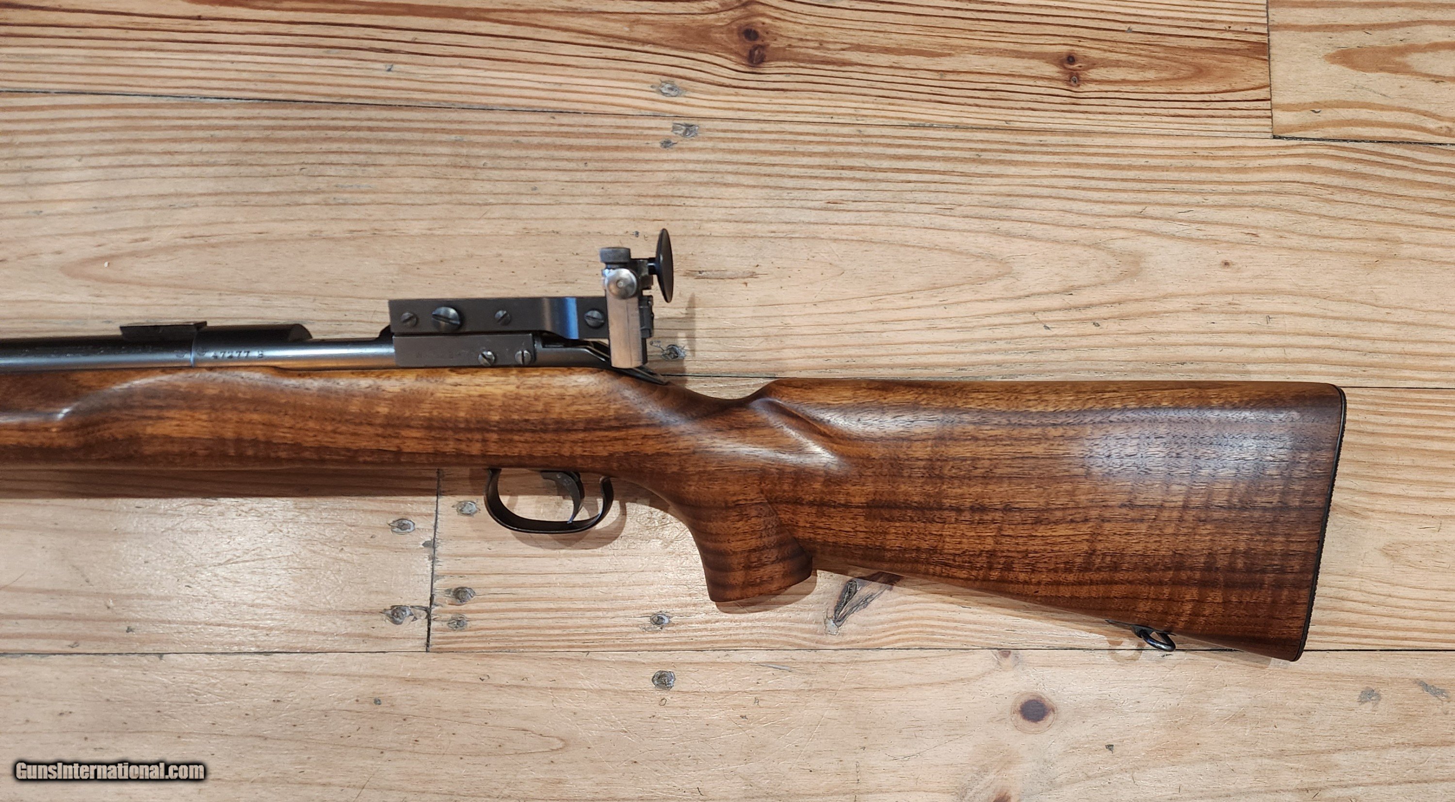 Description: Another absolutely breathtaking Winchester 52B heavy barrel with original Marksman stock made in 1937 from my collection. Original blue is 99%. Stock appears to have all orginal varnish remaining, but might have been refinished. Look at that wood! Comes complete as shown with correct Marble Goss irons, barrel blocks and an amazing rare Canjar 2oz trigger!!! Everything functions as it should. Bolt matches the gun. Gun is spotless! Not included in pictures is an orginal leather sling! You won't be disappointed with this. Bore is mint, excellent crown as well. It is clean and ready to go to it's new caretaker. Correct patent date 5 round magazine is included. More pictures avail to serious buyers. Feel free to call with questions or offers Monday-Sunday 9am-9pm EST More pictures available to serious buyers. Thank you for looking. SOLD Curio/Relic: Yes Rifle Caliber: .22 Long Rifle Manufacturer: Winchester Model: 52 Bore: Excellent Condition: Mint Metal Condition: Excellent Wood Condition: Excellent |