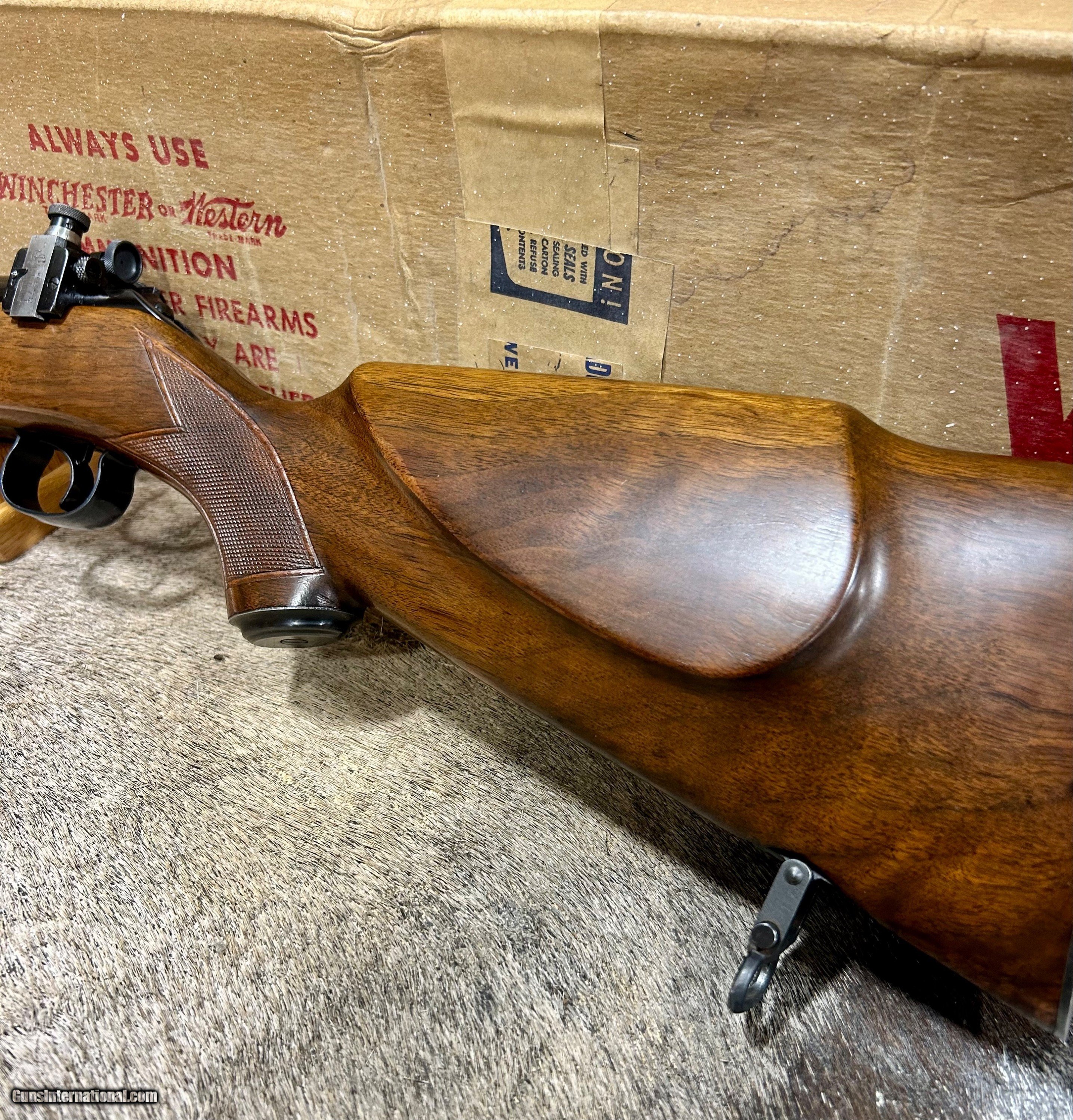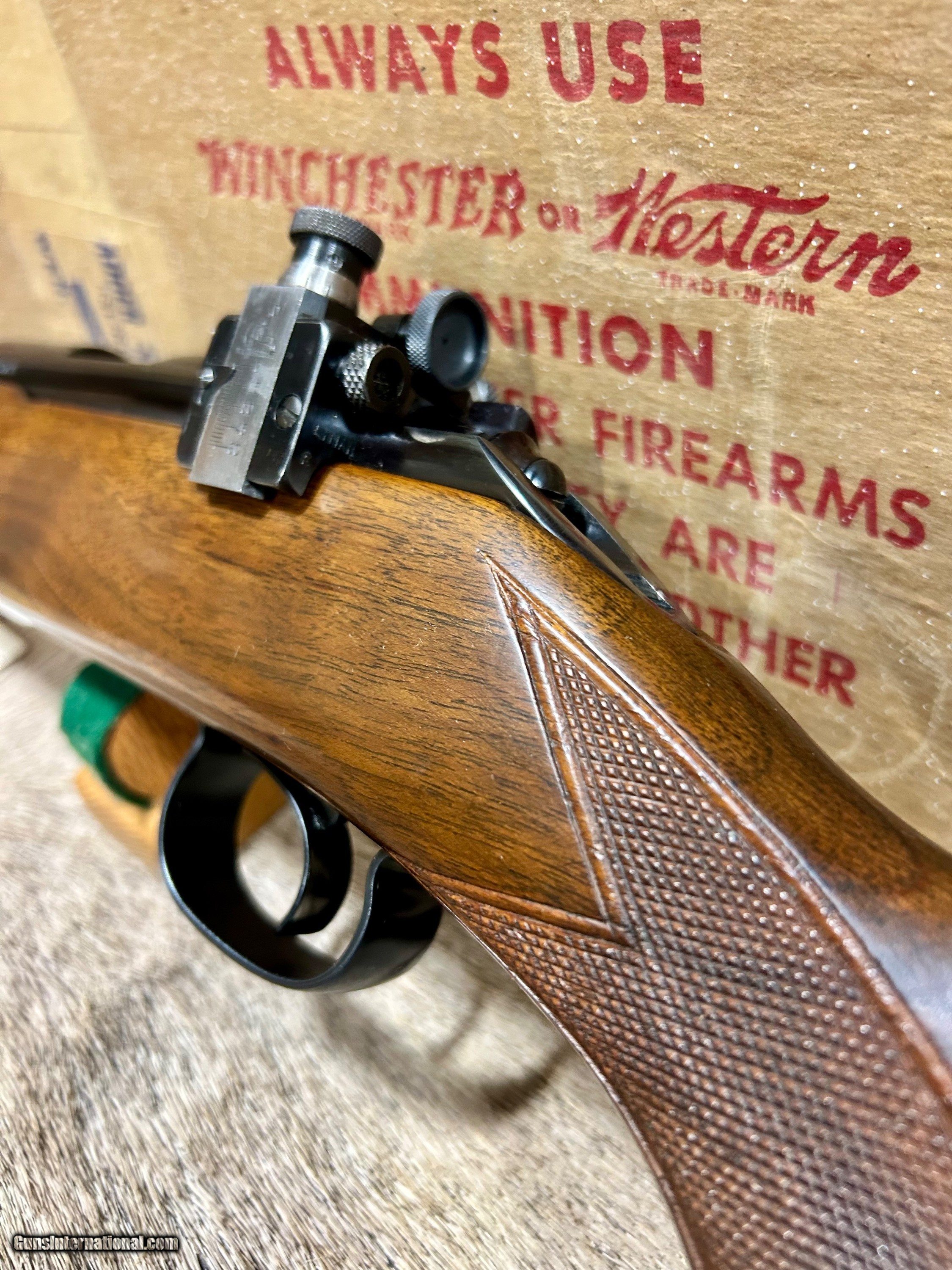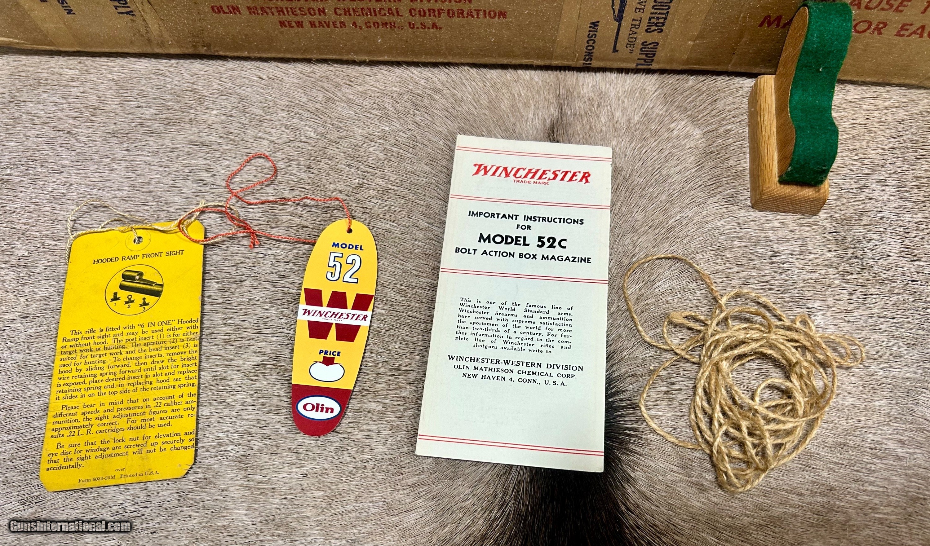 Description: *****ON HOLD****Up for sale I have another unbelievable rifle. This one is a Winchester 52C sporter that is 100% NIB. This is the only one of these that I have ever seen come to market for sale that was NIB. This particular one was made in 1956 and it looks like it did the day it left the factory. Included with this gun is its ORIGINAL box,sling swivels, hang tags, manual, and string that was originally tied around the box when it left Winchester. It also has the dividers and wooden block inside at the end of the box. It has a reciever sight but it is NOT cut into the wood. You will never have another opportunity to own one of these NIB again so don't let this one get away. Shipping and ins will be $99 and to FFL or C and R only. Please don't hesitate to ask any questions or request anymore photos. SOLD |