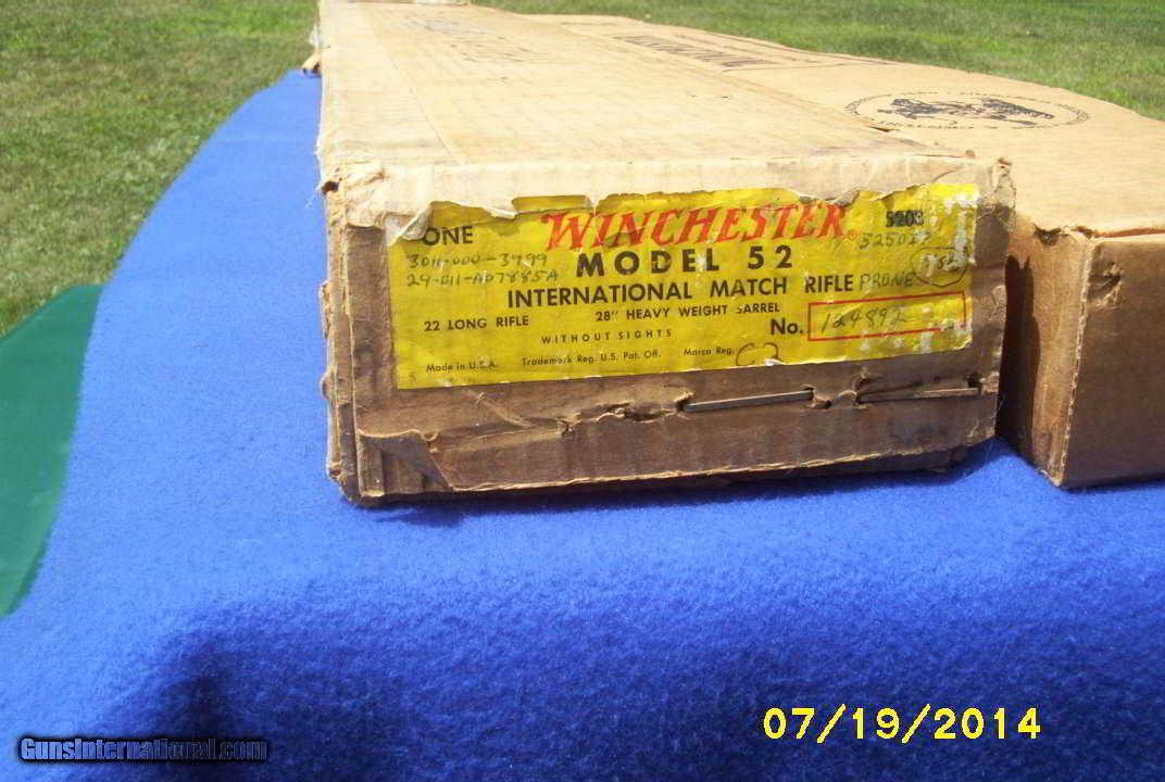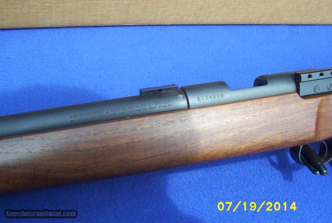 Description: Winchester Collectors--For sale is a 1 of 37 Winchester 52E International Prone rifle. There were only 37 of this model made. Rifle is in 98% condition. These rifles were all special orders. This one was ordered without sights, but have a set of Redfield Olympics to go with it which are mint. Have the original box and shipping carton with end label. This is the rarest Model 52 ever produced. $13,995.00 or best offer. Anyone seriously interested please call as I am buying a recretaional piece of property and guns are "going to go". Reduced to $12,995. Willing to do a layaway program also. Reduced again to $11,000. Reduced to $9,995.00 Reduced again to $8995. THIS RIFLE HAS BEEN SOLD. Thank You SOLD Manufacturer: Winchester Model: 52E Serial Number: E124892 Caliber Info: 22LR Condition: Excellent Condition Metal Condition: Exc. cond Wood Condition: Exc. cond. |