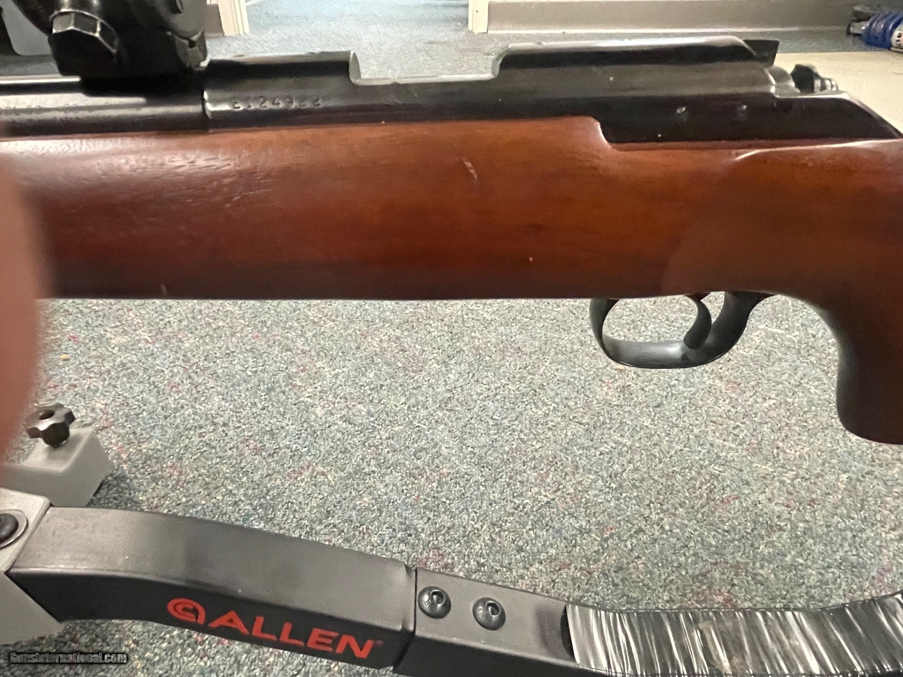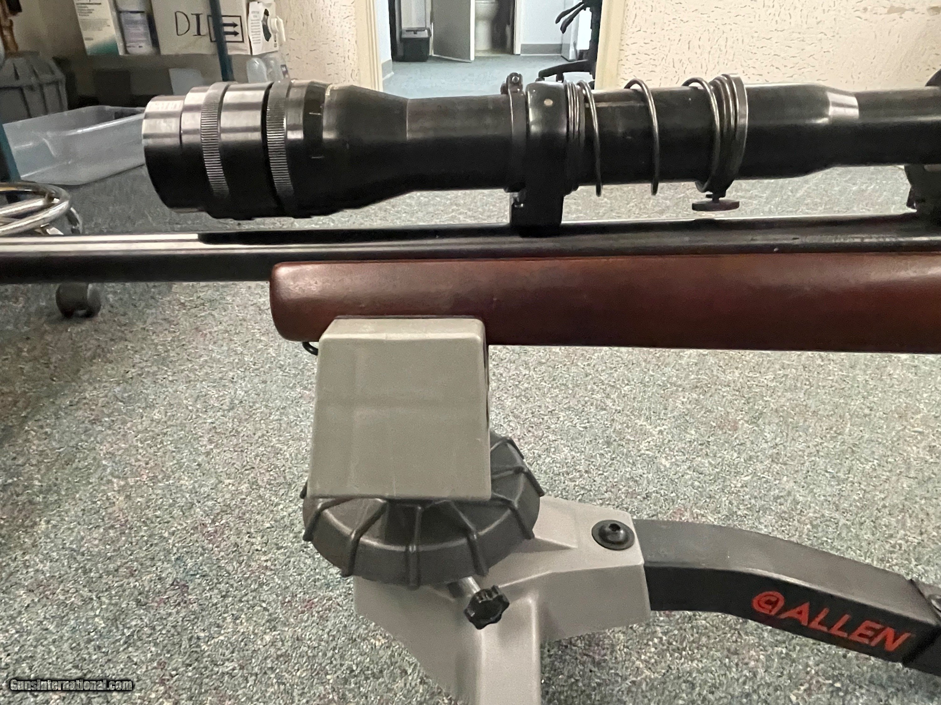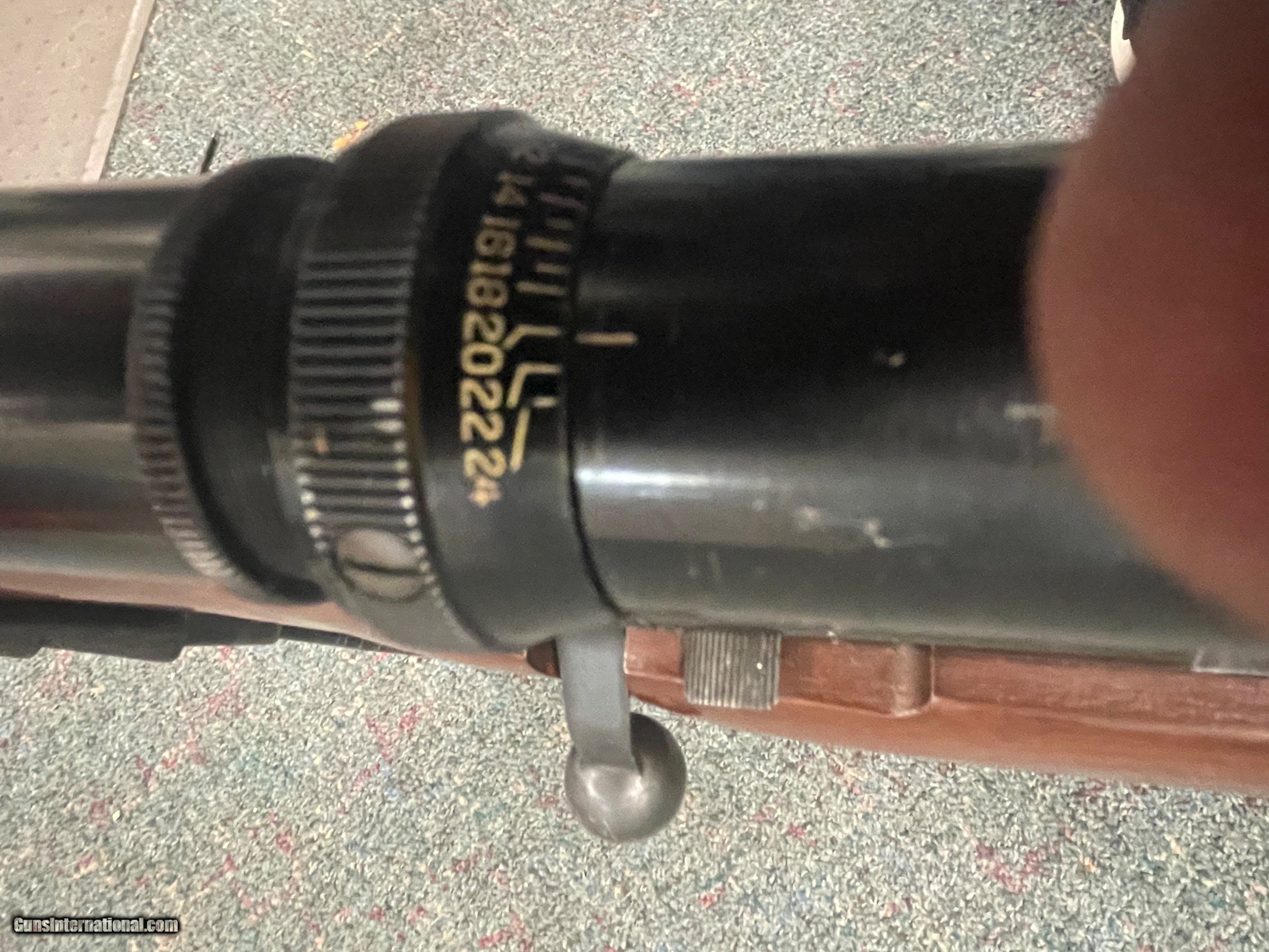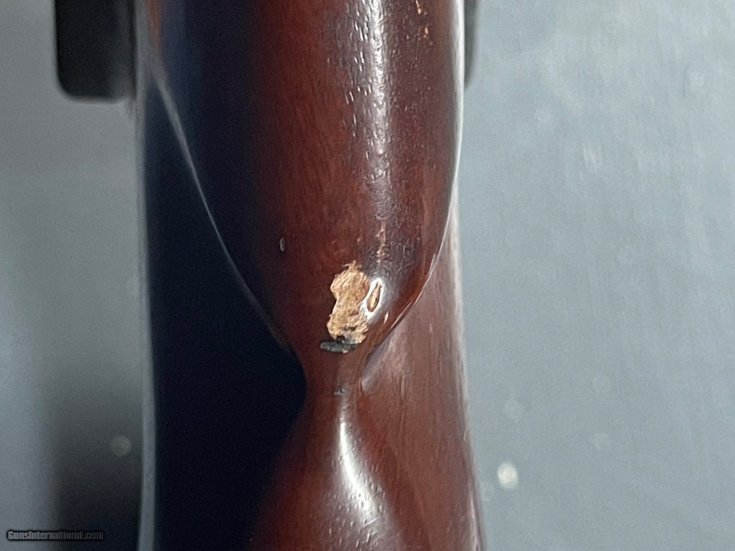 Description: Winchester M52E Bausch and Lomb BalVar 24 scope Really good rare Model 52 has wood blemishes unfortunately picked up sometime during its life. I mounted the BalVar scope and hate to see it go but they make a great combo together. It came to me with a Unertl 6x that I put on something else and I feel like this really brought the gun into its proper era and shooting capability. SOLD Rifle Caliber: .22 Long Rifle Manufacturer: Winchester Model: Model 52E Serial Number: 124xxx Condition: 94 Metal Condition: 96 Wood Condition: 90 Bore Condition: 97 Sights: B&L BalVar 24 |