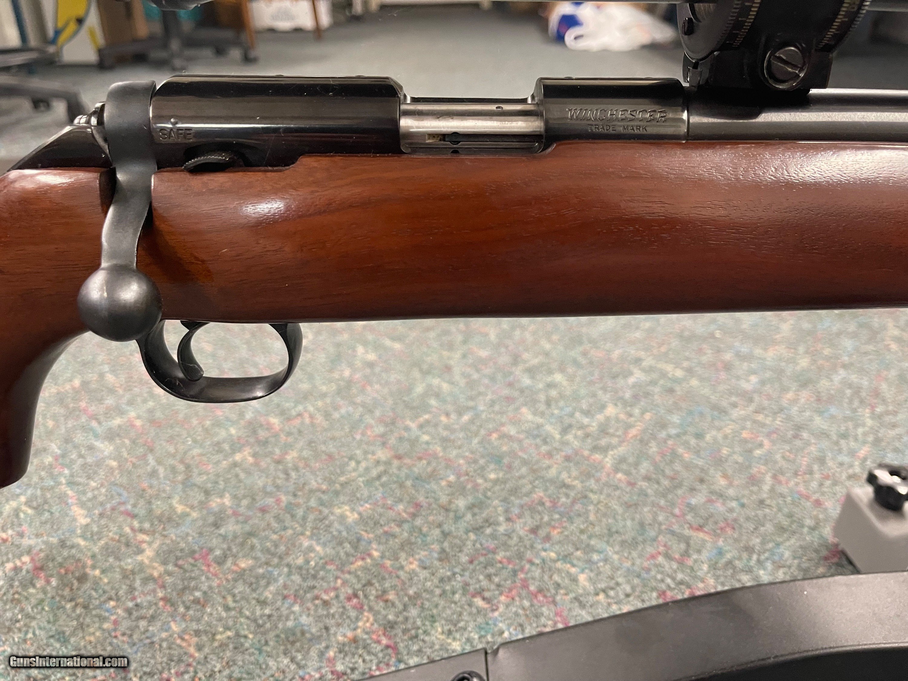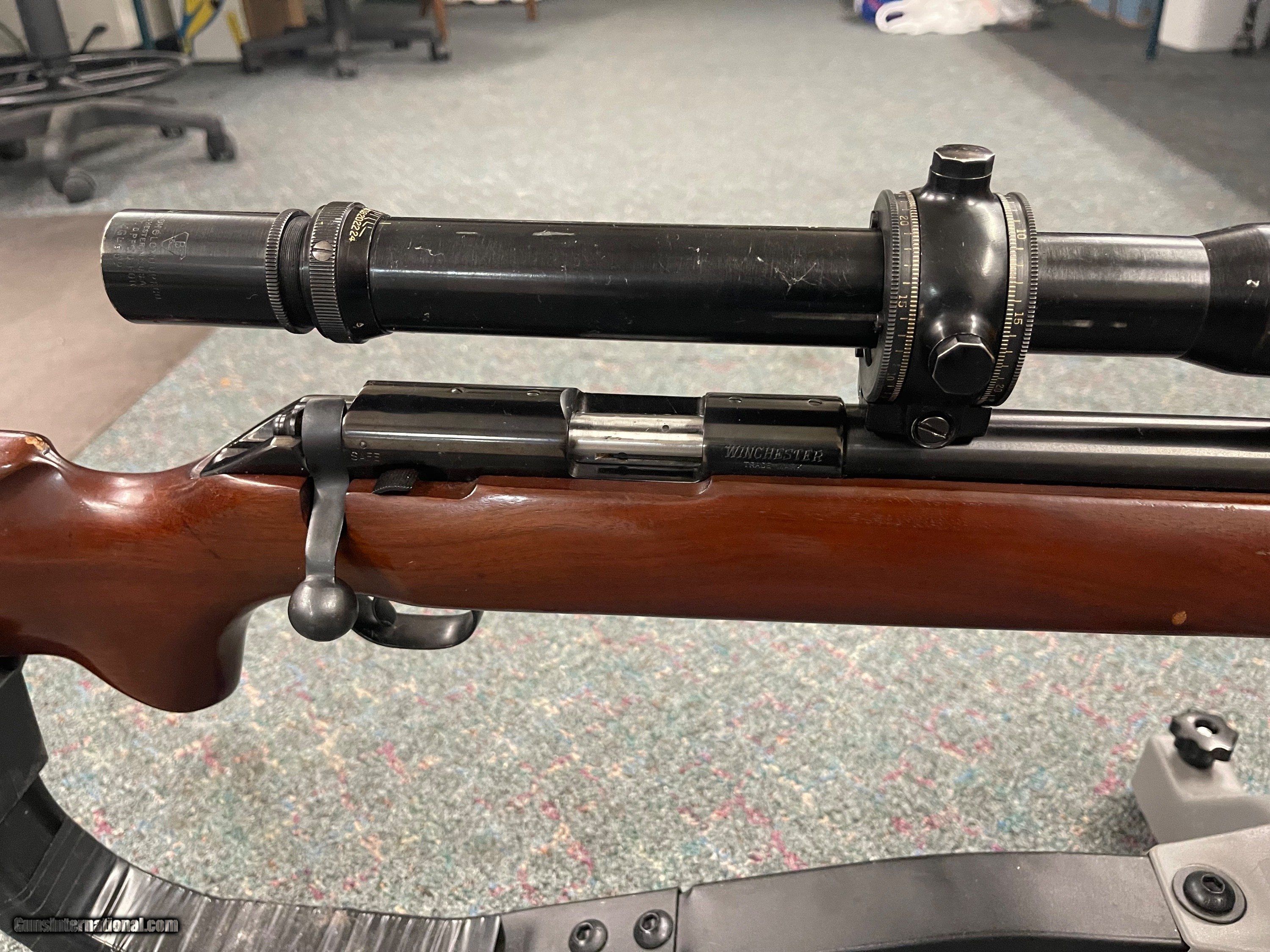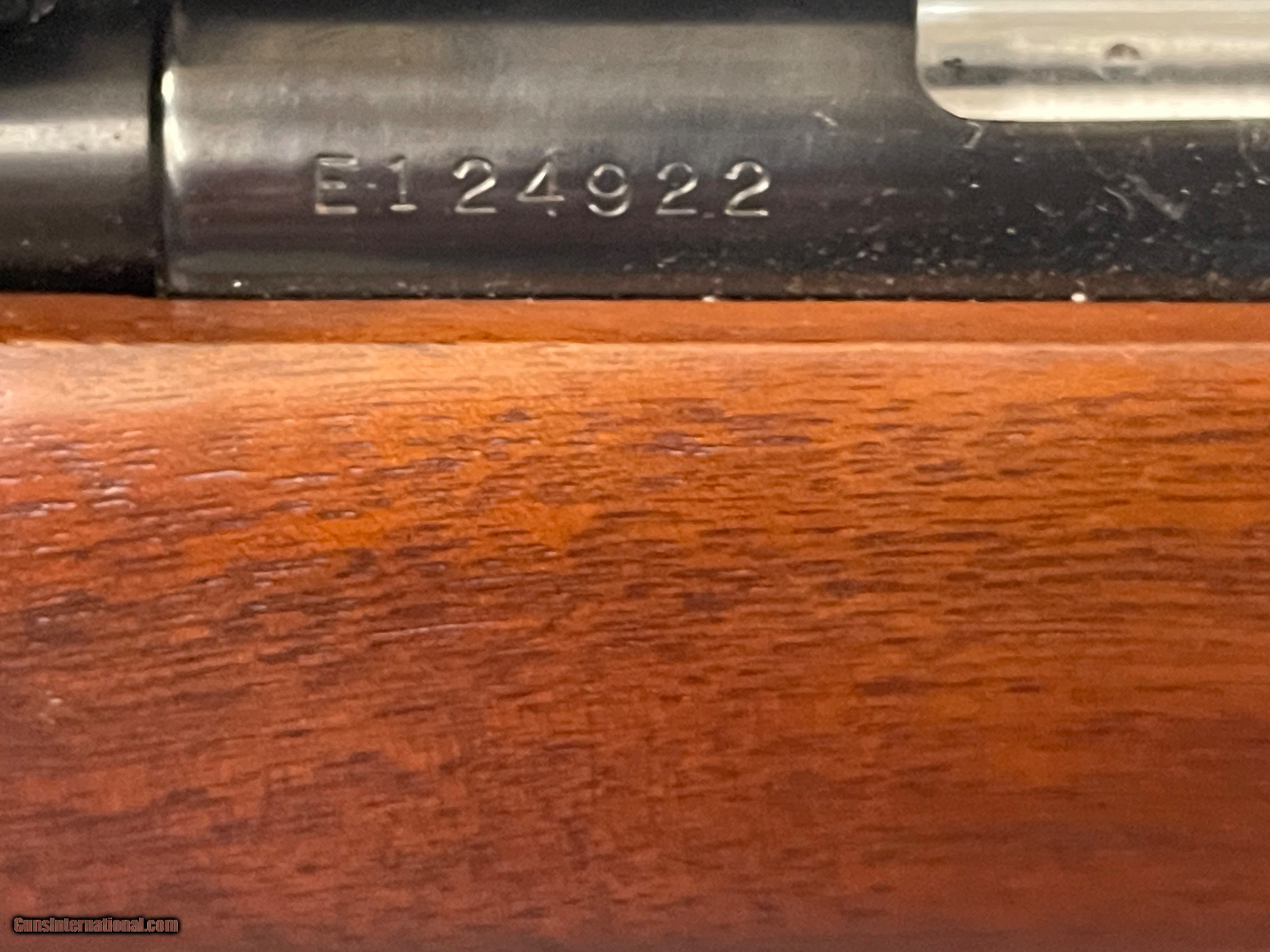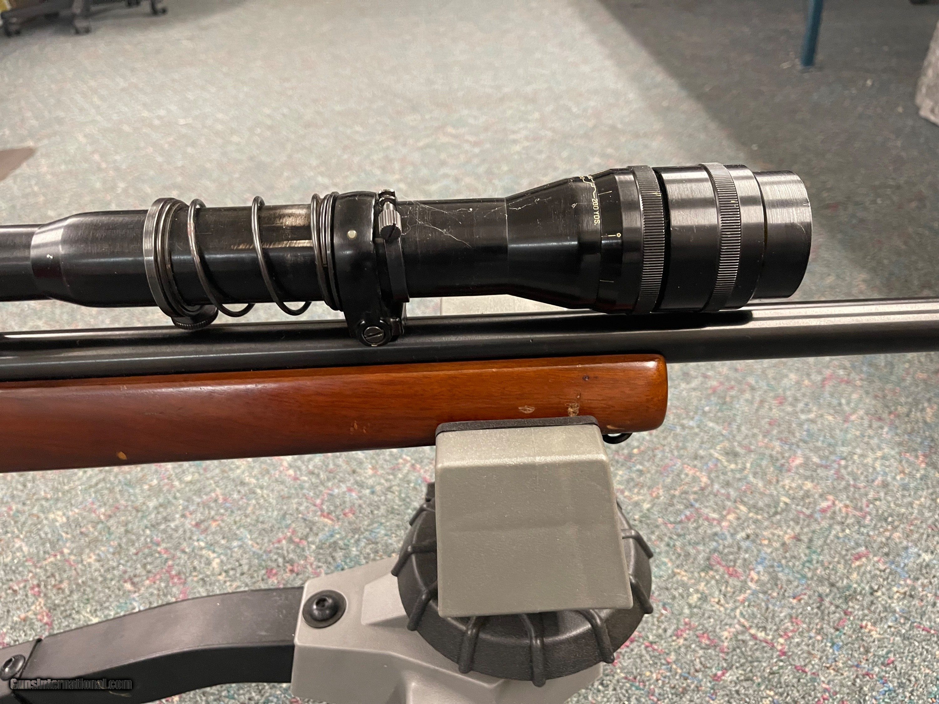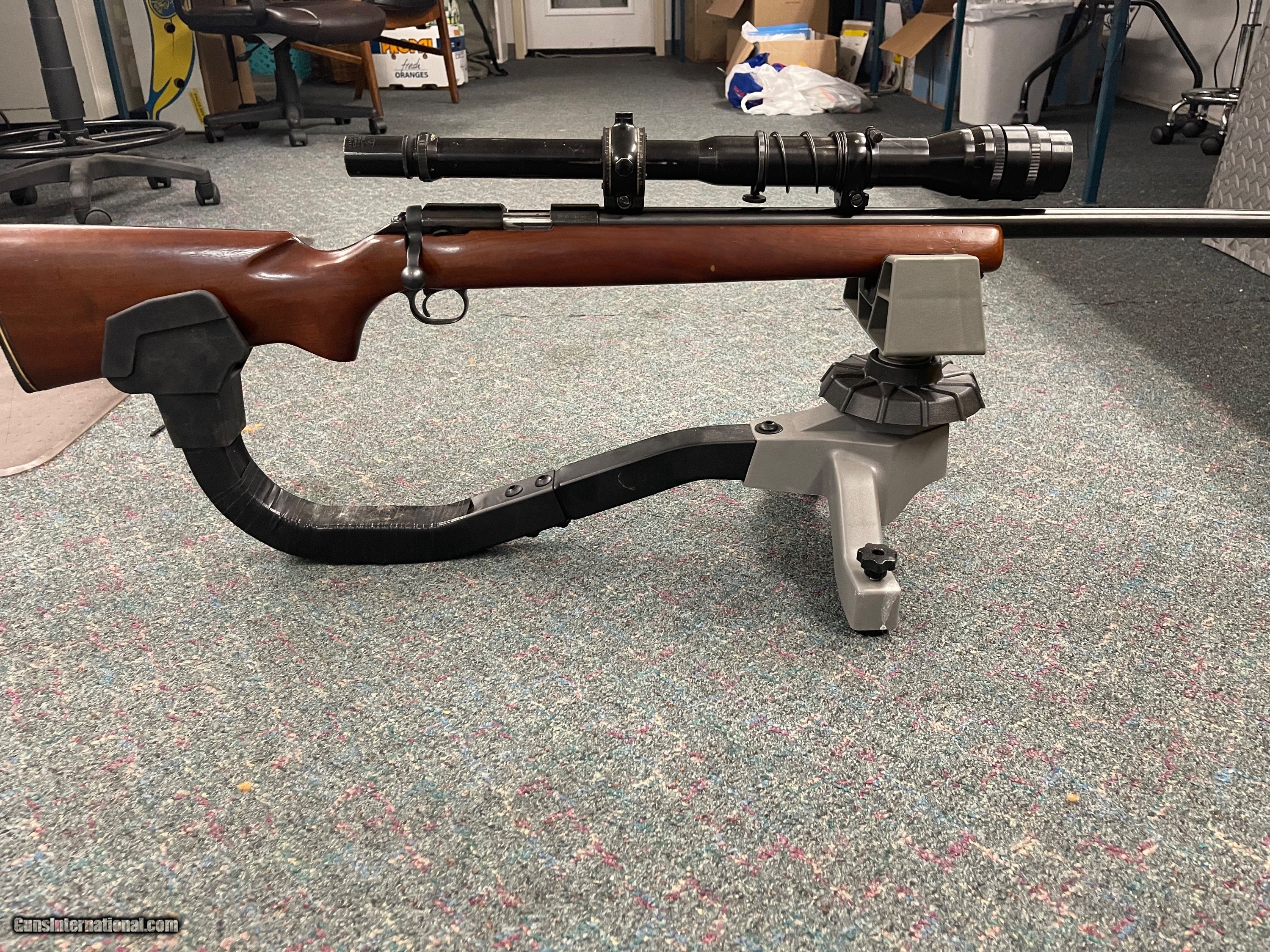 Description: Winchester M52E Bausch and Lomb BalVar 24 scope Really good rare Model 52 has wood blemishes unfortunately picked up sometime during its life. I mounted the BalVar scope and hate to see it go but they make a great combo together. It came to me with a Unertl 6x that I put on something else and I feel like this really brought the gun into its proper era and shooting capability. SOLD Rifle Caliber: .22 Long Rifle Manufacturer: Winchester Model: Model 52E Serial Number: 124xxx Condition: 94 Metal Condition: 96 Wood Condition: 90 Bore Condition: 97 Sights: B&L BalVar 24 |