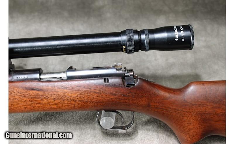 Description: This rifle is in excellent overall condition for its age. It does have the typical few dents in the wood as you would expect, and the bluing has turned to a brown shade from age. The gun doesn't have any rust on it. A serial number search online says that it was manufactured in 1939. It comes with the Tasco scope as pictured. Chambered in 22 Long Rifle. .22 Long Rifle SOLD Barrels: 28 Item Location: Niles, OH |