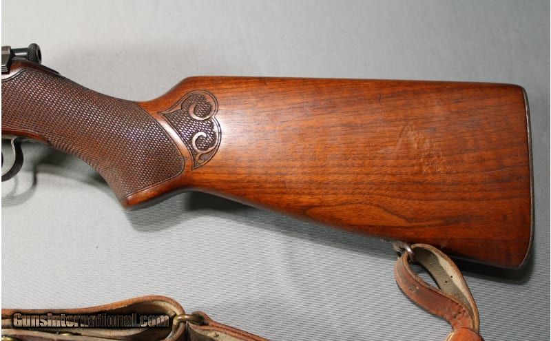 Description: Winchester Model 52. A classic bolt action .22 LR. Wood is in good condition showing typical wear. Metal has some pitting and has lost blueing in some places. Comes with one magazine and has a leather sling. .22 Long Rifle SOLD Metal Condition: good Wood Condition: good Barrels: 27 Stock Dimensions: 13 Fore End: checkered wood Butt Pad: metal Sights: "blade front sight, adjustable rear sights, scope mounts Item Location: Council Bluffs, IA |