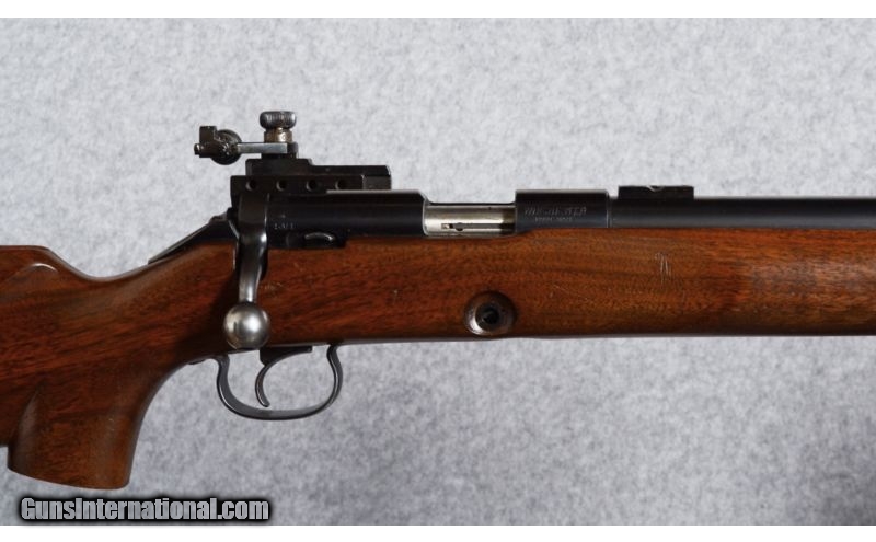 Description: Winchester Model 52 C Heavy Target .22 Long Rifle - 28" Heavy target barrel, measuring 1" at receiver and tapers to .875" at the muzzle. Sports Redfield Olympic front and rear sights (although not shown in photos, a small aperture-peep sight that screws into the Olympic rear sight is included), Winchester's "Micro Motion" adjustable trigger, Winchesters Marksman heavy match stock with full beavertail forearm and adjustable aluminum and rubber butt plate and a 13 1/2" length of pull. Condition: The metal is in very good plus overall condition. There is a small amount (slight hint) of rust freckling on barrel. The triggerguard shows some blue wear and blue on the bolt knob is worn. The stock is in good to very good. There are scratches and small dings throughout, but nothing too deep and there are no cracks, and look's to have the oringial lacquer finish. The bore is in excellent condition, bright and shiny. Please note: The rifle has a single shot adapter (dummy magazine), unfortunately the rifle does not include a standard magazine. Please see 3rd photo showing pictures of rifle without magazine and with single shot adapter in place. Also, the button release is missing. The spring and catch are there and can be depressed with a screwdriver to release the dummy magazine. The rifle was manufactured in 1960 ~ S# 99423CIf viewing from GI site, see Cabela's for additional photos. SOLD Curio/Relic: Yes Manufacturer: 1960 ~ S# 99423C Caliber Info: .22 Long Rifle. Metal Condition: Very good plus overall. See Description for more details. Wood Condition: Good to very good. See Description for more details. Bore Condition: Excellent, bright and shiny. Barrels: 28" Heavy target barrel. Triggers: Winchester's "Micro Motion" adjustable trigger. Stock: Marksman Heavy Match stock. Stock Dimensions: 13 1/2" Length of pull. Fore End: Full beavertail forend. Butt Pad: Adjustable with rubber pad. Weight: 12 1/4 pounds. Sights: Redfield Olympic front and rear sights. Item Location: Boise, ID |