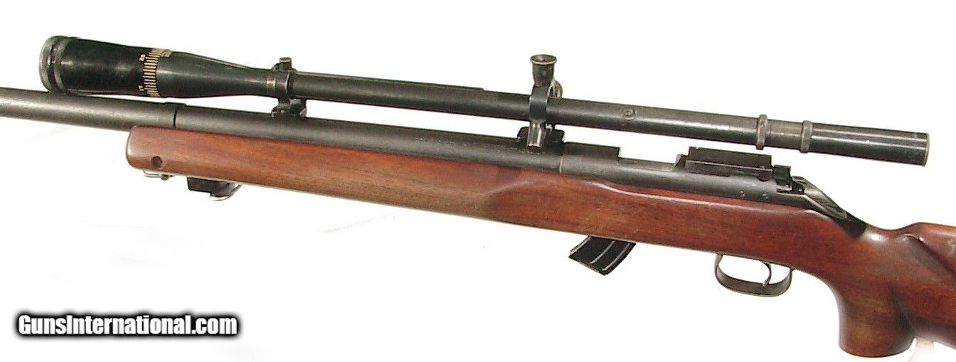 Description: .22 rimfire, 28" model 52 heavy barrel, finished blue overall. Target style stock with beavertail forend and sling swivel adjustments. In fine condition showing use but most of the blue remains. Nice wood with some handling marks and the bore is mint. Nice clear optics. SOLD Curio/Relic: Yes |