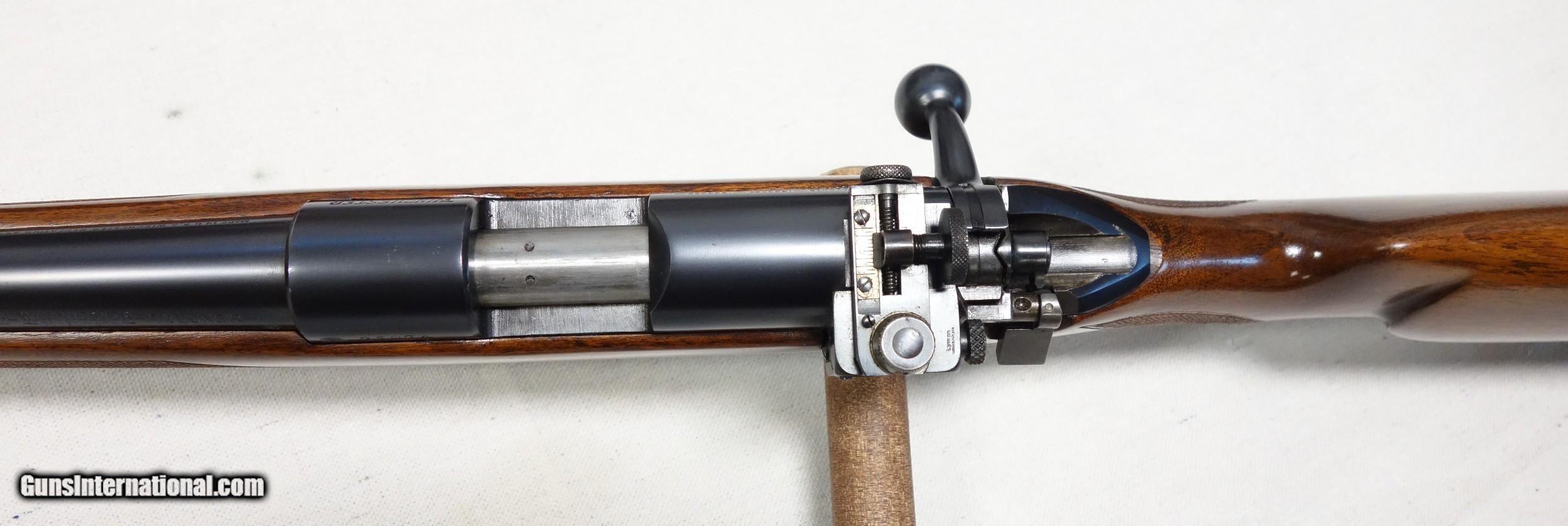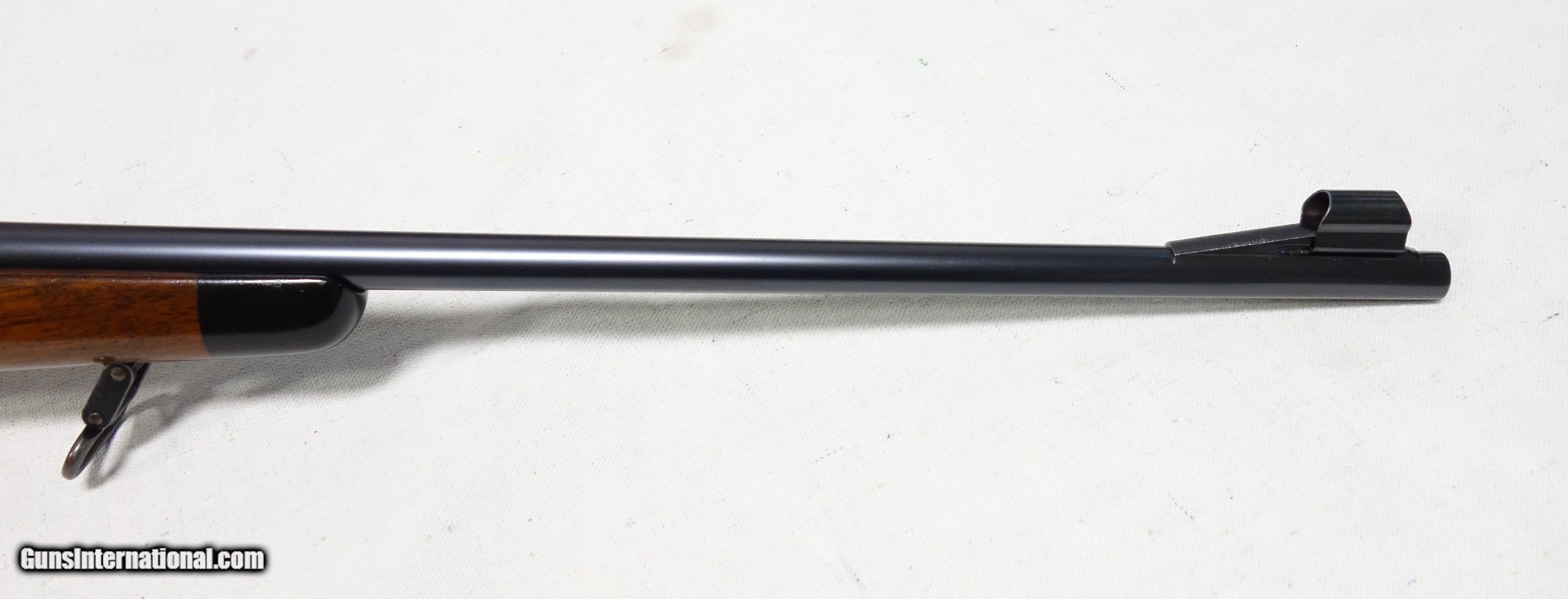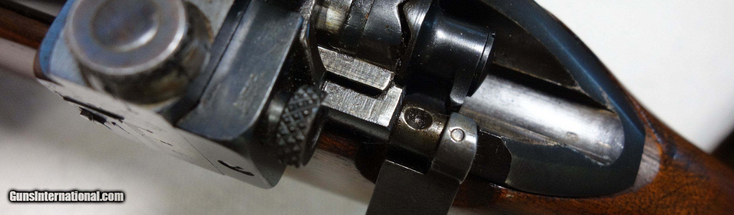 Description: Ultra rare Pre A Model 52 Sporter 22 LR. S/N 35974 made in 1936. 24" barrel with excellent bore. Incredible condition considering its 86 years showing deep 98% original Blue over most, with more wear to buttplate and some flaking of bottom metal bluing. 97% Varnish with some scattered light handling marks. All original components include proper concave shouldered detachable swivels, correct 5 shot magazine, early full block Lyman F receiver sight with matching component #s, proper gold bead front sight, UNDRILLED receiver, and UNCRACKED rear receiver "L". The early Model 52 sporters are absolutely the finest .22 rifles ever produced and this is a beautiful and highly collectible example! Expedited and fully insured shipping from Alaska is $75. SOLD Curio/Relic: Yes |