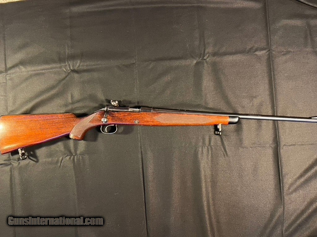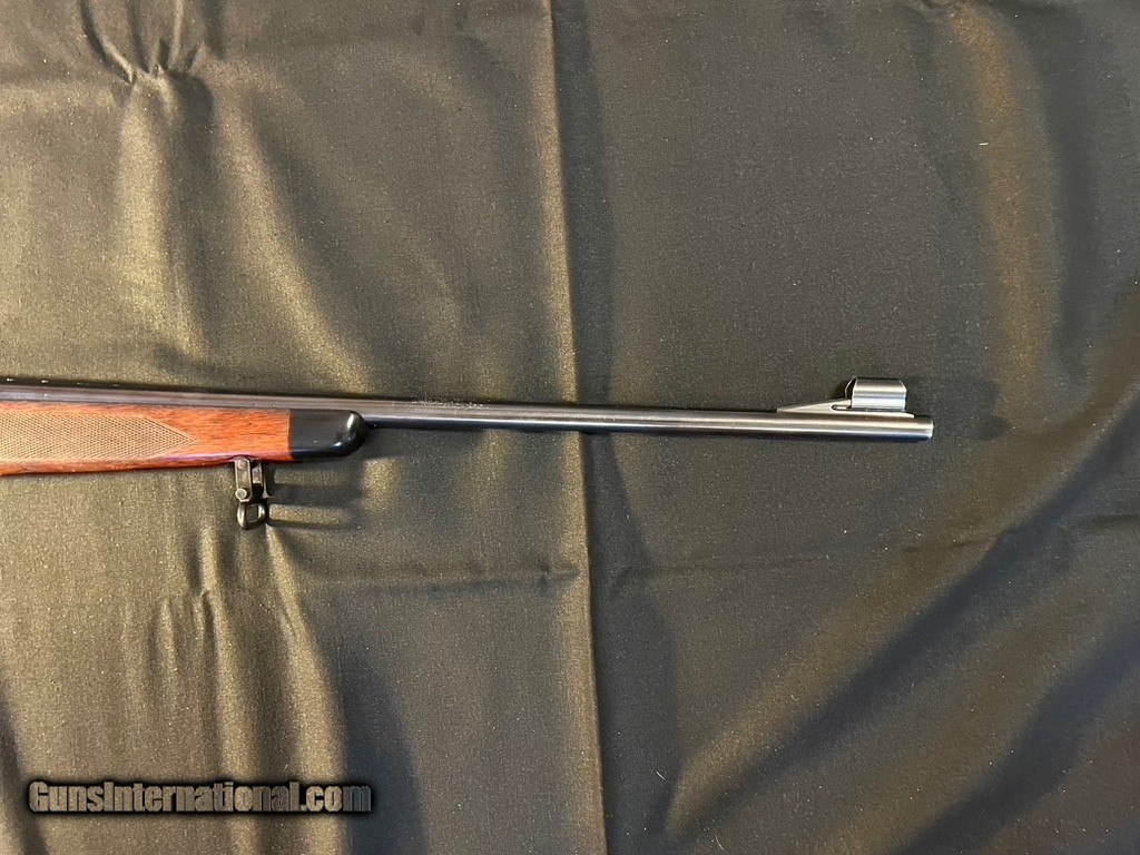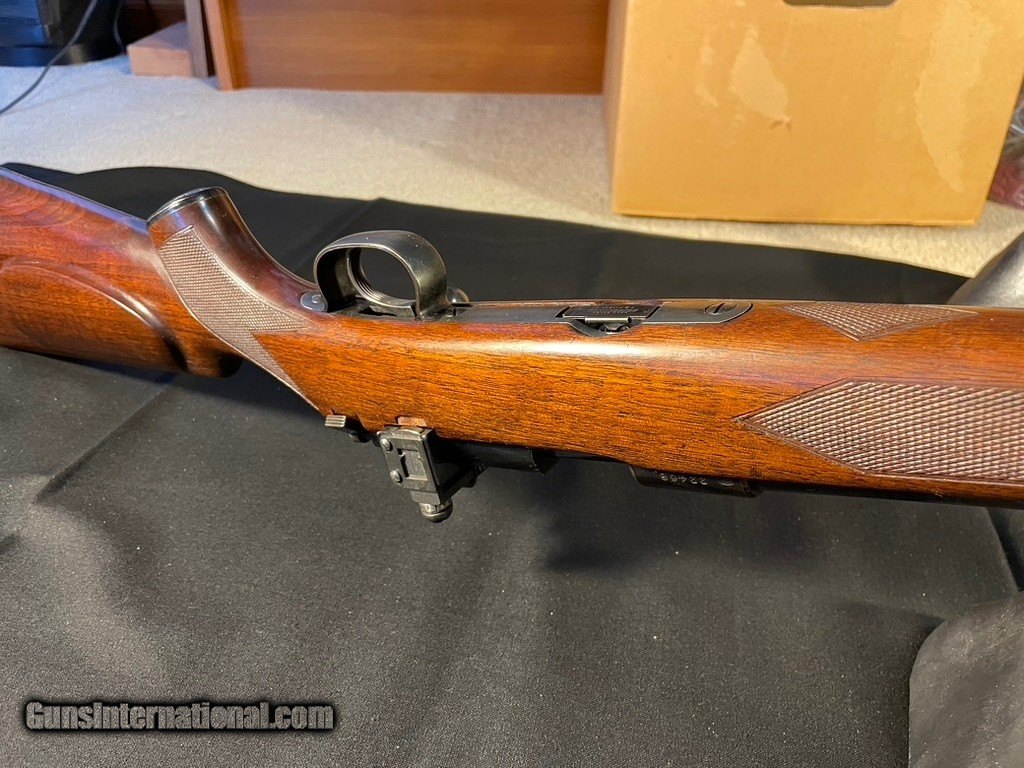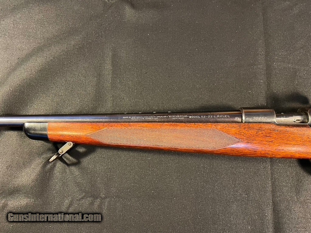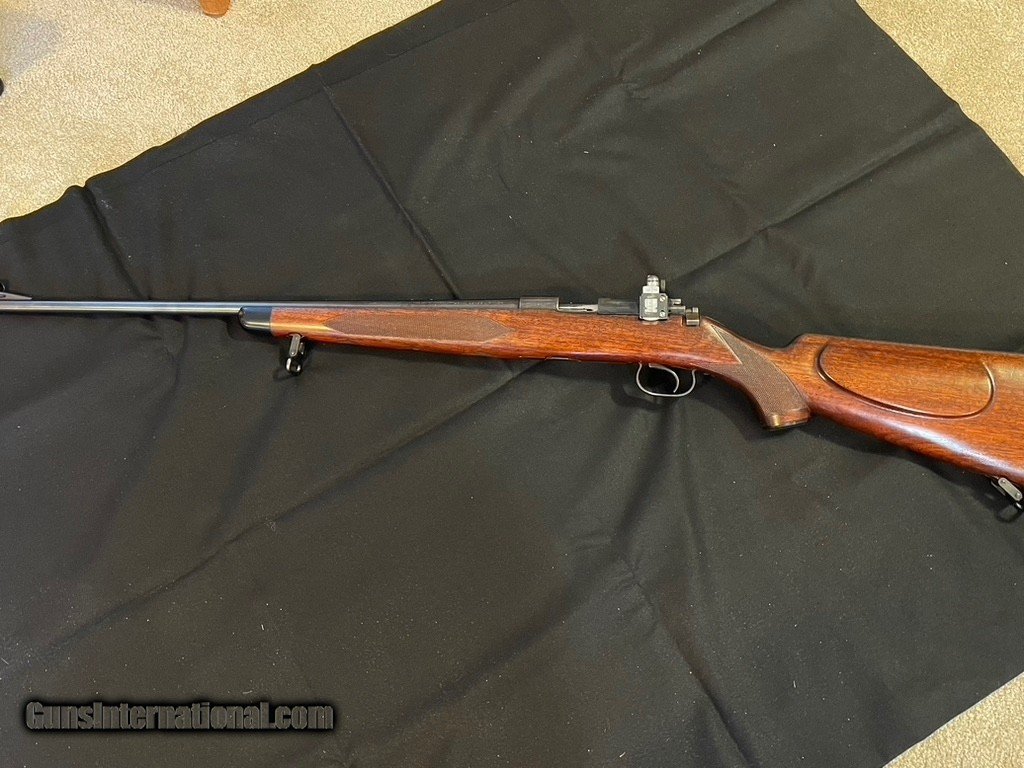 Description: The 52 Sporter is one of Winchesters two finest bolt actions with a first class design and fine construction (the other is the Model 70). The 52 has been called the King of the .22 rimfire. The Model 52 Pre A Sporter in question is very likely a conversion from a target model. It is in excellent shape because it was not used very much. I’m guessing that the gunsmith used a 1931 Model 52 Target receiver with Speedlock and converted it into a Sporter by replacing the barrel and stock with a Model 52B barrel stamped “41” and a 52B stock. So I estimate that this conversion must have taken place in the 1940s (again a guess on my part). He had to cut a notch on the stock’s left side for the 52 wing safety. Don’t worry about the balky wing safety, just leave the bolt open for safety. He did a very fine job refinishing it, even the stock which he hand rubbed with linseed oil leaving the original finish intact. The stock has quick disconnect swivels, but this one does not come with a leather strap. As can be seen from the photos the stock is in excellent shape with barely any small scratches or marks. The rifle bore is shiny and bright and the barrel is drilled and tapped for a scope mount. The rest of the rifle has 98% blue. The Sporter stock and barrel are no longer available so they alone are worth a lot. The trigger is as good as the day it was new. As in the target model the Sporter was made for accurate shooting. The rest of the gun including the receiver assembly has all the qualities and accuracy of the target model. I have not used this gun for many years. The absence of “SPORTING” stamp on the trigger guard may be another indicator of the conversion, but I’m not sure because it’s possible the Pre A Sporters did not come with that stamp. So here’s a gun you can buy at a reasonable price and use without being concerned about collector value. I’ve seen many 52s which owners claim to be original and near perfect, but are really refinished rifles. SOLD Curio/Relic: Yes Rifle Caliber: .22 Long Rifle Manufacturer: Winchester Model: 52 Sporter Serial Number: 22468 Barrel Length: 24 Condition: Excellent Metal Condition: Excellent Wood Condition: Excellent Bore Condition: Excellent Barrels: Sporter Barrel Barrel Type: Sporter Barrel Action: Bolt Action Triggers: Target Stock: Sporter Stock Fore End: Black Forend Tip Butt Pad: No Finish: Original Weight: 7.25 lb Sights: Peep Manufacture Date: 1931 Engraving: No |