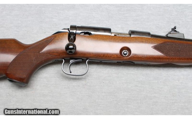 Description: Winchester Model 52 in .22 Long Rifle. This is a Japanese reproduction of the 52 Sporter made by Miroku for Winchester from 1993-2002. Like its progenitor, this rifle is handsome and well-built—the craftsman at Miroku obviously put a lot of love into these. .22 Long Rifle SOLD Metal Condition: Excellent Wood Condition: Excellent Bore Condition: Bright Barrels: 24 Inches Round Triggers: Factory Stock Dimensions: LOP 13 1/2 Inches Fore End: Checkered walnut Butt Pad: Plastic pad Sights: Adjustable notch rear and hoode front blade Item Location: La Vista, NE |