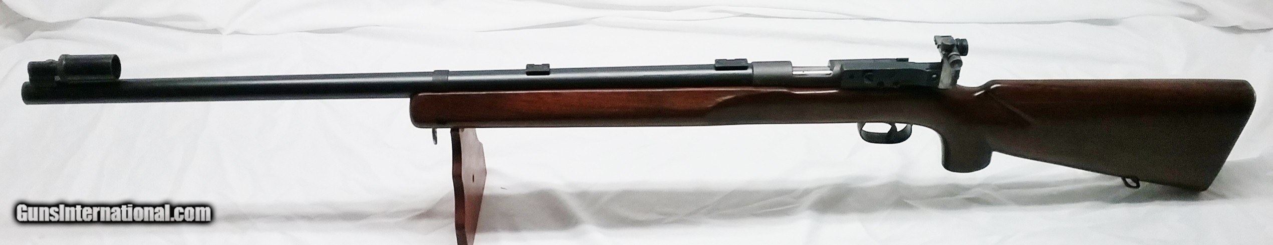 Description: C447 Winchester– Model 52 - Target – 22LR – Stk# C447 This 22LR Winchester Target Model 52 bolt action manufactured in 1939 rifle has a 28” blued tapered round 1-1/8” to 7/8” heavy barrel mounted with a rear Marble Goss peep sight and a Lyman 77 globe front sight with auxiliary sun shade. The barrel also has two Unertl scope mount bases. The finish is in excellent condition. The bore is in excellent condition. The Walnut stock is in very good condition with the exception of minor usage and handling and is fitted with a textured steel butt plate. This rifles overall condition is very good to excellent. The rifle comes with a hand stop rail, sling swivels, a 5 round 22 short and a single shot fixed magazine. Other extras include custom fitted case, shooting gloves, NRA wood ammo box, and apertures for the front globe. The length of pull is 13-1/2”, overall length is 44-3/4”, weight is 8.4 lbs. Our stock number is # C447. Please Note: This rifle is set up for competition shooting. Will ship to any FFL in the United States, buyer pays freight and insurance. This item is also listed on our Guns International page. For more photos of this listing key this stock number “C447“ into the quick search bar on Gunsinternational SOLD Rifle Caliber: .22 Long Rifle Manufacturer: Winchester Model: 52 Bore: Rifled Chambers: 1 Ejectors: Yes Condition: Very Good Metal Condition: Very Good Wood Condition: Very Good Bore Condition: Very Good Barrels: One Barrel Type: Tapered Round Action: Bolt Action Triggers: 1 Stock: Walnut Butt Pad: Metal LOP: 13-1/2 Finish: Blued Weight: 8.4 lbs Sights: Adjustable Extras: Read Description Item Location: OR - Oregon |