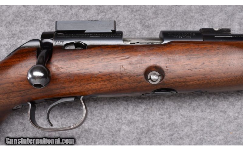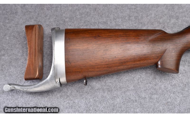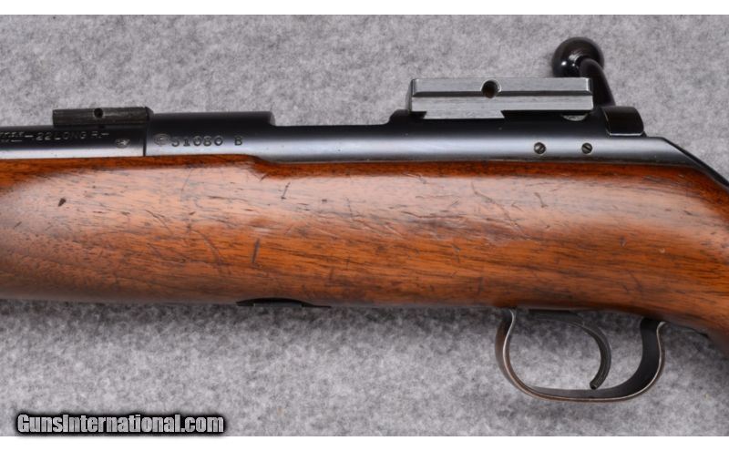 Description: Wood shows some thinning finish with a bit of darkening along the comb. Blue and bore remain excellent! Complete with extra custom wood buttplate and target scope blocks. SOLD Manufacturer: S/N 51XXXB Caliber Info: .22 LR Metal Condition: Excellent Wood Condition: Very Good Bore Condition: Excellent Barrels: 28" Heavy Target Triggers: Original Stock: Uncheckered Walnut Stock Dimensions: 13 3/8" LOP Fore End: Uncheckered Walnut Butt Pad: Aluminum Weight: 12 3/4 LB Sights: None - Target Scope Bases Included Item Location: Wheeling, WV |