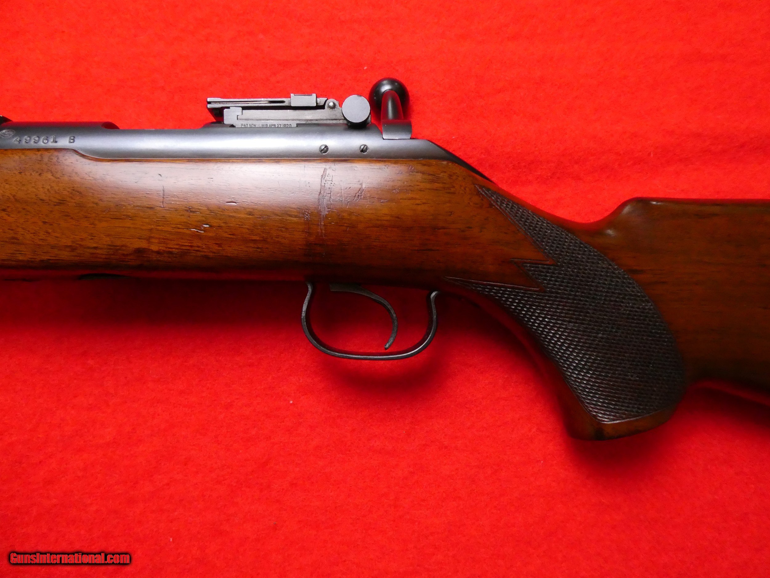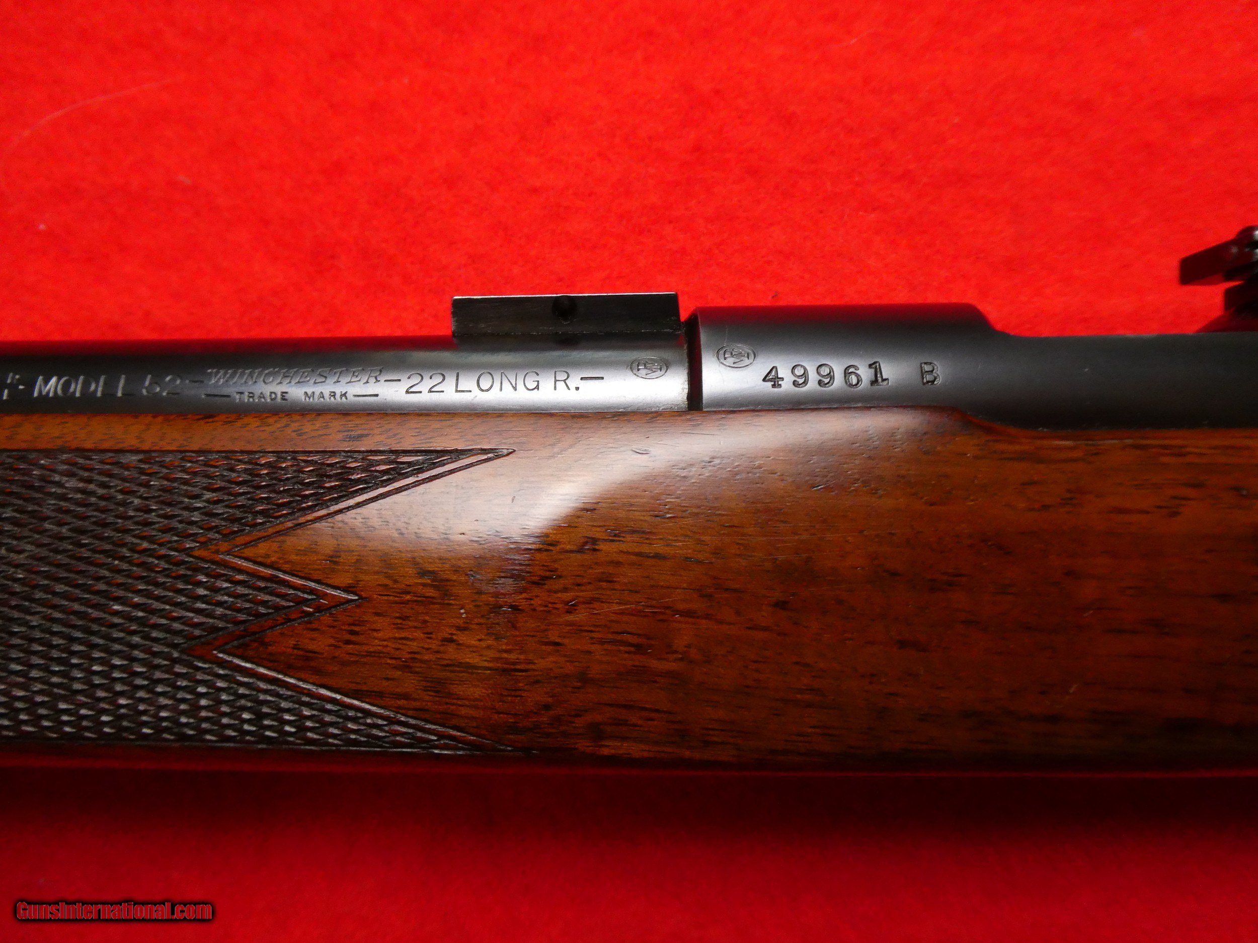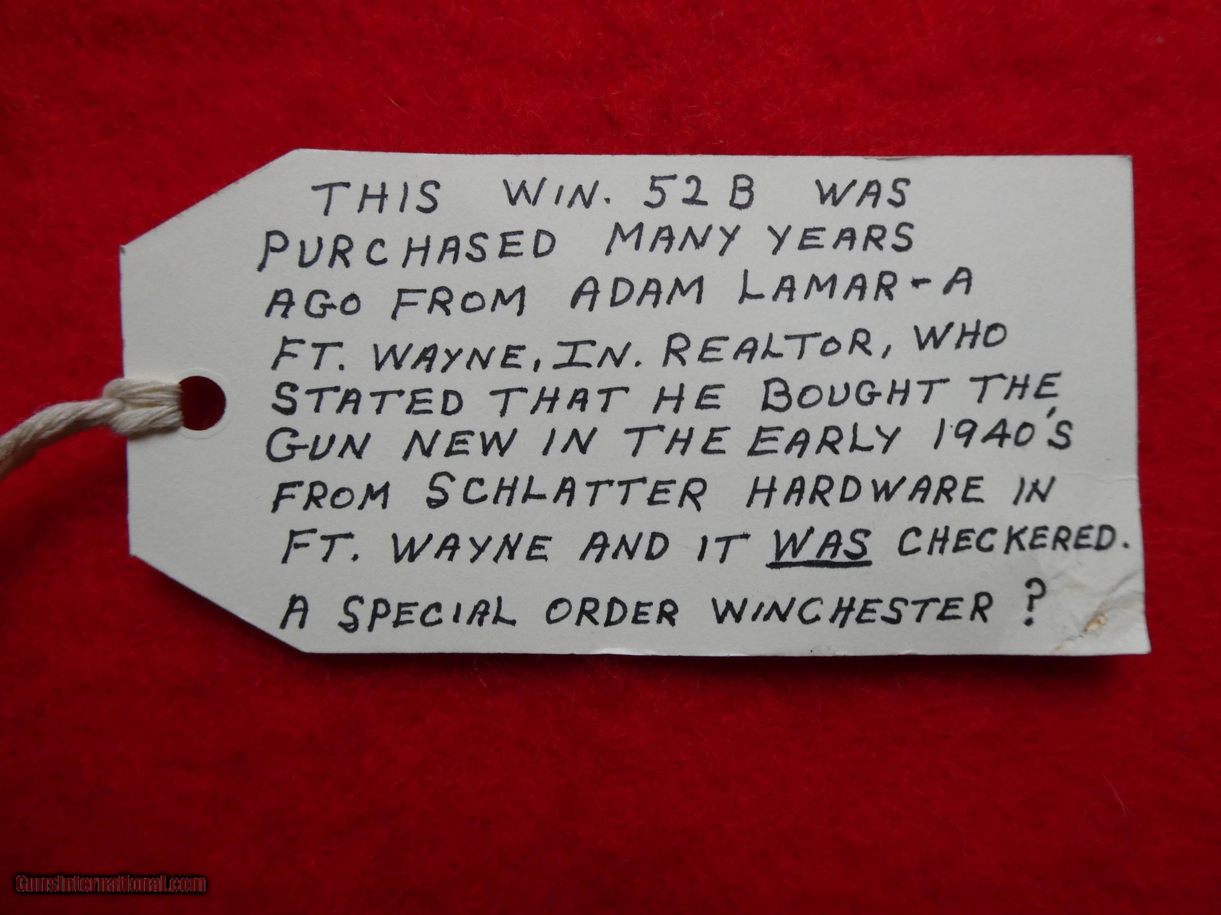 Description: Winchester model 52B .22 L ser# 49961 B mfg 1941. Bluing and wood are near perfect condition Checkering looks to be factory-Cody has no records on the 52`s I called. Very high condition older gun. SOLD SOLD Manufacturer: Winchester Model: 52B Serial Number: 49961 Caliber Info: .22L Manufacture Date: 1941 |