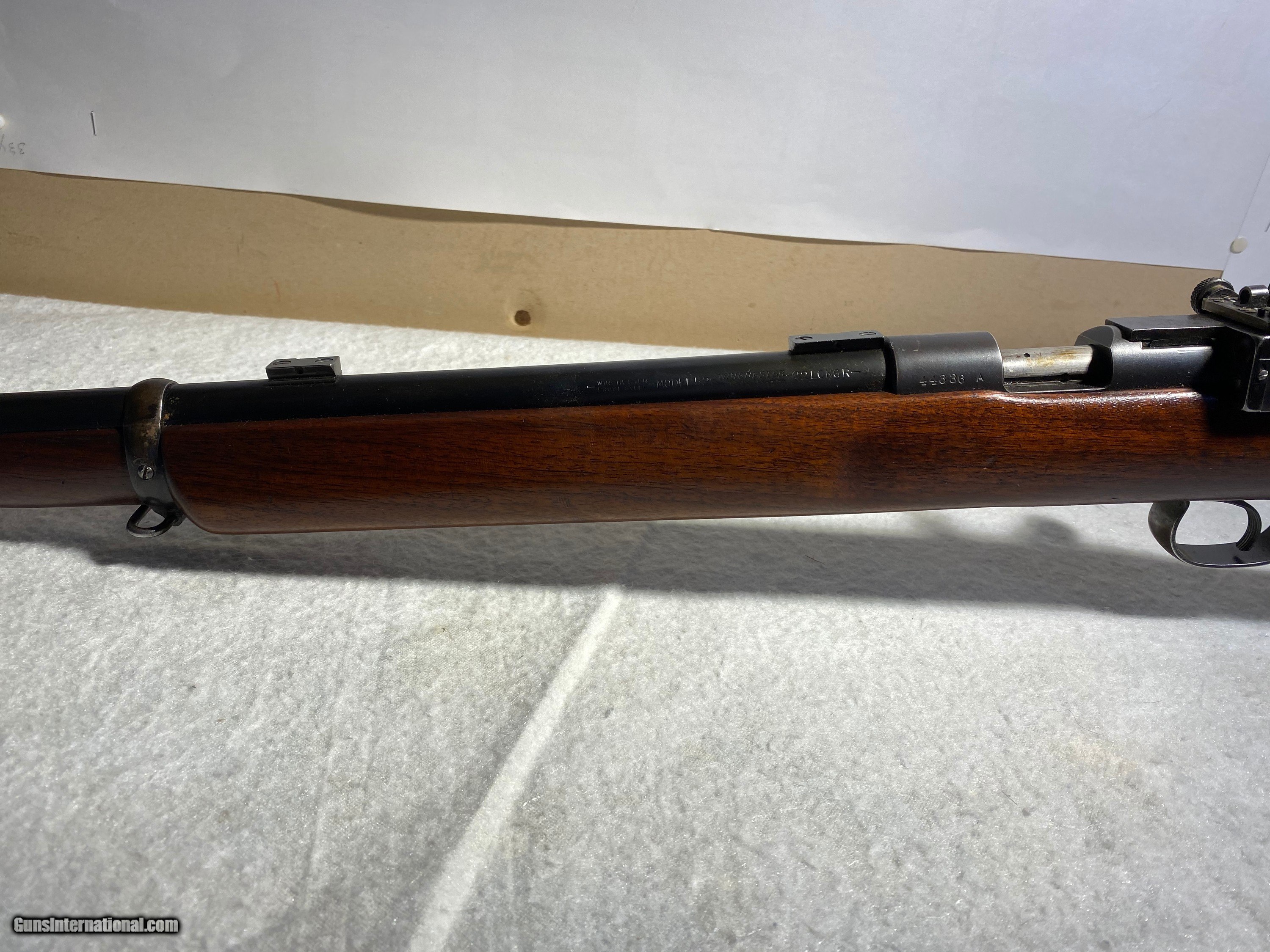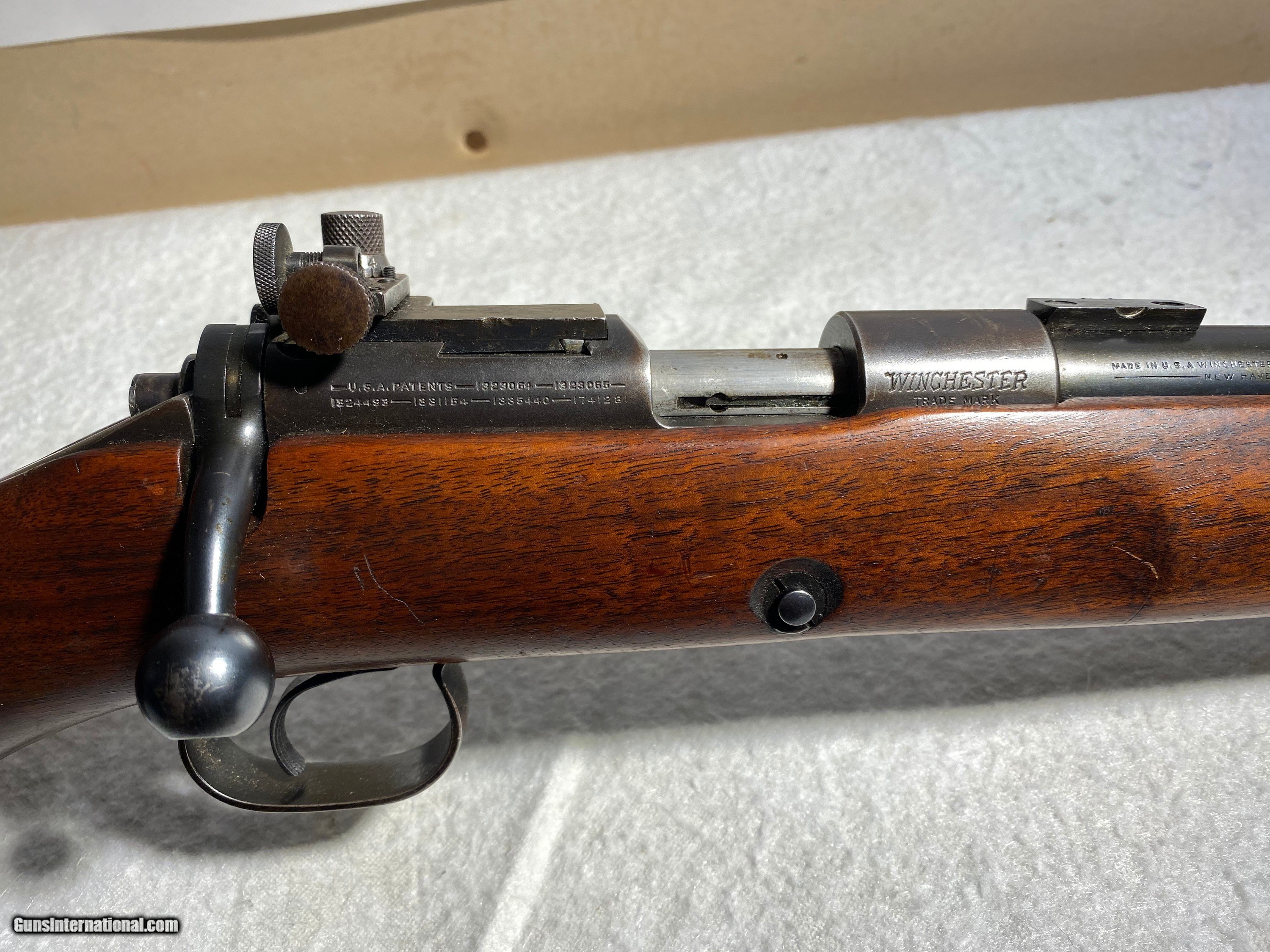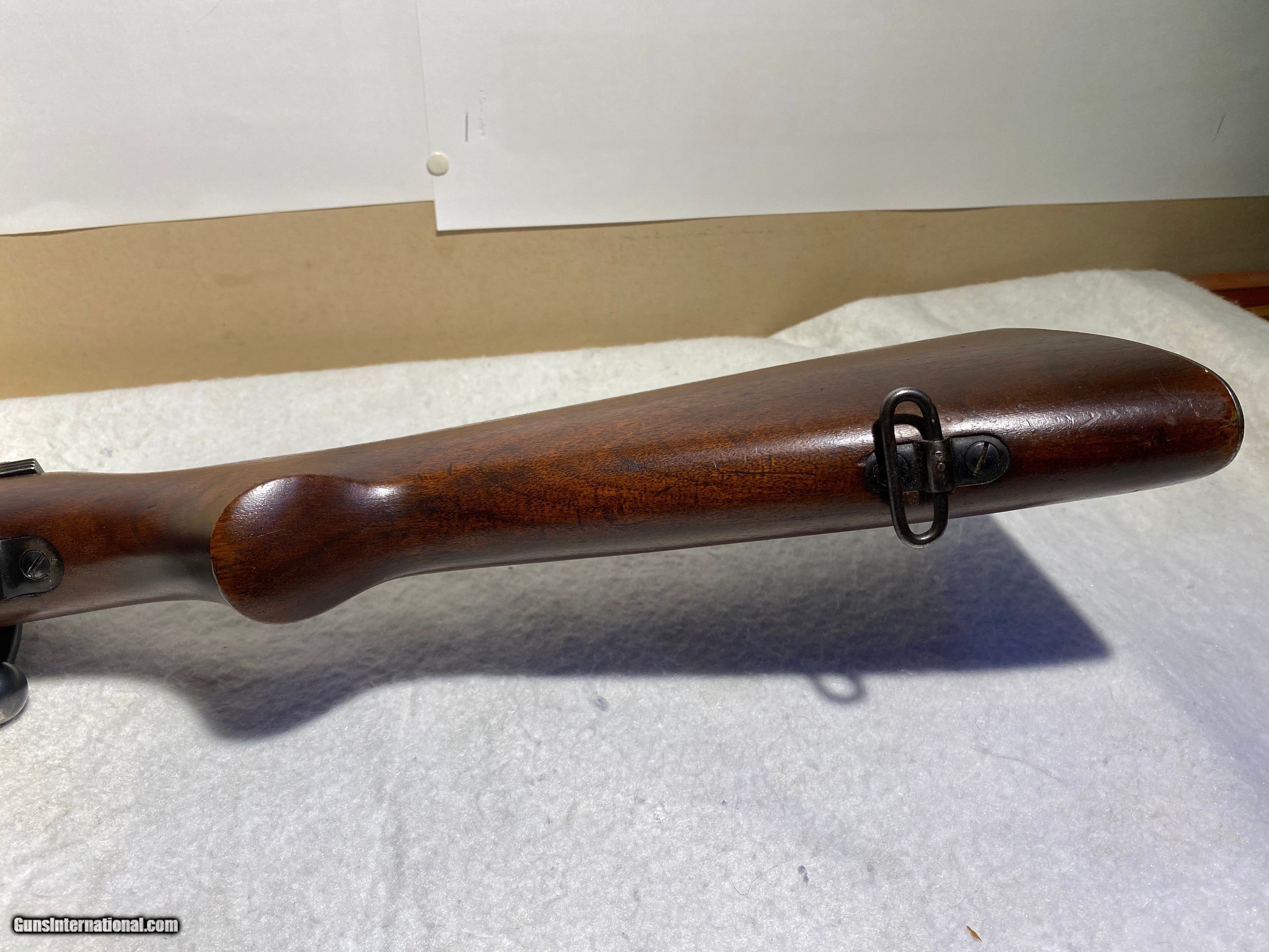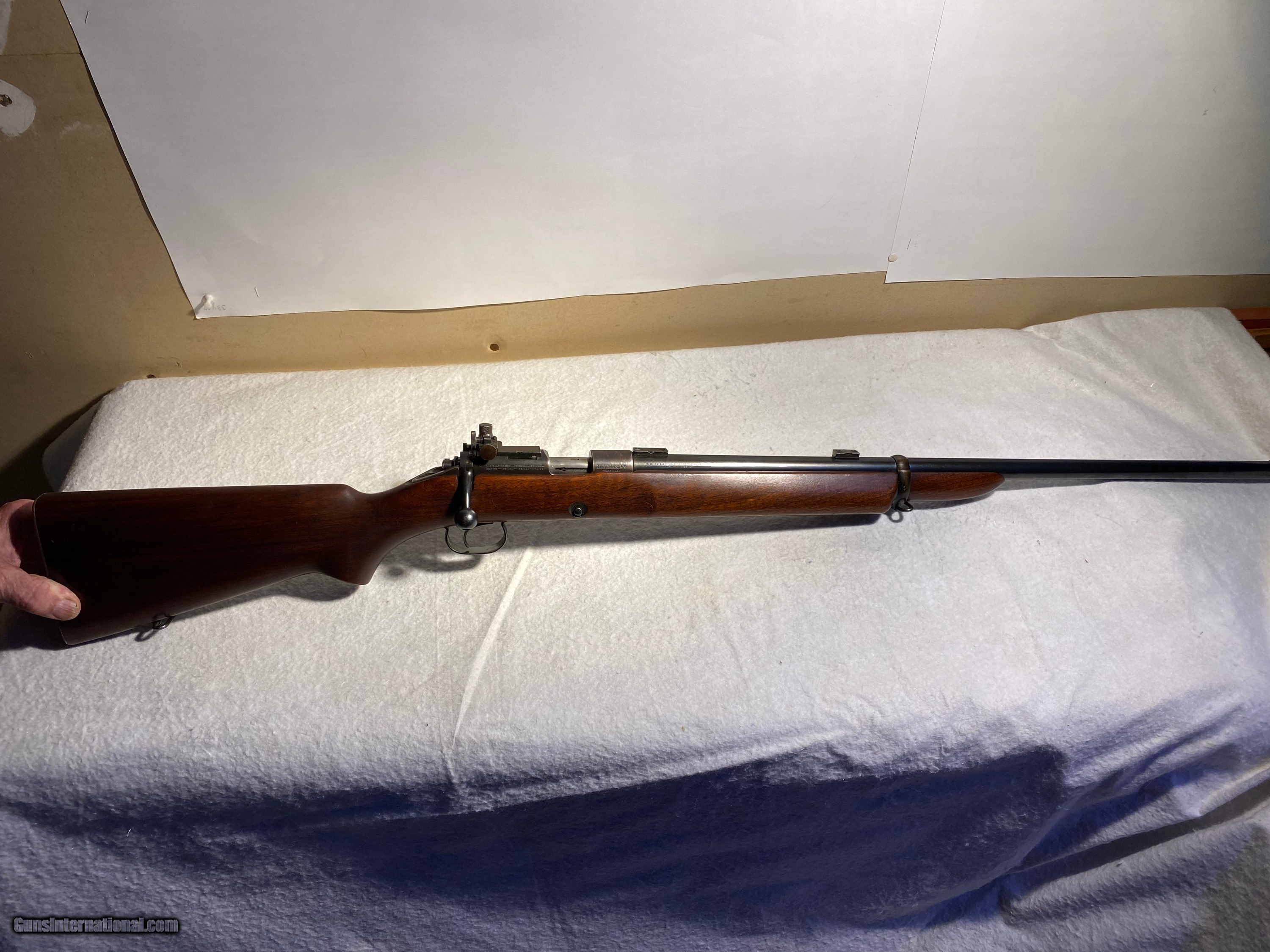 Description: Target model reciever sights + scope blocks, sling swivles in 22cal Made in 1939 Serial #: 44336A SOLD Curio/Relic: Yes Manufacturer: Winchester Model: 52 Serial Number: 44336A Condition: Excellent Metal Condition: Excellent Wood Condition: Excellet Bore Condition: Excellent |
