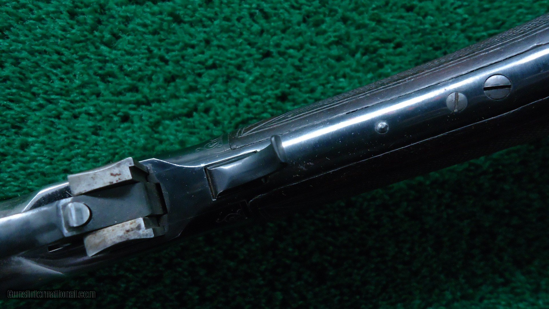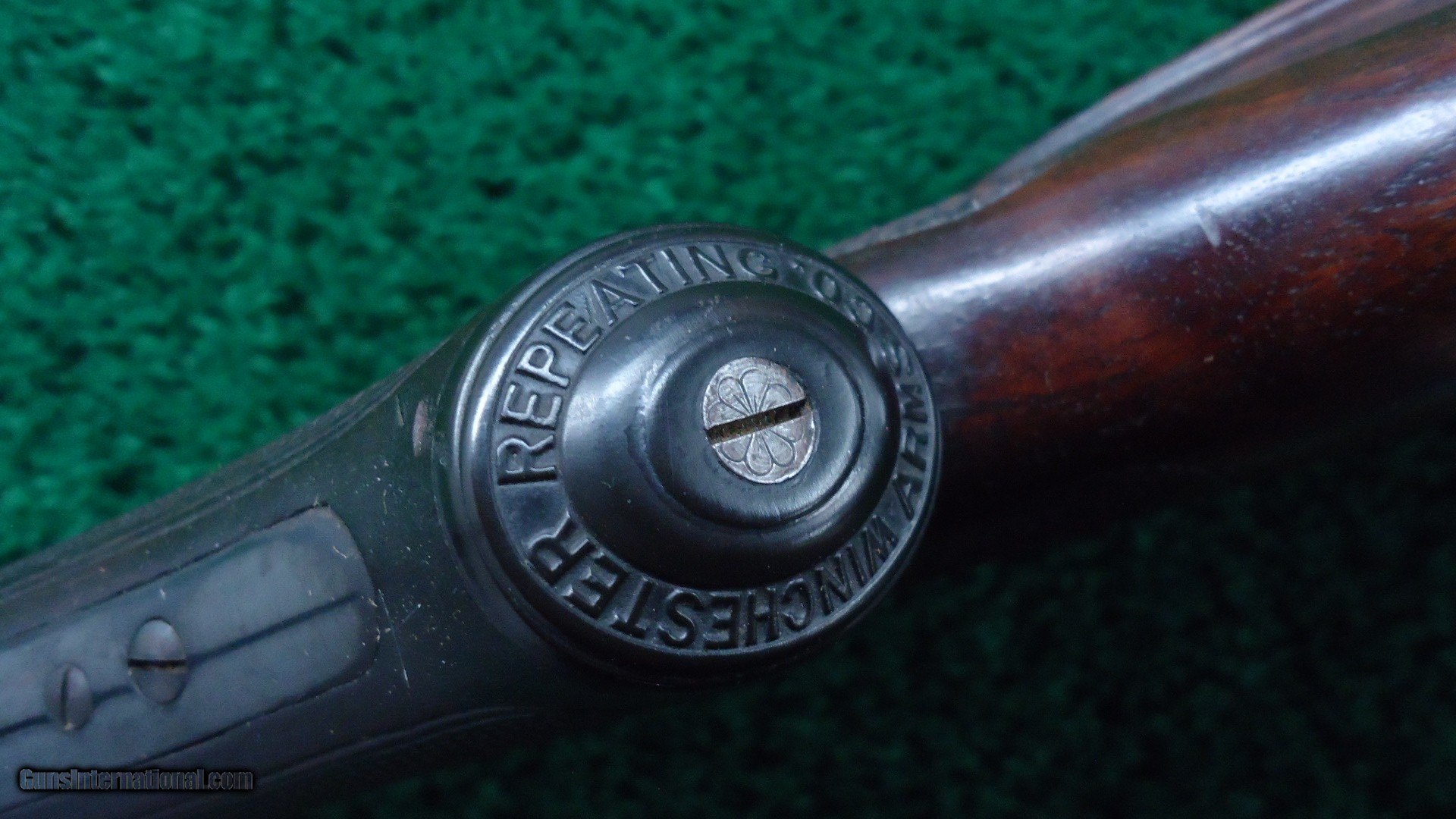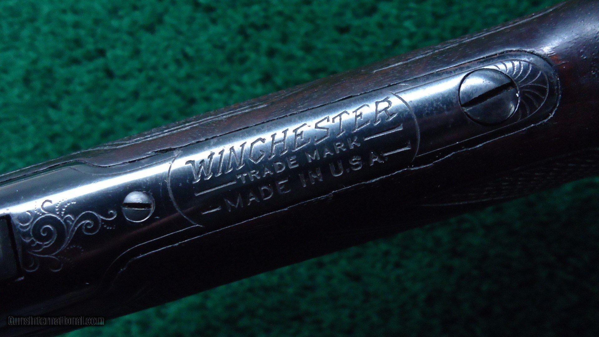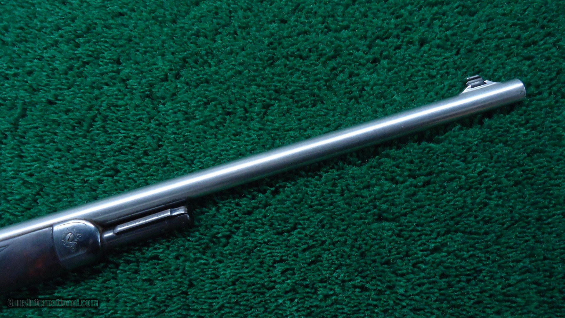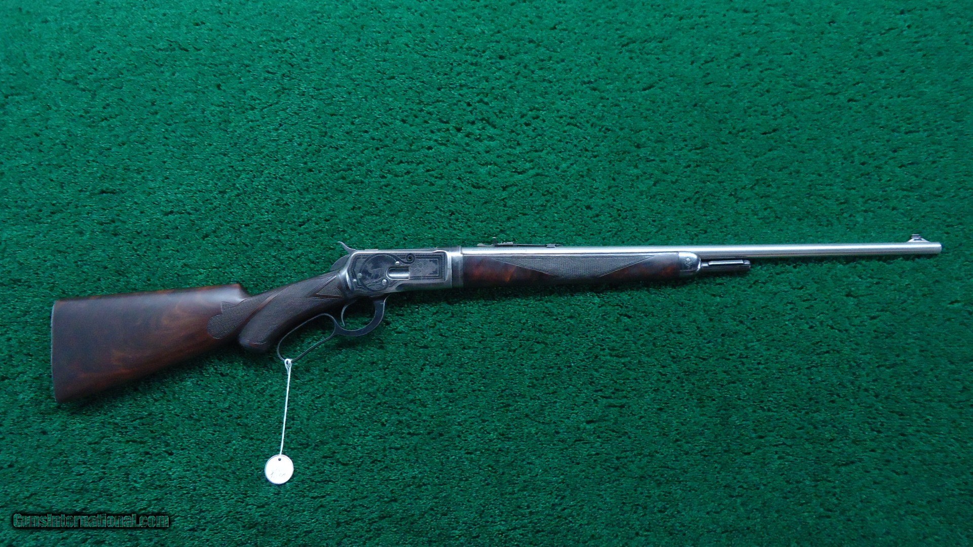 Description: This is the only 53 that I feel is Factory engraved. There are a few out there but I don't believe them to be correct. This one I feel is right. It features the #6 pattern Winchester engraving with the ram inside of an oval on one side. The other side has a buck deer standing in an oval. The takedown ring is engraved. This gun features an unusual scarce stainless steel barrel as well as deluxe checkered wood. It has a shotgun butt and a cheek piece. The buttstock is checkered in an unusual pattern that I have not seen before. I believe it to be original. Looks good. The 22 inch round stainless steel barrel has 4 tap screws for a scope. Original sights. The barrel has flaked most of the Japan finish. This is not uncommon. Receiver retains about 80% blue. A very interesting gun that is probably one of a kind. Comes complete with a lengthy article from the Winchester Collectors Magazine Fall 2010 that talks about it. Gun is also featured in the WACA calendar for 2011. A very nice little outfit. Leroy Merz Antique Firearms specializes in antique and vintage Winchesters and other fine American firearms. Since 1965 Mr. Merz has taken part in the world of firearms and has been a contributor to many well known reference books. We have hundreds of additional guns in every price range at our home online. Search for Merz Antiques in google. SOLD Curio/Relic: Yes |