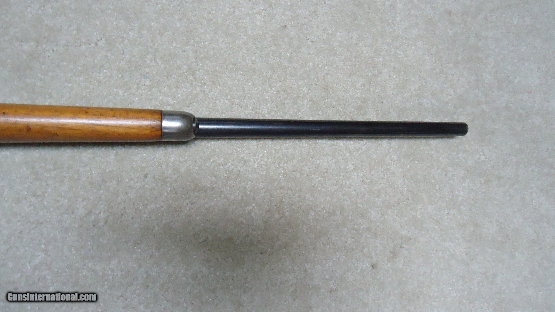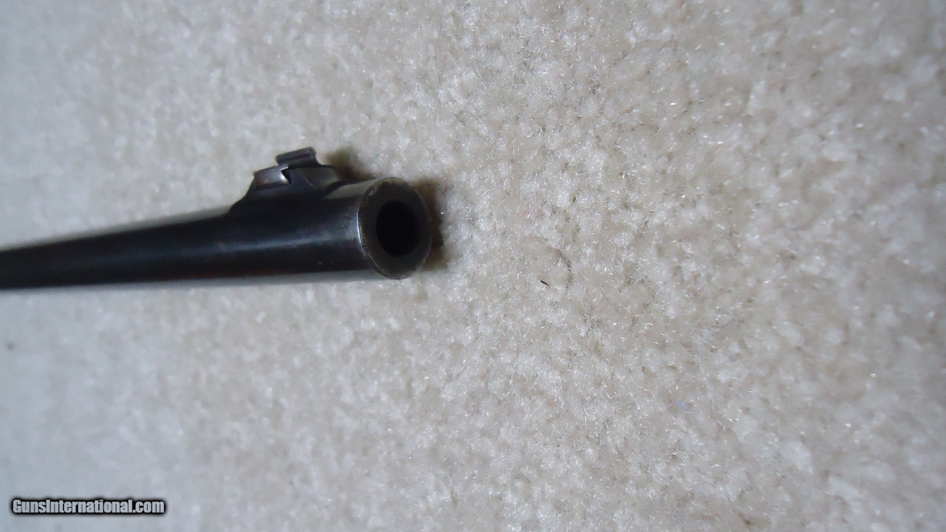 Description: MODEL 53 SOLID FRAME RIFLE IN SCARCE AND DESIRABLE .32-20 CALIBER, #7XXX, MADE 1927. This model was introduced in 1924 and was discontinued in the early year of 1932 of the Great Depression. After 1932 a few were assembled from left over parts until World War II. Of the less than 25,000 production of this model, 16,905 were chambered in .25-20 caliber which was considered the standard caliber for the Model 53. Only 4,718 were made in .32-20 and another 3,293 in .44-40. This example, made the same year Charles Lindbergh made the first flight across the Atlantic, shows good barrel blue and markings. It is fitted with a flattop buckhorn rear sight with elevator bar intact and a small Lyman marked blade/bead front sight. The receiver is a dull somewhat splotchy gray with good screw heads and excellent blue on the loading gate. It retains the original serrated steel butt plate and the butt stock and forend are fine showing light handling only with some dark staining on the forend and a very minor short crack coming back from the receiver on the left side of the wrist. The action is tight and the bore is excellent with perhaps some very minor surface scattered corrosion that may turn out to be some minor leading- either way it is fairly insignificant. SOLD Curio/Relic: Yes Rifle Caliber: .32-20 Winchester Manufacturer: Winchester Model: MODEL 53 Serial Number: 7XXX Barrel Length: 22 Condition: VG Bore Condition: FINE+ |