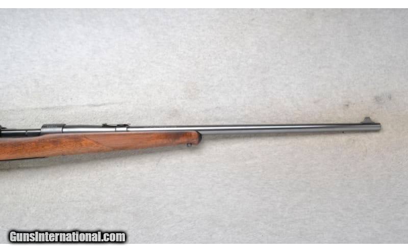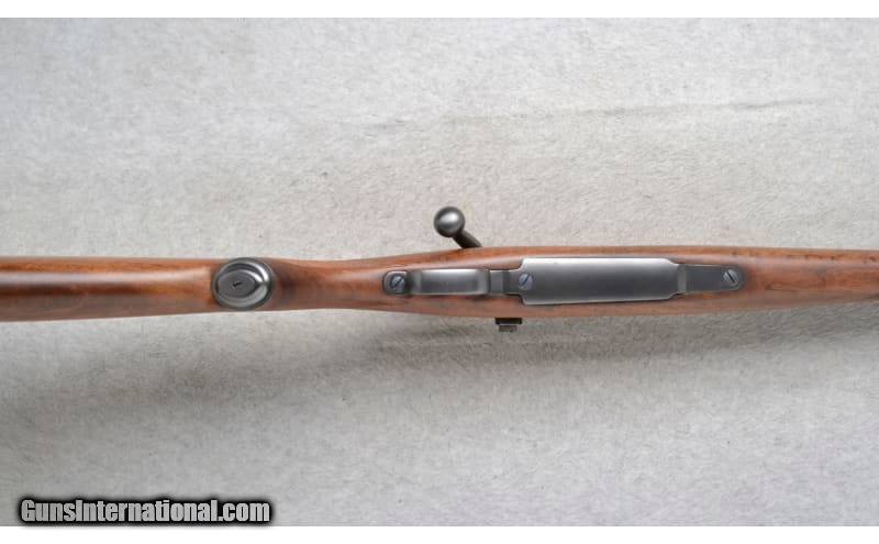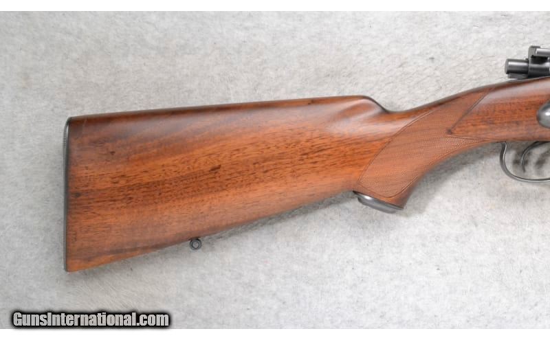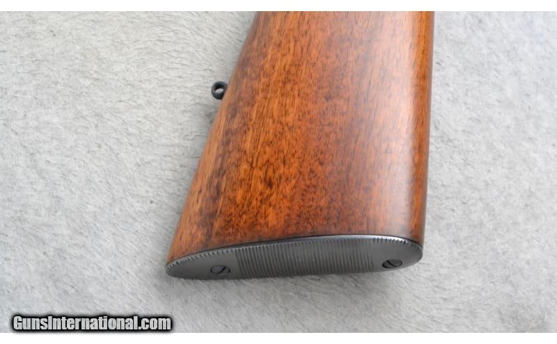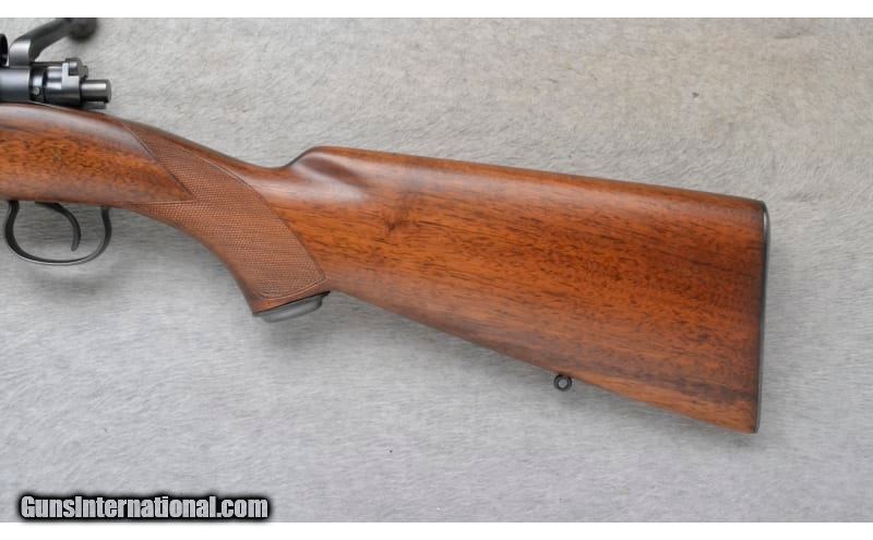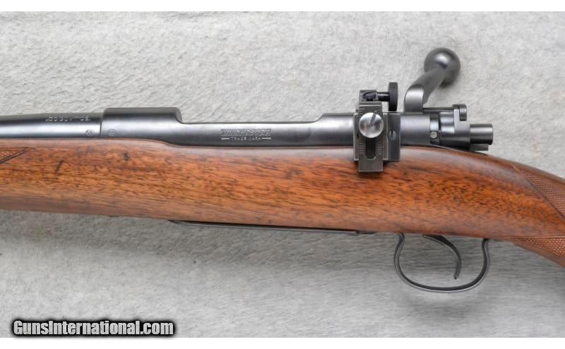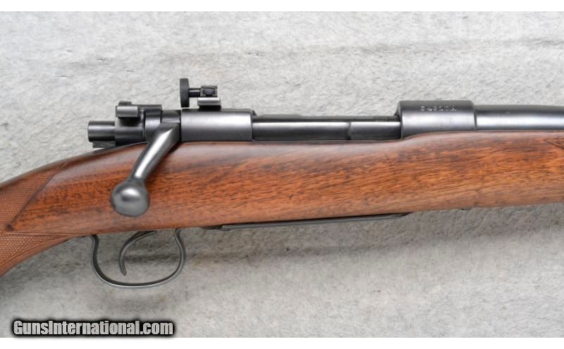 Description: This Winchester Model 54 is a right hand bolt action rifle in .30 Govt' 06 Cal. It has a 24 inch barrel. A raised blade front sight, folding notch middle sight, adjustable aperture rear sight and is drilled and tapped. The butt stock is a checkered grip walnut pistol grip with a steel cap. The forearm is a checkered grip walnut schnabel style. It is drilled and tapped. Serial Number 34310A. .30-06 Springfield SOLD Chambers: Internal magazine. Metal Condition: Very Good. Wood Condition: Very Good. Bore Condition: Excellent. Barrels: 24 inch. Stock Dimensions: LOP 13 1/2 inches. Fore End: Checkered grip walnut schnabel style. Butt Pad: Grooved steel plate. Weight: 7 Lb. 14 Oz. Sights: Raised blade front. Folding notch middle. Western adjustable aperture rear. Drilled and tapped. Item Location: Richfield, WI |