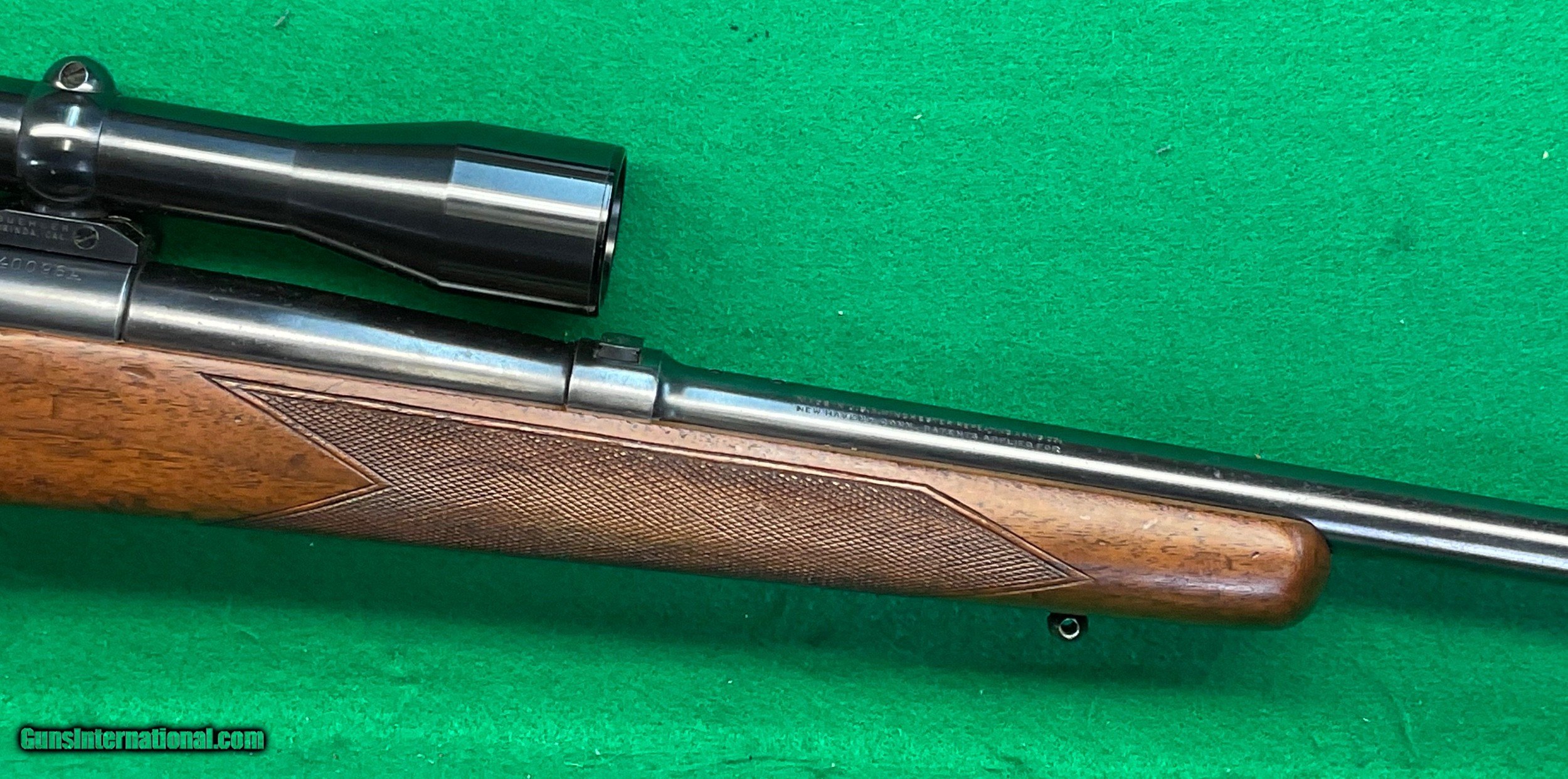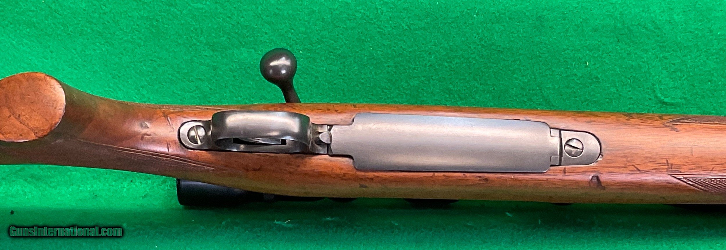 Description: Sold and on hold awaiting payment /// Interesting Winchester 22 hornet. Model 54 barreled action with pre-war model 70 bolt handle set in a pre-war model 70 stock with matching floor plate & trigger guard. Complete with Weaver variable scope in Buehler mounts. Barrel has two extra holes for early target scope mount. Very interesting hybrid with mint bore. $1498 plus $58 insured shipping. No credit cards and no trades. 5 month layaway available. C&R ok. SOLD Curio/Relic: Yes |