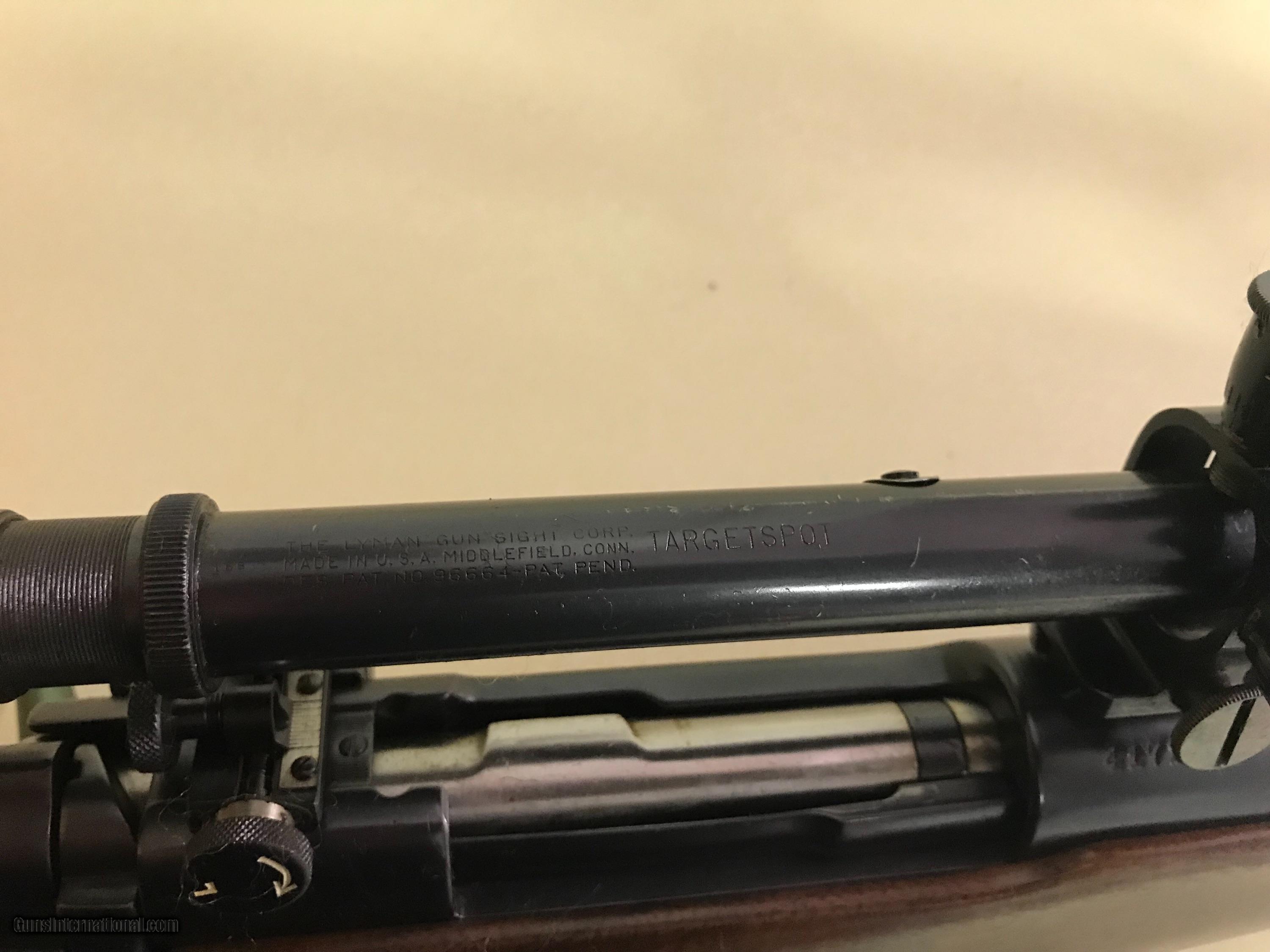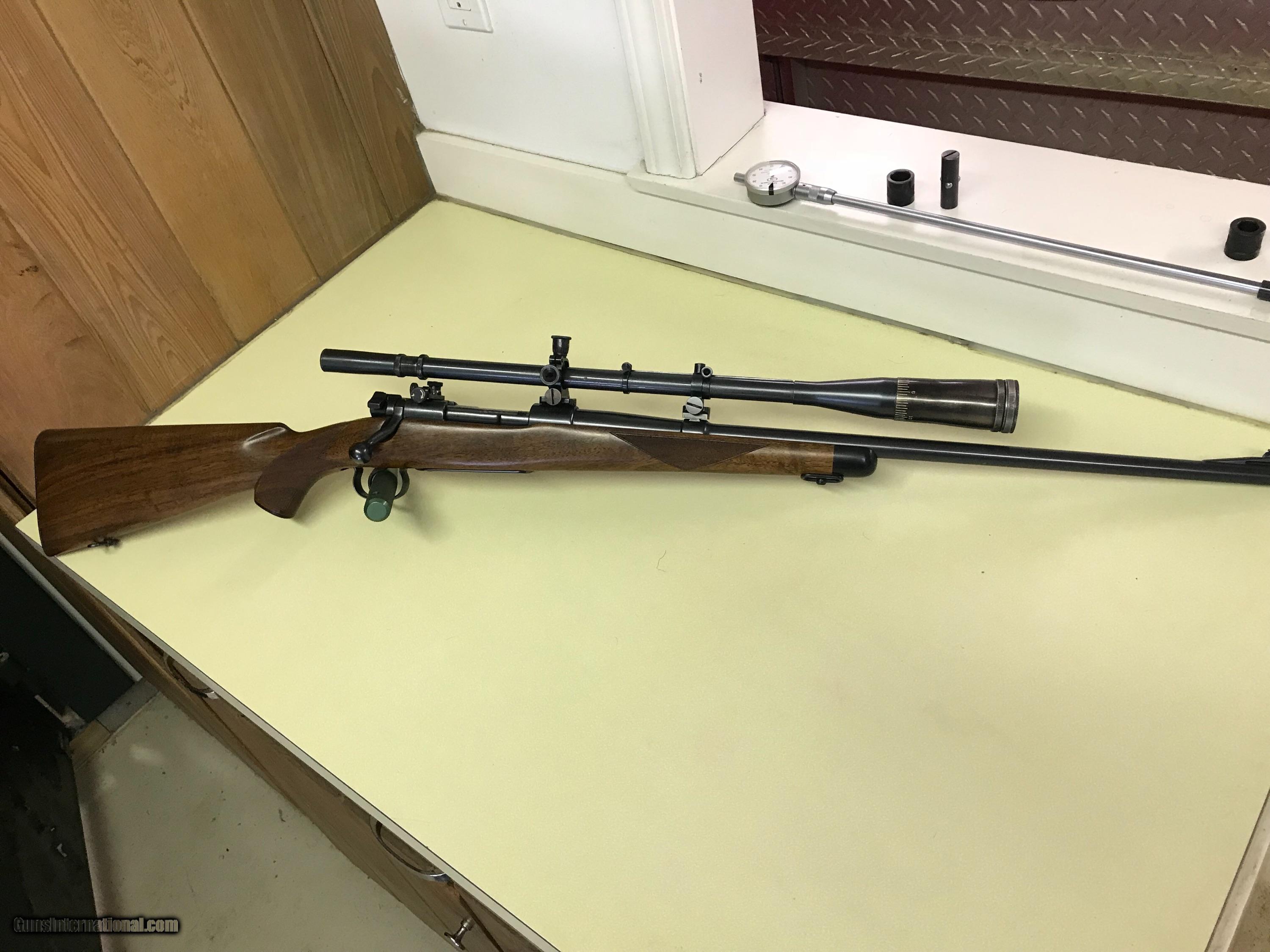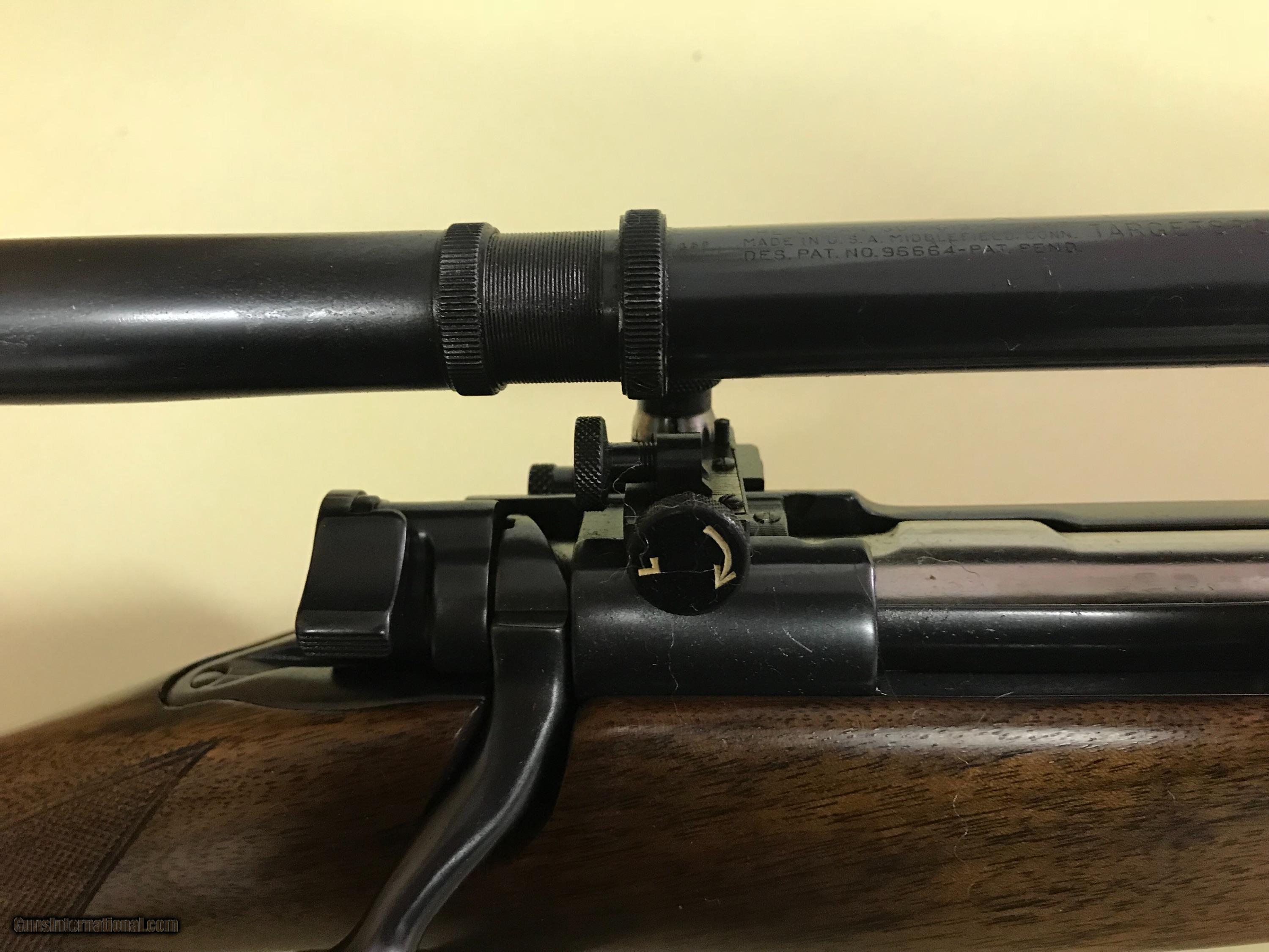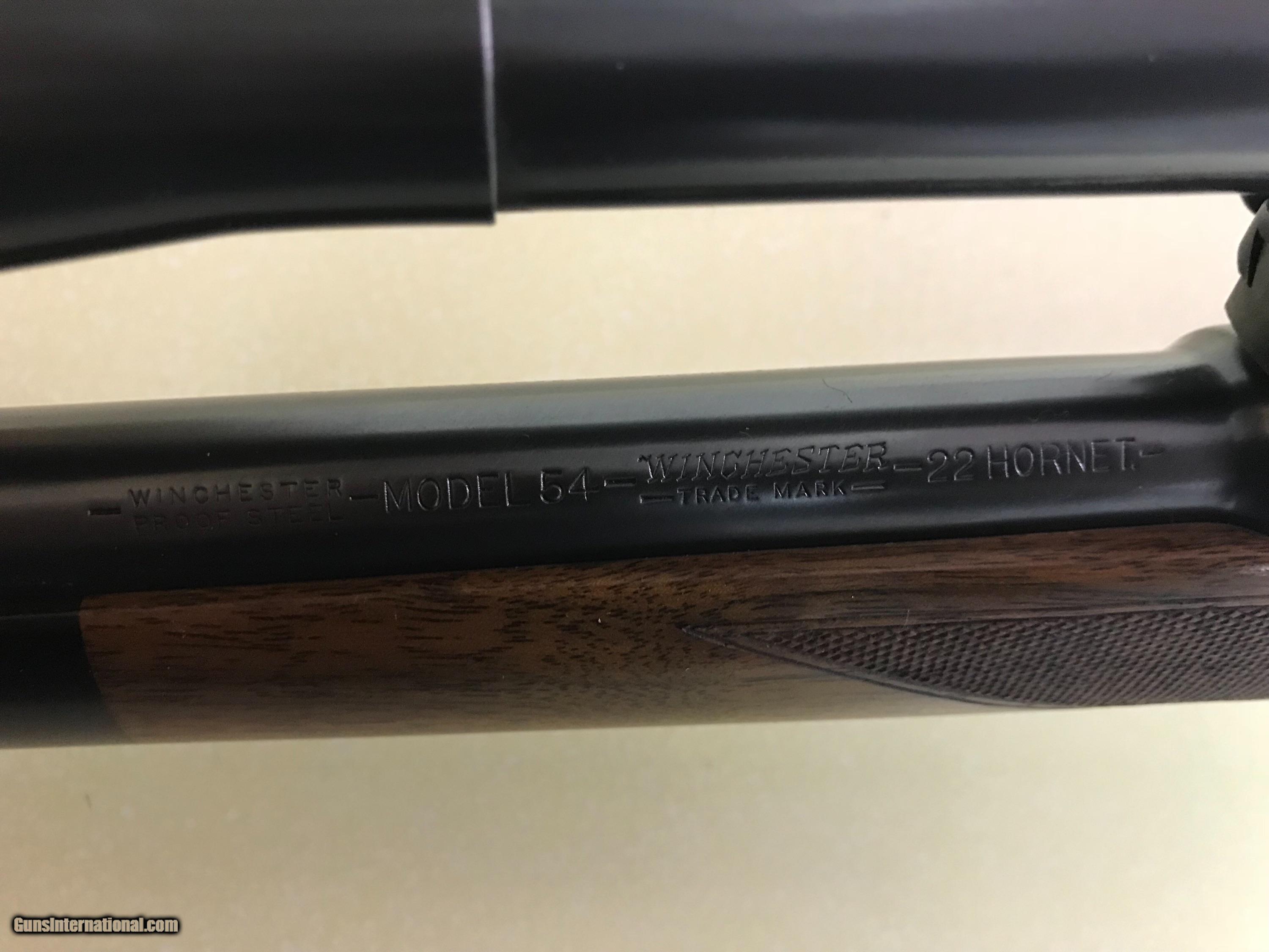 Description: Winchester M-54, 22 Hornet, Pre 1964, Ebony tip, Steel Butt Plate, Sn. 41727A, Lyman Targetspot, and Lyman Sights, Very Nice Gun in Excellent condition. SOLD |