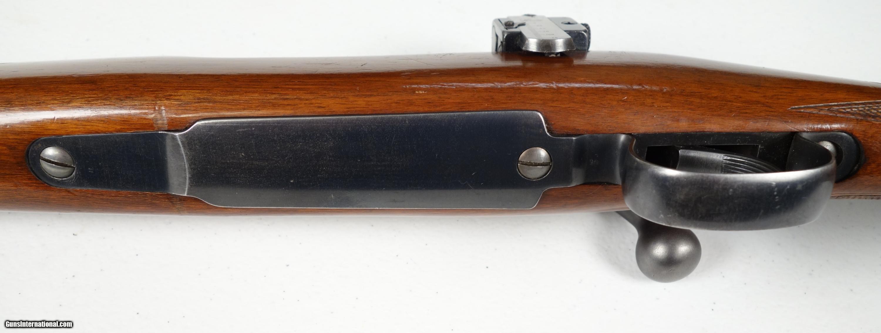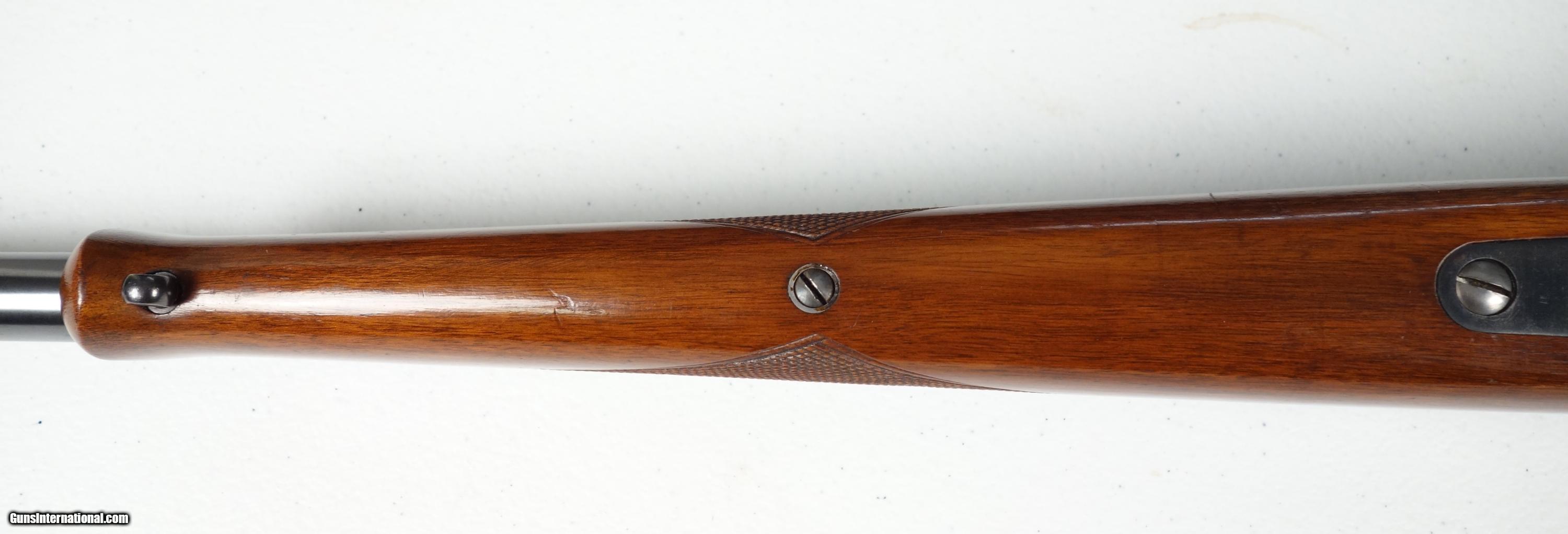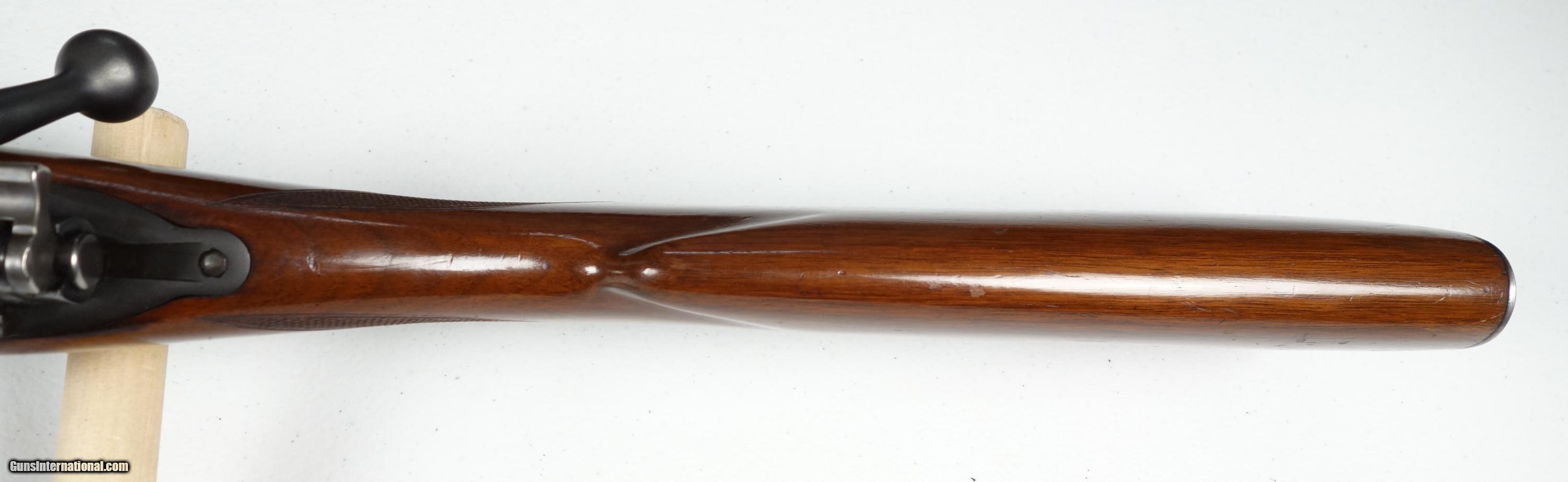 Description: An amazing 91 year old rifle in outstanding, all original condition except for one unfortunate, small but noticeable repair where it appears a rear swivel stud probably ripped out. The area is now solidly repaired with epoxy fill and original stud, but really needs a wood inlay by someone who knows what they are doing. With that said, just take a look at this otherwise amazing rifle. It is unaltered with excellent finishes and no drill holes on top of rear receiver bridge, and no bolt alteration. There were only about 50,000 or so of these made in ALL configurations, and there are almost no survivors left that have not been butchered for scope use with drill holes, funky bolt handles (which also ruined the stocks) replaced safeties, etc. The Bluing is outstanding with the only notable wear being a couple spots of oxidation under barrel near muzzle end. Even the bottom metal is nearly perfect, almost unheard of with 54s. Wood is equally nice besides the repair. Has correct sights (All VERY expensive). 24" barrel with excellent bore and flawless mechanics. Bolt serial# matches receiver. A really great rifle that deserves an expert wood man's touch to restore it to most of it's former glory! I can accept credit card payment with 3% fee. SOLD Curio/Relic: Yes |