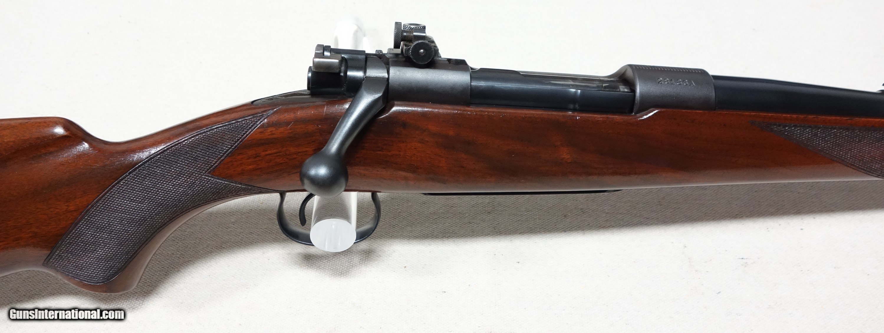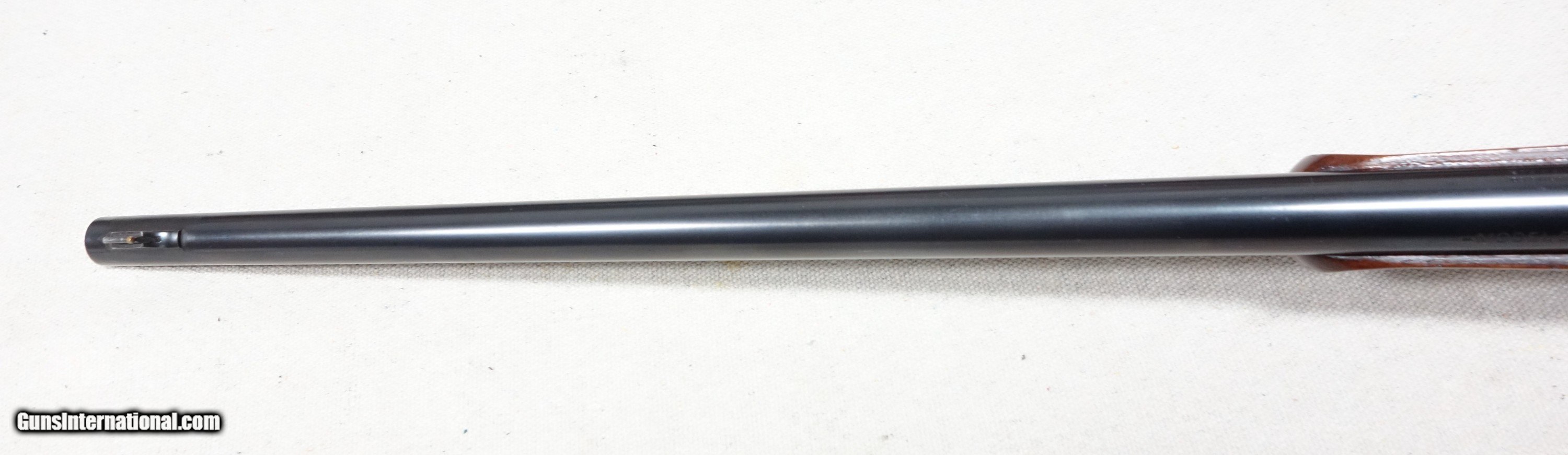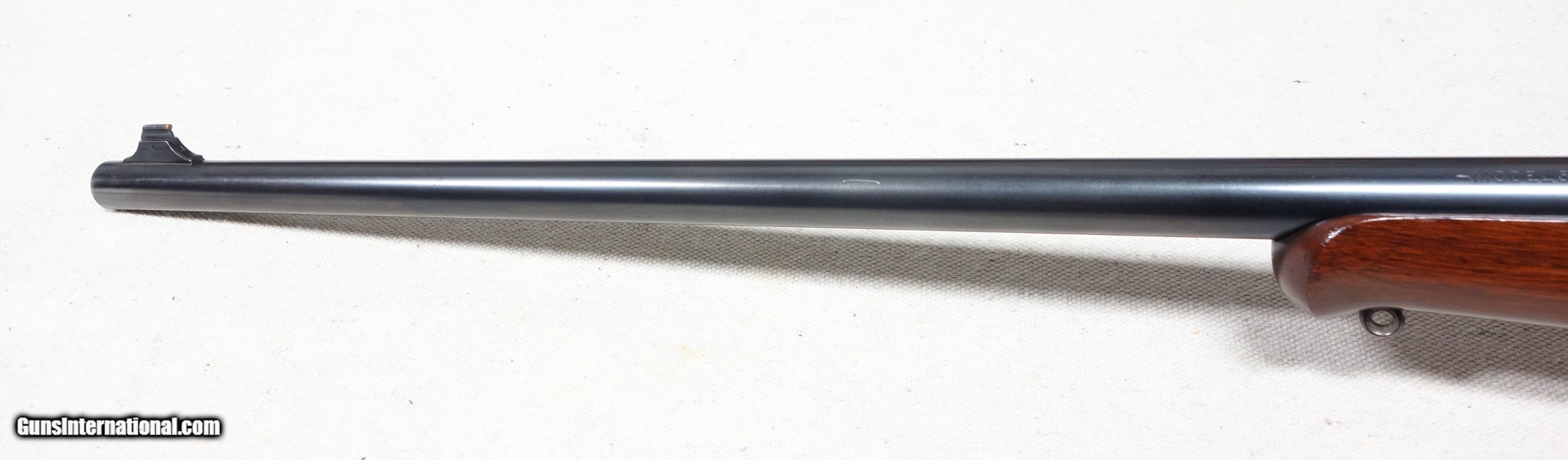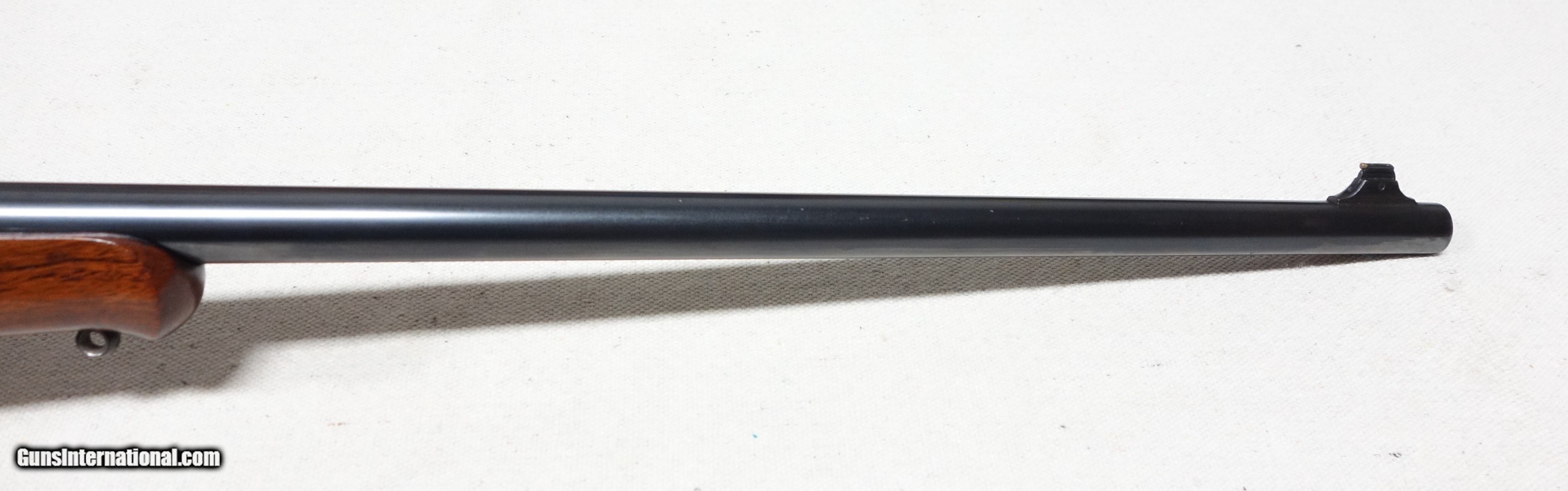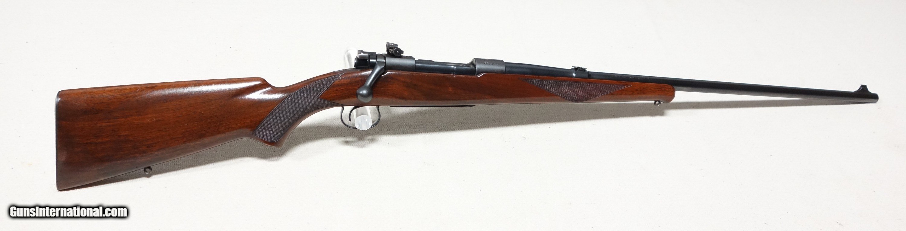 Description: Famed forerunner to the model 70, this is a Winchester Model 54 in 30-06 caliber. Completely unaltered and in excellent condition for this model. Very early S/N 7733 with matching scribed bolt made during the 2nd year of production 1926. This was the first of the 2 standard rifle styles with its slender schnabel tipped stock and integral post front sight. The barreled action shows strong and bright original blue approaching 95%, with areas of light surface frosting. The bottom metal is among the best I've seen on this model, completely original and without the typical flaking and browning so often seen. The buttplate has flaked to a silvery grey patina. The original wood finish is also very nice with only scattered light handling marks and rubs. The barrel channel is clean with no bedding, routing, or other issues. The rear receiver bridge remains UNDRILLED. All components are original issue including the factory inletted and installed long slide Lyman 48W receiver sight and supporting Lyman 6W 2 folding leaf rear sight. The 24" rust blued barrel has an excellent shiny bore and all mechanical functions are smooth and proper. There were only about 50,000 Model 54s made in all calibers and grades, and of those, I would estimate that less than 20% remain collectible by any stretch of the imagination, the majority having been grossly modified. This one remains in excellent original condition, and is one of the finer examples that you will see offered over the long term. Please add $100 for expedited and fully insured shipping from Alaska. SAFETY NOTICE: Buyer is solely responsible for determining that a used gun is safe to shoot. The firearms offered by Frontier Guns have not been test fired but have been given a visual inspection only for the purpose of sale. It is a requirement that every used firearm be inspected by a qualified gunsmith before loading or firing. By purchasing, the buyer agrees to hold seller harmless against damages, injury, or death caused by defective merchandise or improper use. SOLD Curio/Relic: Yes |