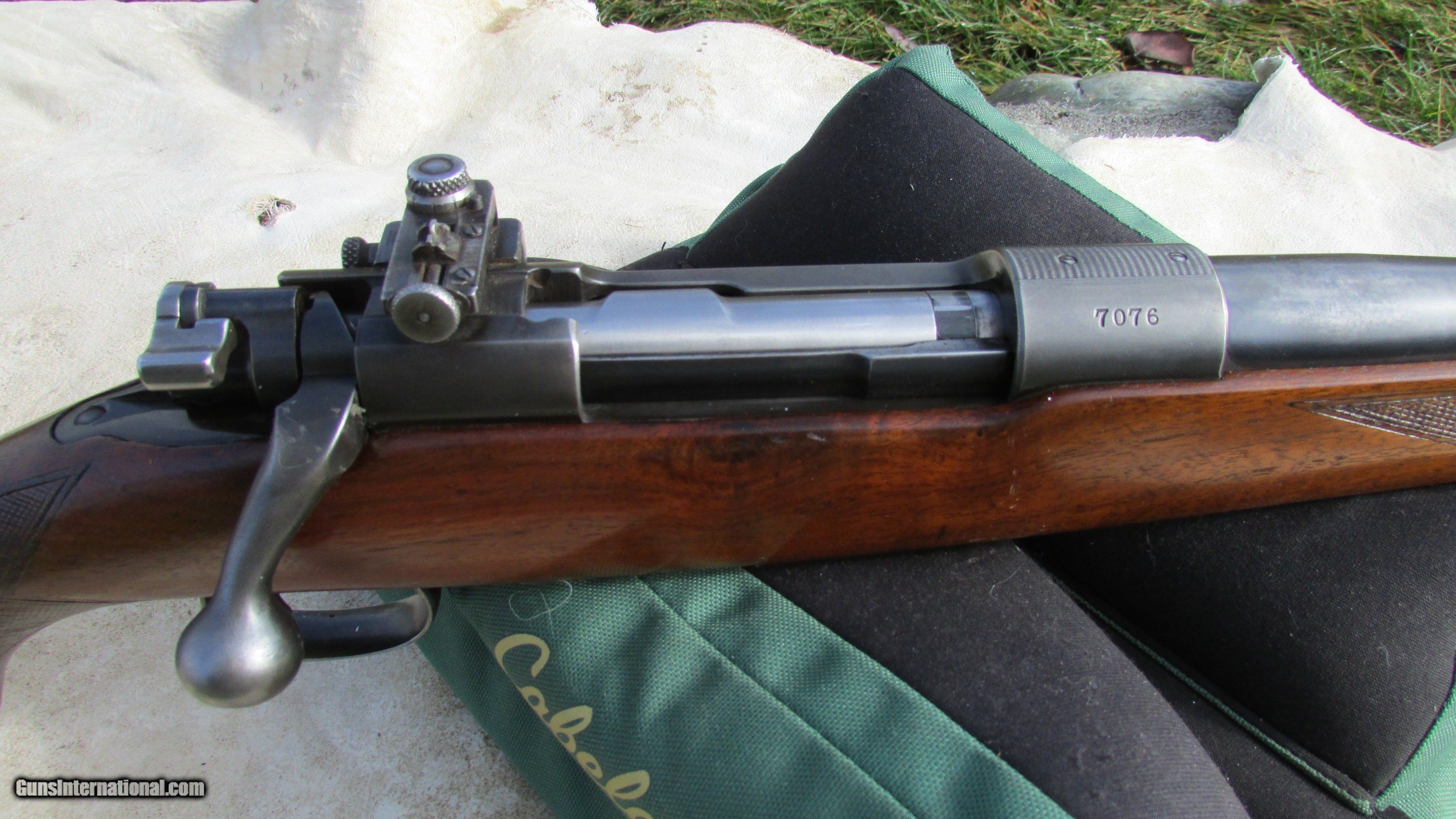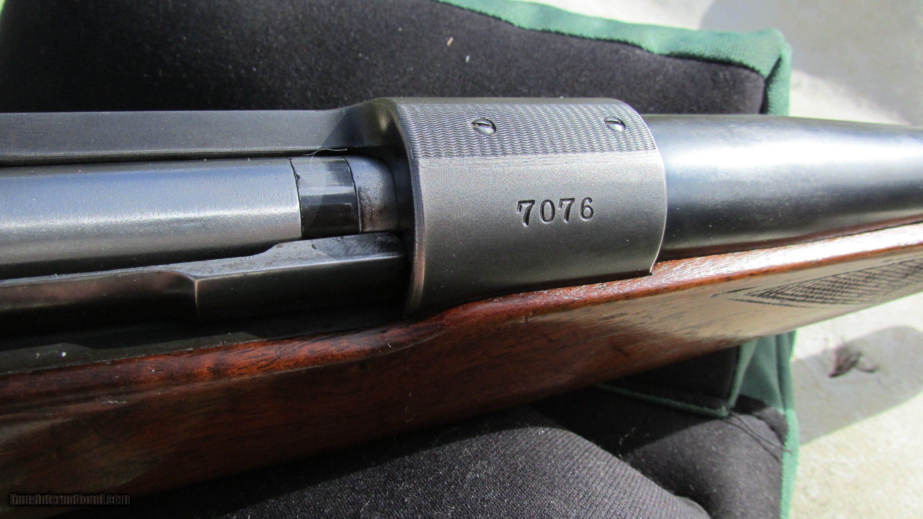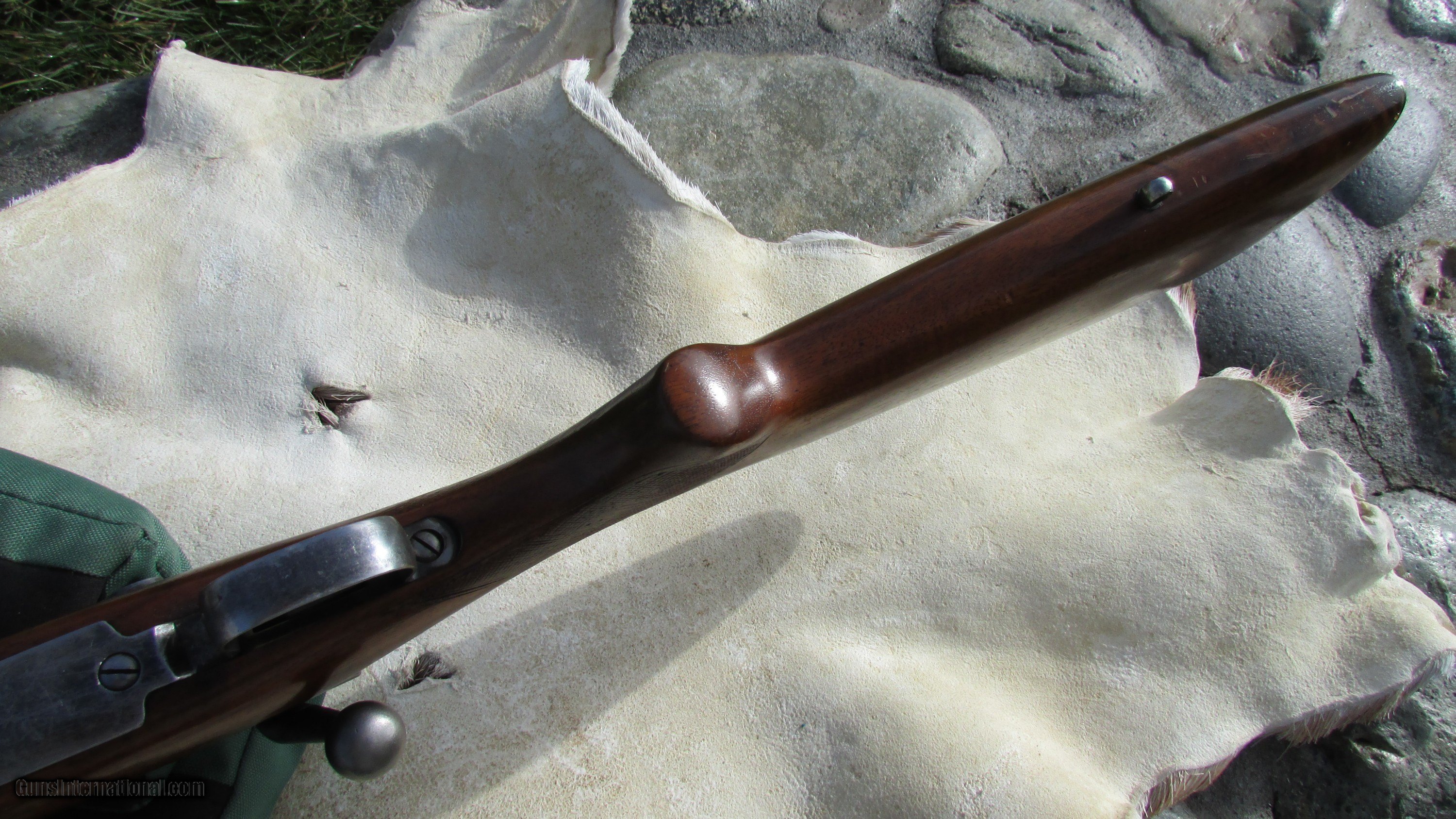 Description: Winchester started of with the model 54 that soon developed into the model 70 we have today. This rifle was manufactured in 1926 with serial number 7076. The metal is good with normal wear from use and age. There is one rough spot just past the forearms on the left side of barrel. There is no rust or pitting. Bottom metal has a patina color, no bluing left. Bore is strong with well defined lands and grooves. Not shot much just carried. The wood is also good with no cracks or chips. Checkering is smooth to the touch but still easily seen. The rear bridge has not been drilled and taped. It is covered with an original Lyman open peep. Very nice example of a model 54 with a 4 digit serial number. Shipping is $75.00 to lower 48. SOLD Curio/Relic: Yes Rifle Caliber: .30-06 Springfield Manufacturer: Winchester Model: 54 Serial Number: 7076 Condition: very good Metal Condition: good Wood Condition: good Bore Condition: strong Barrel Type: nickel steel Action: bolt Triggers: factory Stock: walnut Stock Dimensions: 31.25 Stock Comb: straight Stock Heel: steel LOP: 13.5 Finish: smooth Weight: 6 Sights: peep Manufacture Date: 1926 Item Location: Medford |
