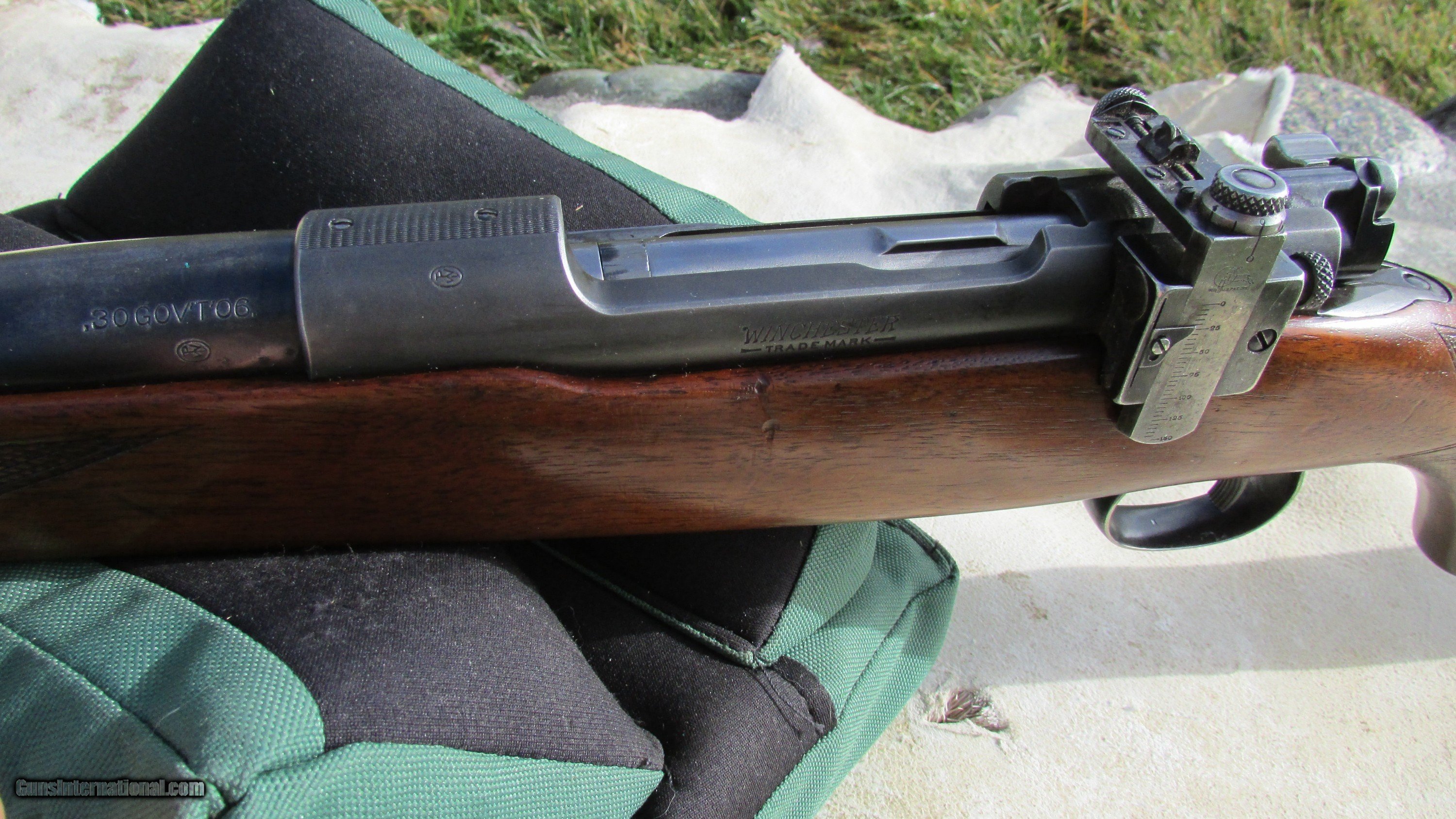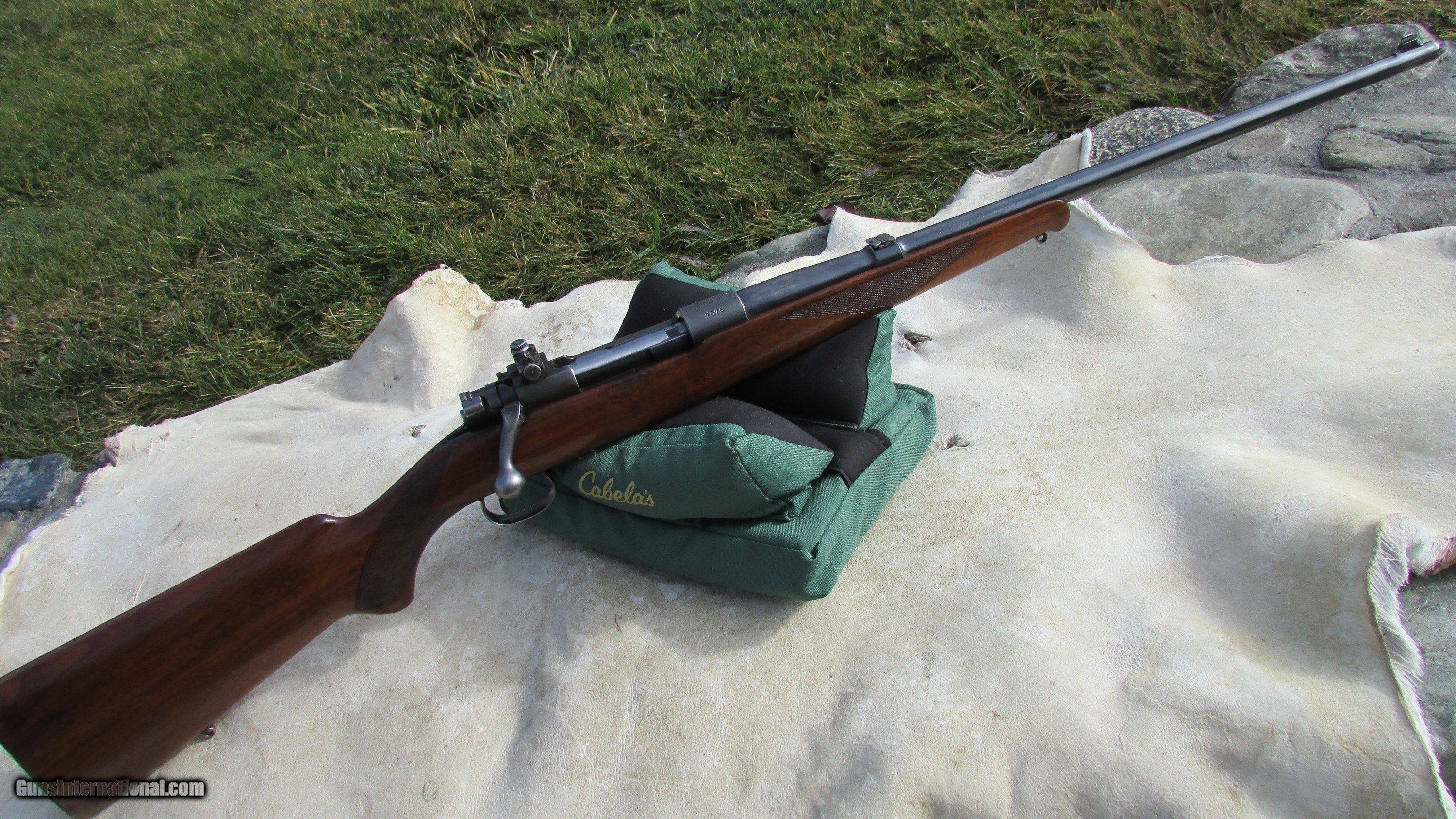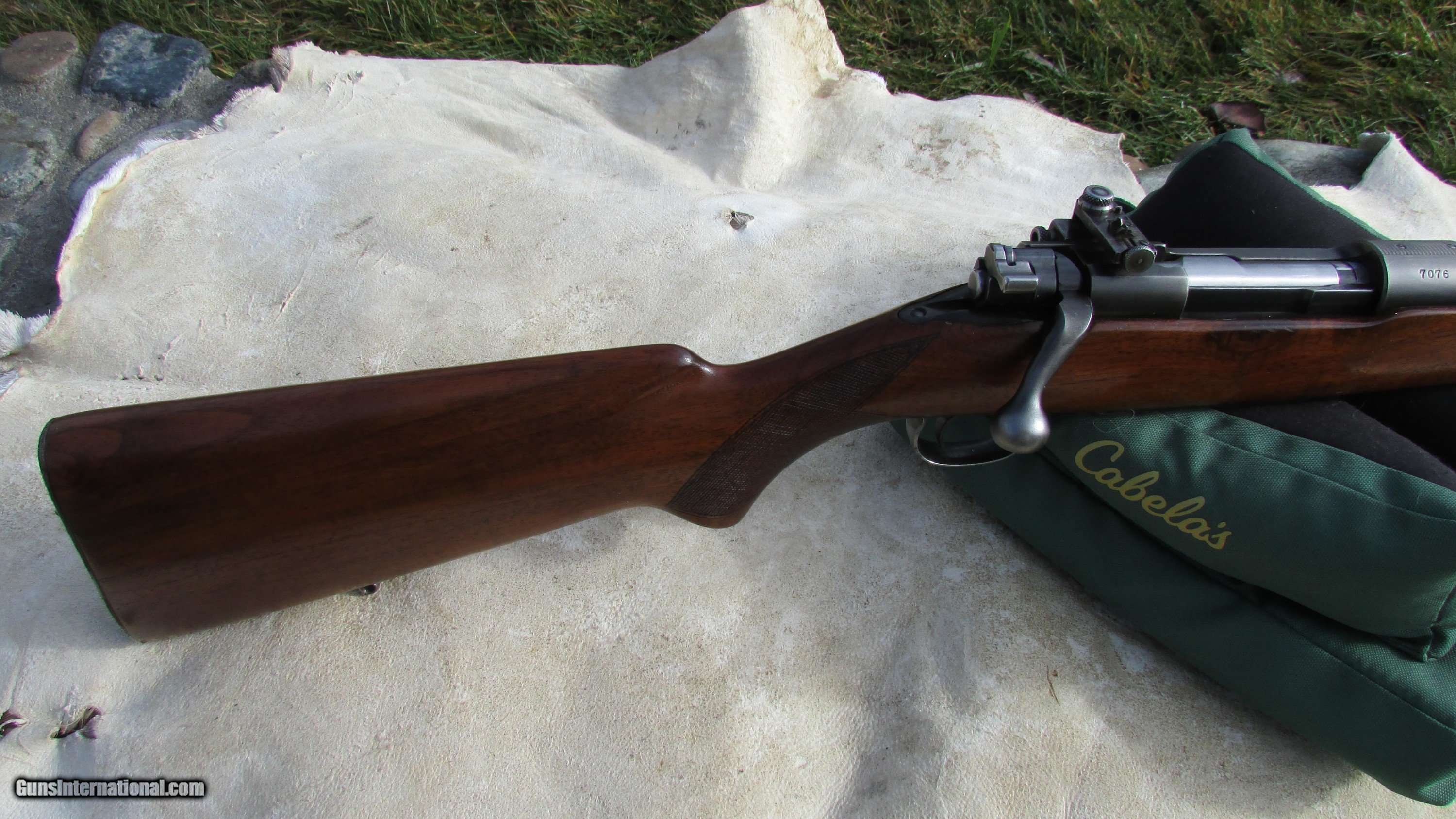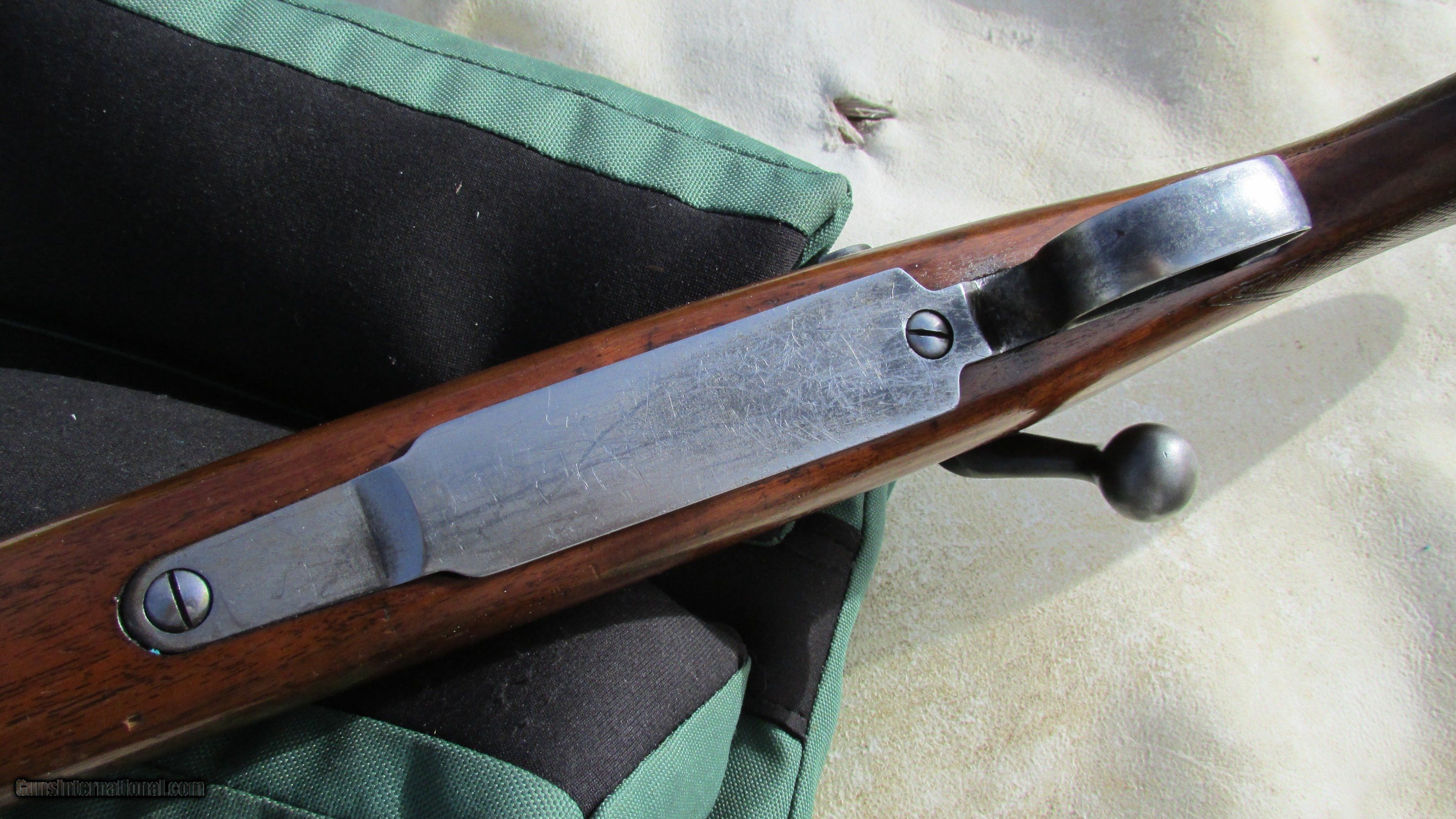 Description: Winchester started of with the model 54 that soon developed into the model 70 we have today. This rifle was manufactured in 1926 with serial number 7076. The metal is good with normal wear from use and age. There is one rough spot just past the forearms on the left side of barrel. There is no rust or pitting. Bottom metal has a patina color, no bluing left. Bore is strong with well defined lands and grooves. Not shot much just carried. The wood is also good with no cracks or chips. Checkering is smooth to the touch but still easily seen. The rear bridge has not been drilled and taped. It is covered with an original Lyman open peep. Very nice example of a model 54 with a 4 digit serial number. Shipping is $75.00 to lower 48. SOLD Curio/Relic: Yes Rifle Caliber: .30-06 Springfield Manufacturer: Winchester Model: 54 Serial Number: 7076 Condition: very good Metal Condition: good Wood Condition: good Bore Condition: strong Barrel Type: nickel steel Action: bolt Triggers: factory Stock: walnut Stock Dimensions: 31.25 Stock Comb: straight Stock Heel: steel LOP: 13.5 Finish: smooth Weight: 6 Sights: peep Manufacture Date: 1926 Item Location: Medford |