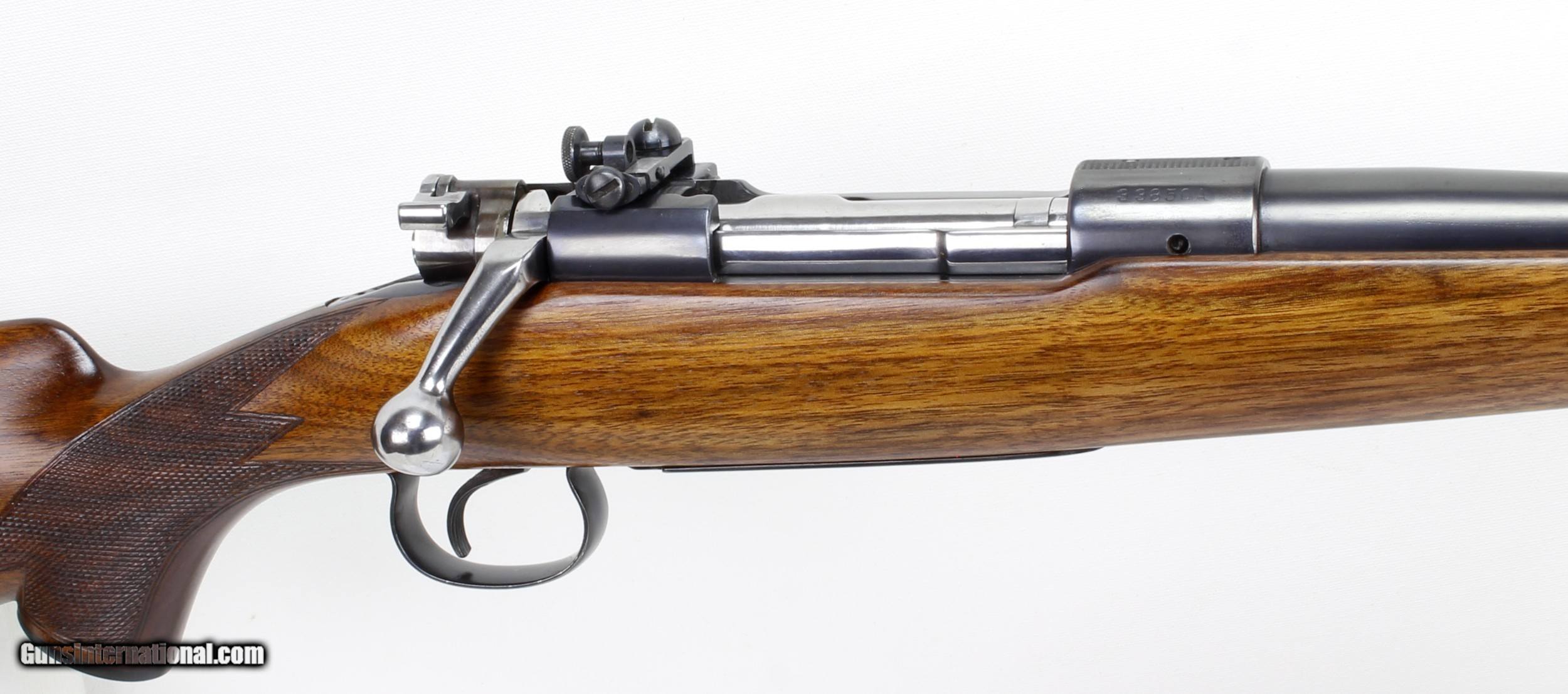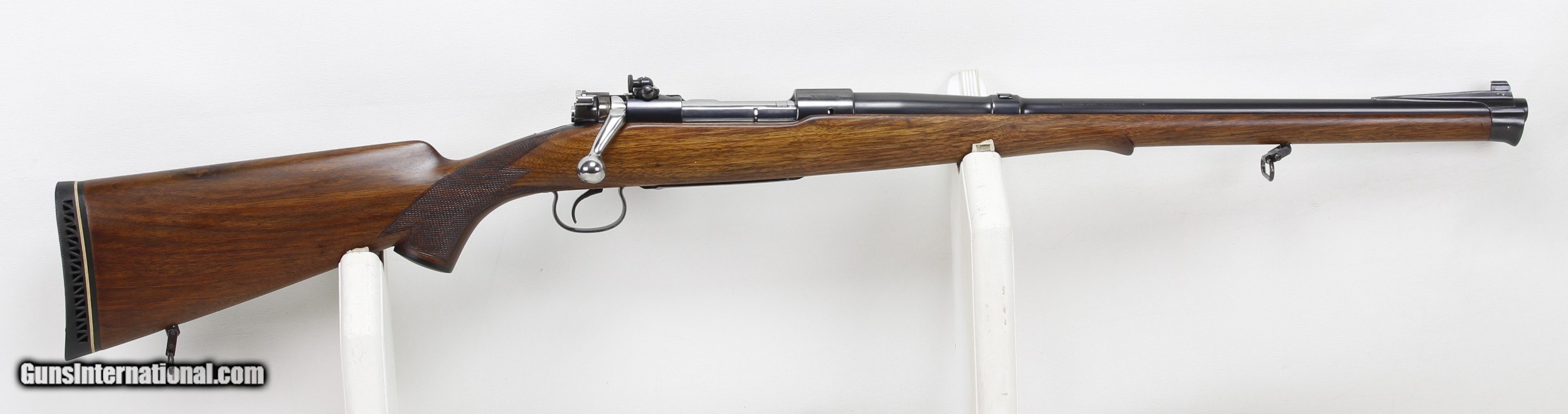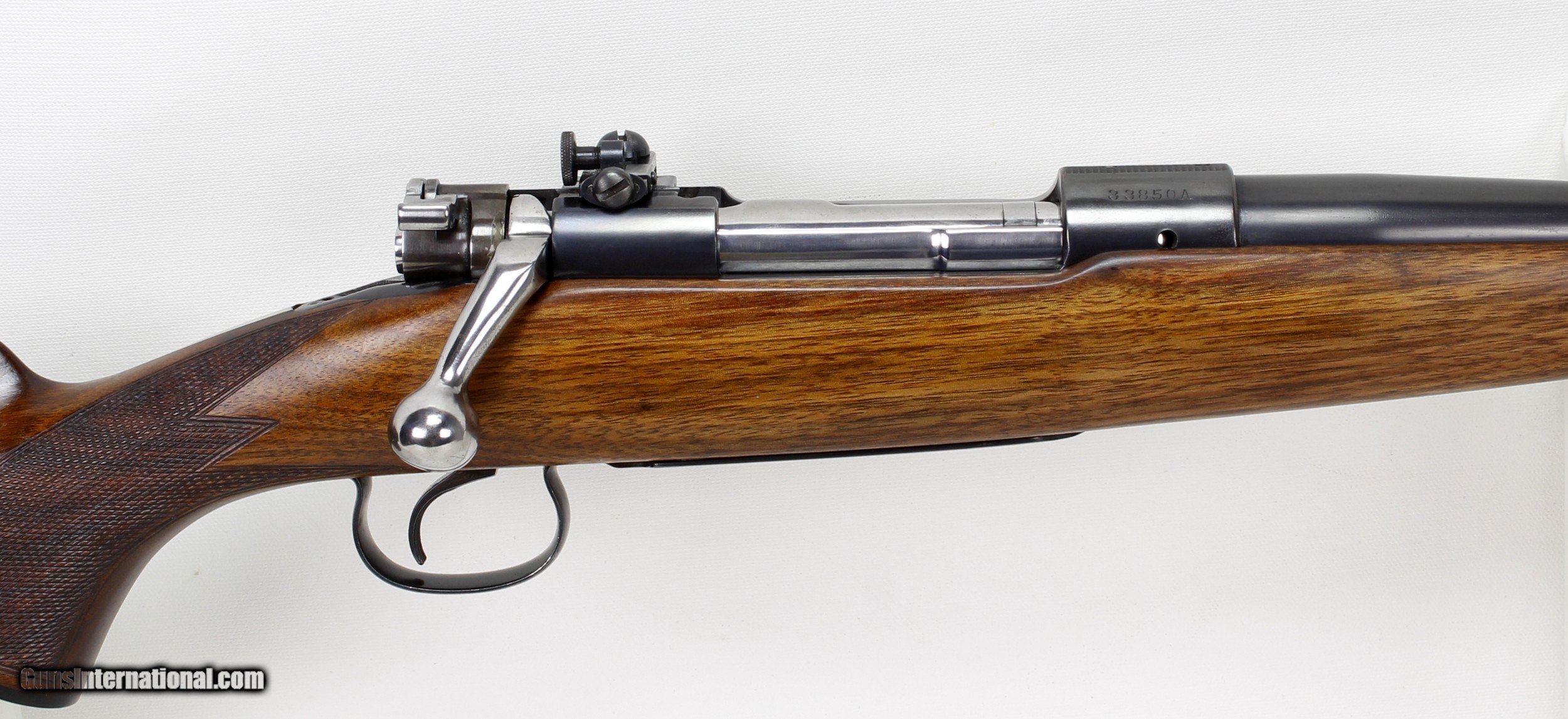 Description: Winchester Model 54 Bolt Action Carbine in .30-06. SN #33850A. Mfg. in 1931. LOP 14 1/4". 20" Barrel with an EXCELLENT Bright Bore with STRONG RIFLING. The Blued Metal and Mannlicher Style Stock with Checkered Pistol Grip Stock and Fancy Forend have been TOUCHED UP in the SHOOTER'S EXCHANGE SHOP and LOOK GREAT. Open sights with a Lyman 57 WJS rear aperture sight on top of the receiver. Pachmayr Rubber Recoil Pad. Metal Forend Cap at the Muzzle. Quick Disconnect Sling Swivels. AN ALL-AROUND GREAT LOOKING CARBINE IN A GREAT CALIBER. Weight: 7.8 lbs. Trigger Pull: 4 3/4 lbs. More photos available upon request. Ships to Lower 48 W/ Insurance $50.00. This rifle is on hold, until we get a Buffalo Bill Center, Cody Wy, Letter, to confirm original Condition. SOLD Curio/Relic: Yes Rifle Caliber: .30-06 Springfield Manufacturer: Winchester Model: 54 Serial Number: 33850A Barrel Length: 20 Condition: Excellent Metal Condition: Excellent for Age Wood Condition: Refinished Bore Condition: Excellent Action: Bolt Action LOP: 14 1/4 Finish: Blue Weight: 7.8 lbs. Manufacture Date: 1931 |