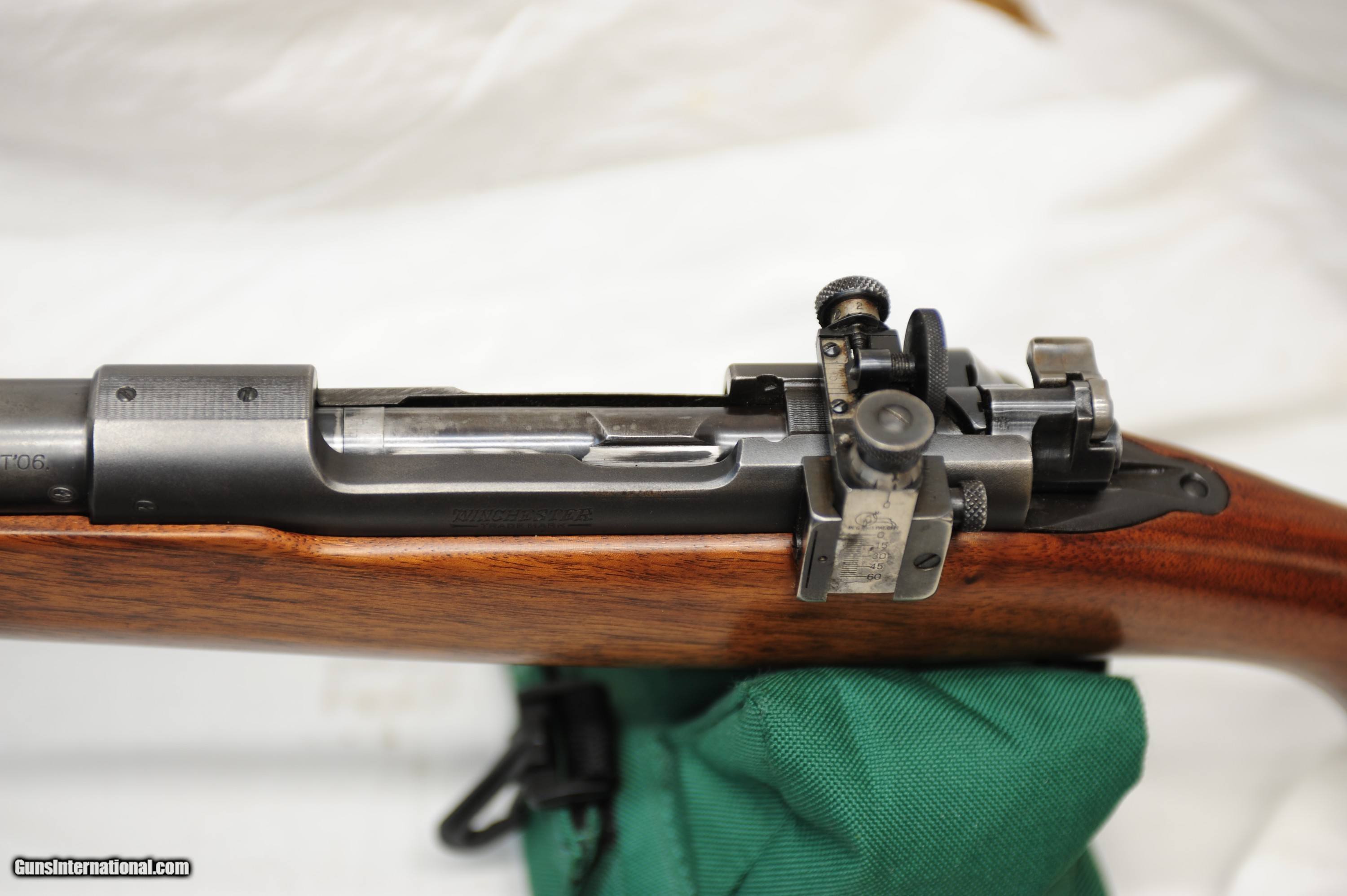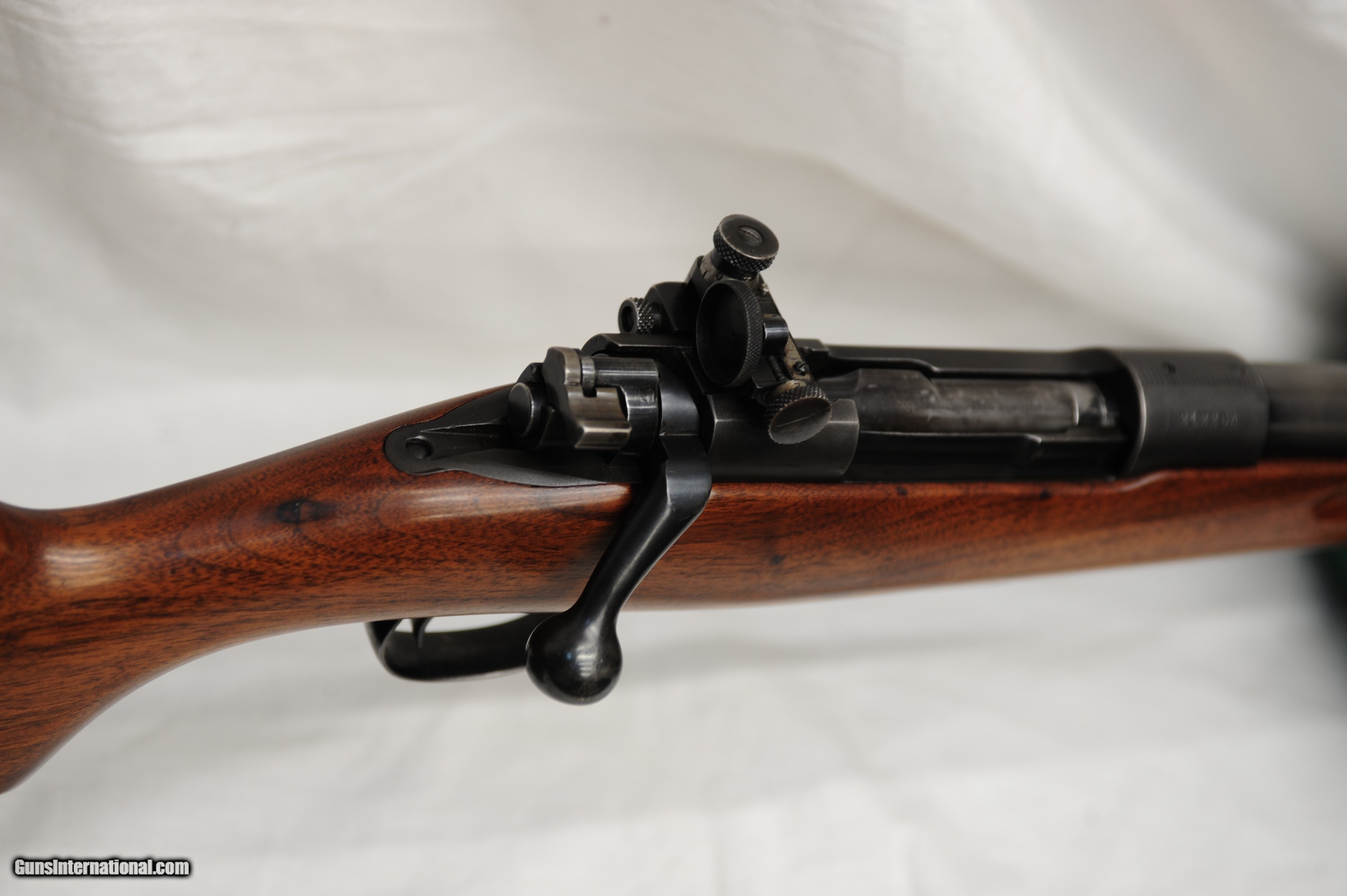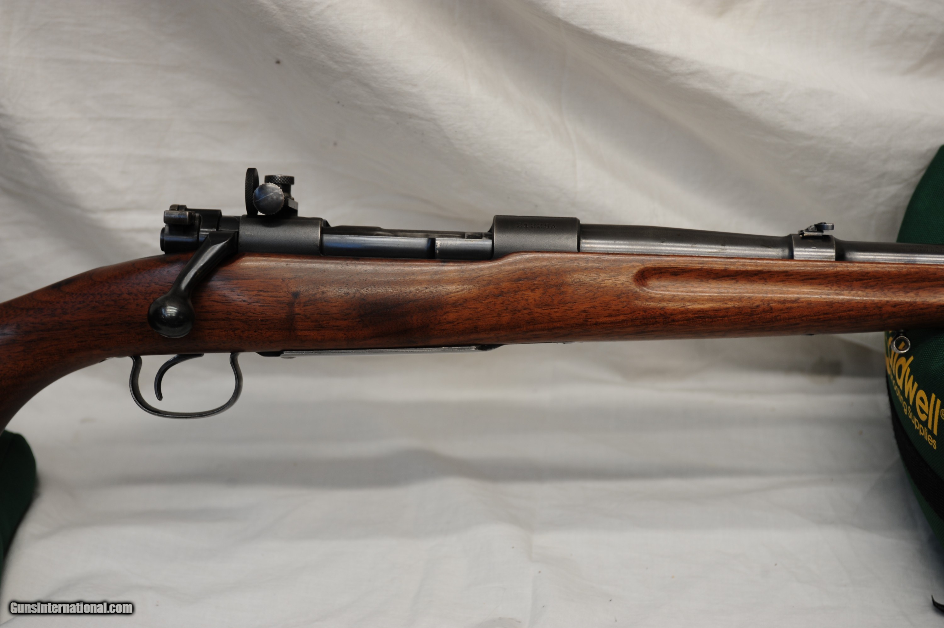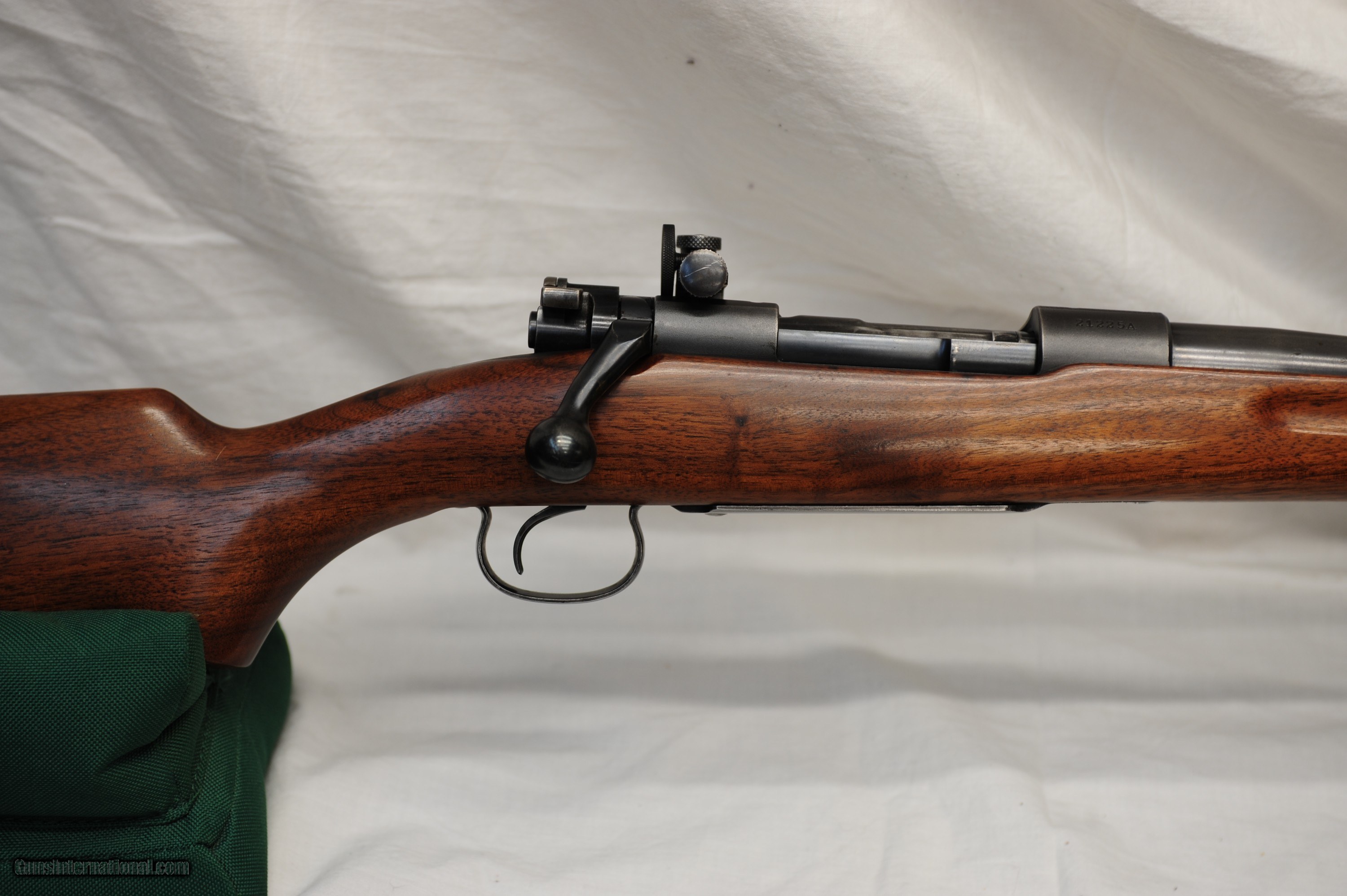 Description: Winchester model 54 carbine. Has a 20 inch nickle steel barrel 30/06 caliber. Has a Lyman 48 WJS receiver sight. A Lyman folding rear sight. Serial number 21225 A Made in 1929 Metal is originat and the wood has been cleaned up and light coat of true oil added. The pride of the wood is correct to the metal. $995.00 plus shipping SOLD |