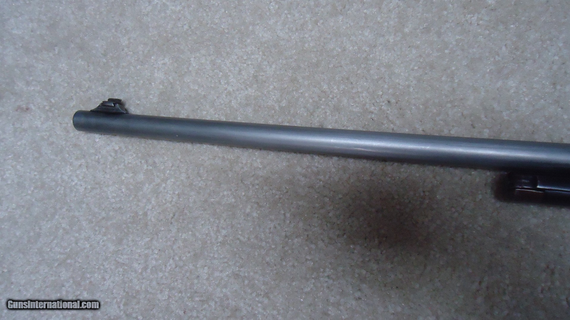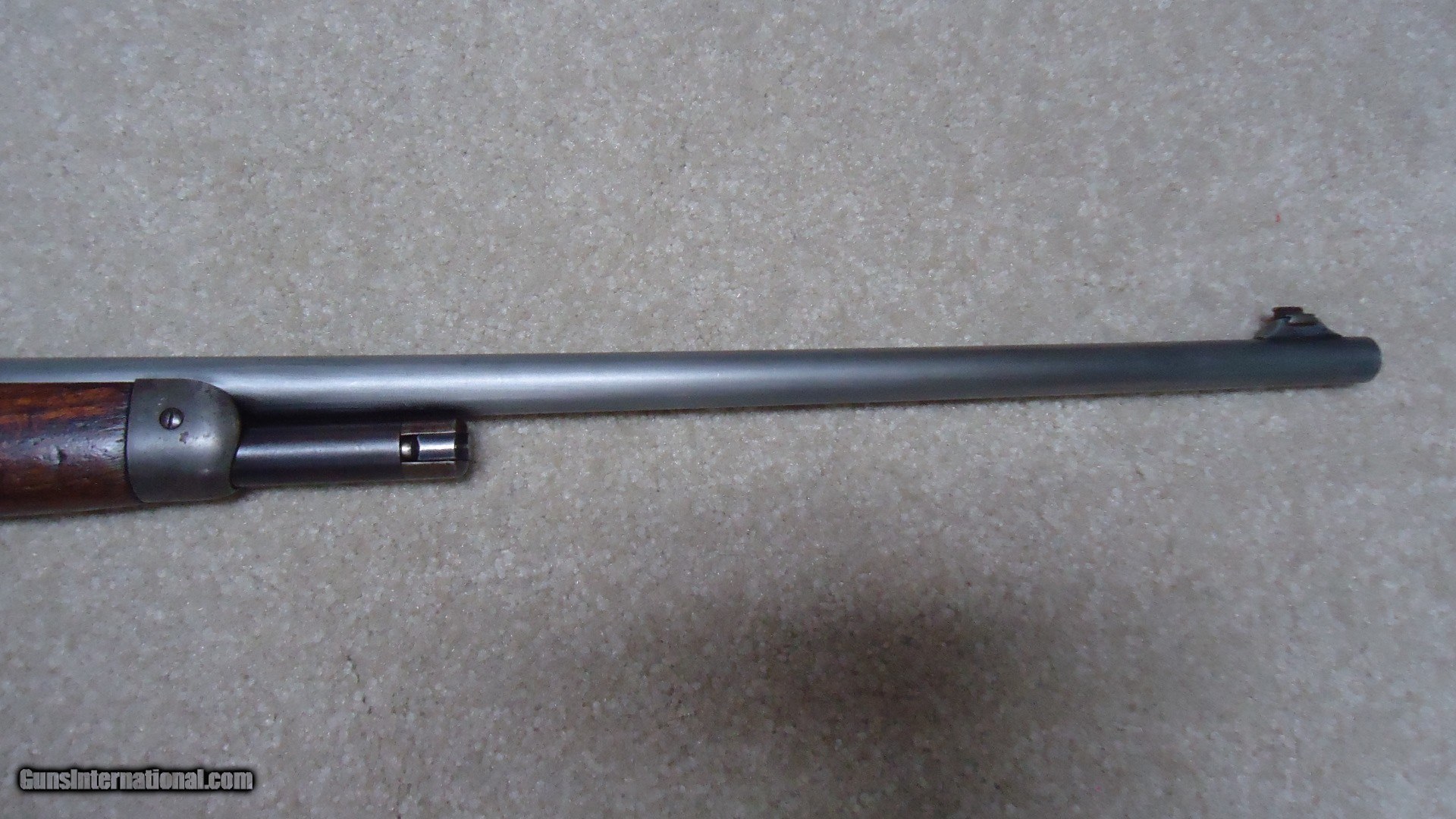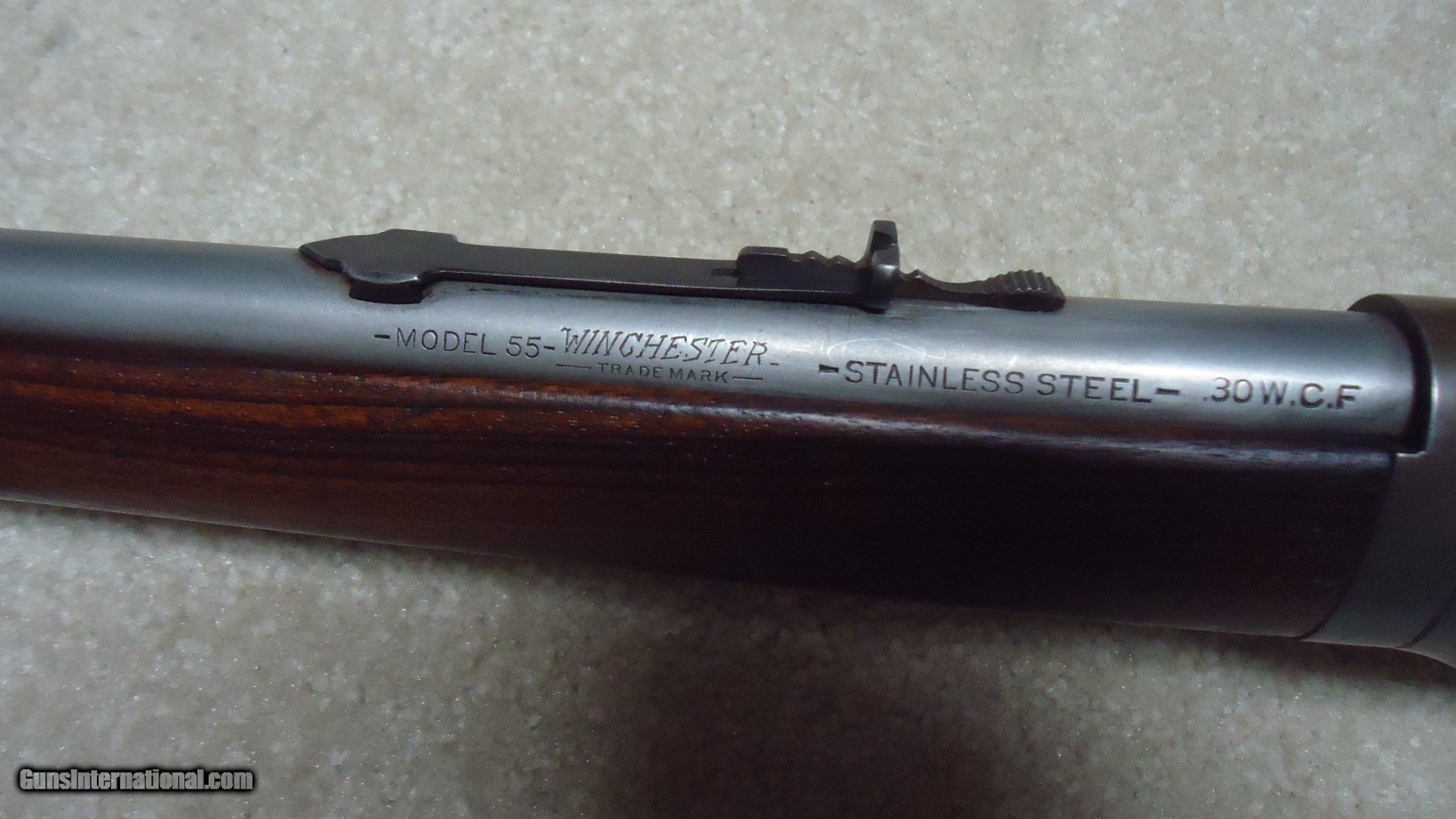 Description: EXTREMELY RARE MODEL 55 TAKEDOWN .30WCF WITH STAINLESS STEEL BARREL, #11XXX, MADE 1929. Winchester introduced Stainless Steel barrels in 1926 and offered them as a special order item. Demand was so limited that in 1930, right after the stock market crash of 1929 when this rifle was built and the beginning of the Great Depression, Winchester discontinued Stainless Steel barrels and informed their sales reps to announce that Winchester was selling firearms with stainless barrels "at bargain prices! (!) So, today, this means any of these rare guns are difficult to locate. Since Stainless Steel barrels wouldn't take the blue finish of the day, the factory put from one to four coats of black japanned finish on these barrels. This paint-like finish scraped and wore off easily and most users simply removed this japanned finish which left the barrel a bright to dull gray. This example has such a barrel. It is fitted with standard flat top buckhorn and blade sights and is clearly marked "STAINLESS STEEL" on the barrel side. Typical of this vintage rifle, the receiver blue has aged and flaked to an uncleaned gray/brown with fine blue on the loading gate and excellent screw heads. There is a small amount of blue in the most protected areas. Wood is generally excellent showing very light handling only and tight wood to metal fit. It retains the original steel butt plate. Action and takedown are tight and the bore is perfect. A very scarce variation on any model Winchester. SOLD Curio/Relic: Yes Rifle Caliber: .30-30 Winchester Manufacturer: Winchester Model: MODEL 55 Serial Number: 11XXX Barrel Length: 24 Condition: FINE Bore Condition: EXCELLENT |
