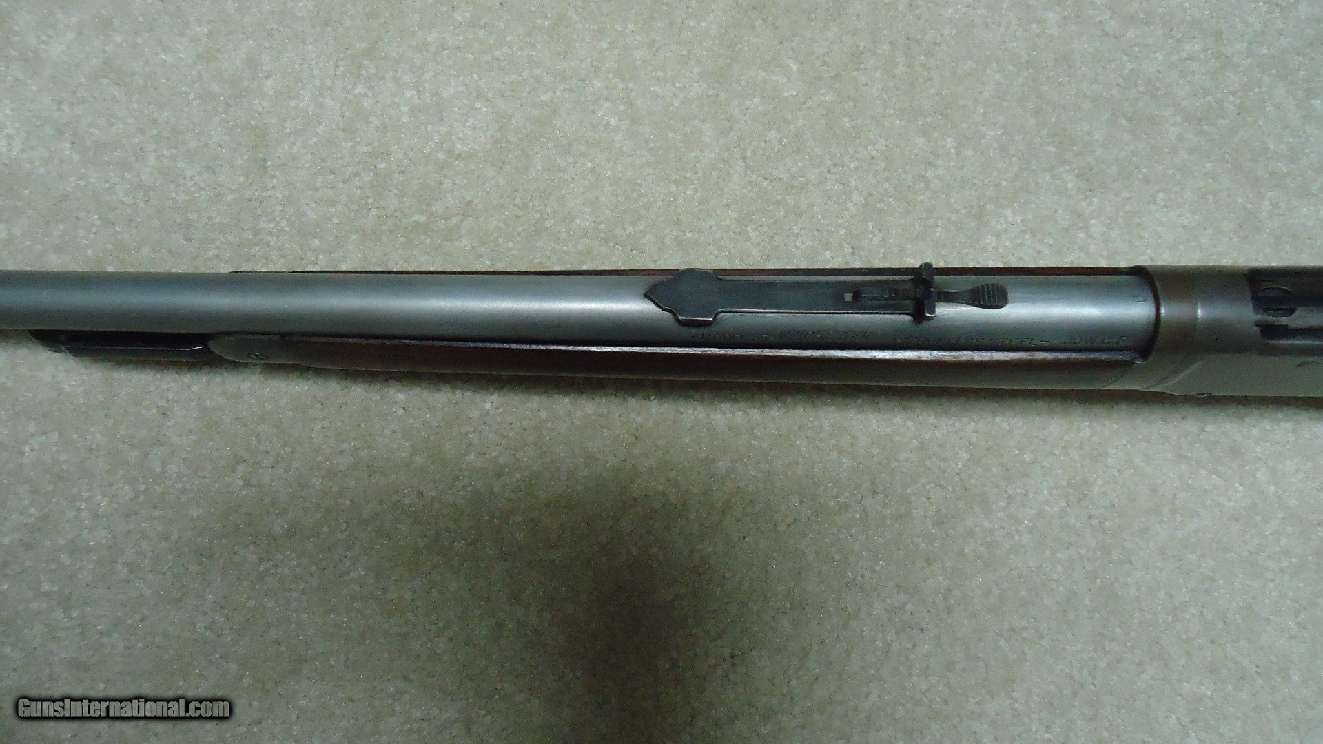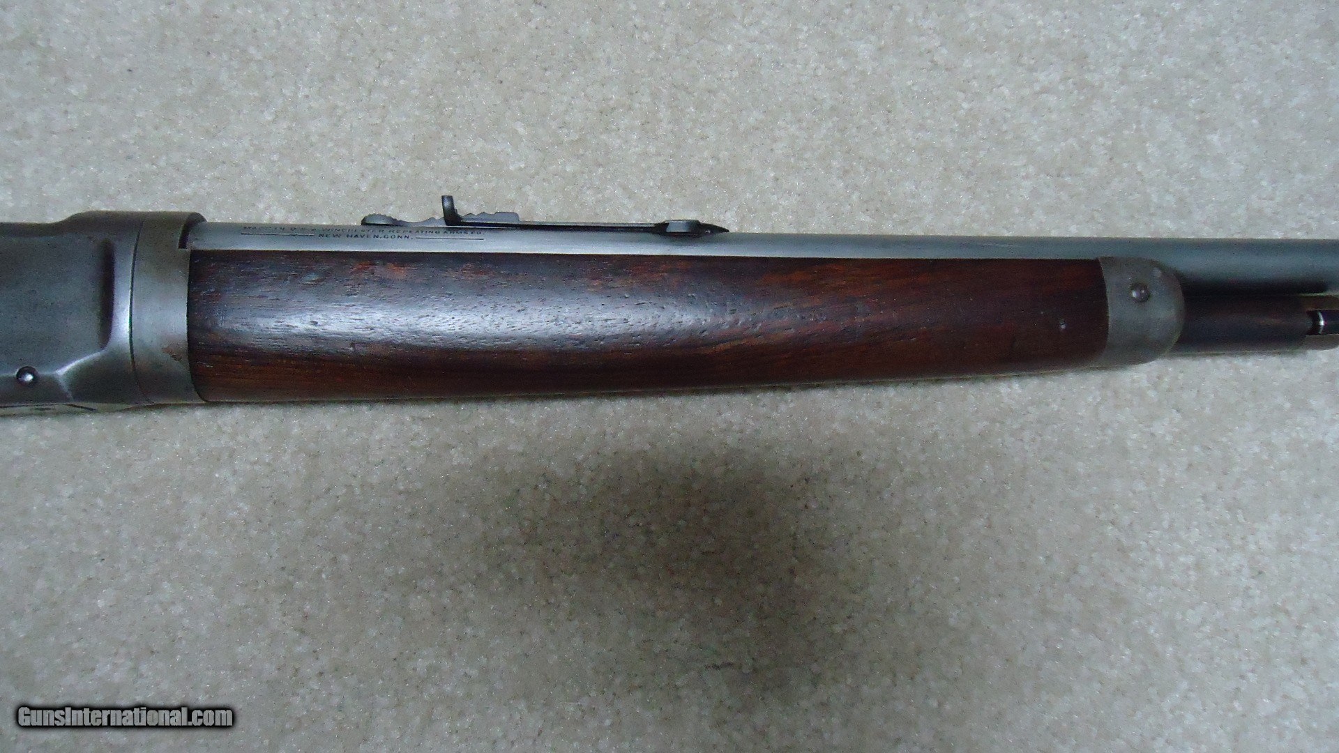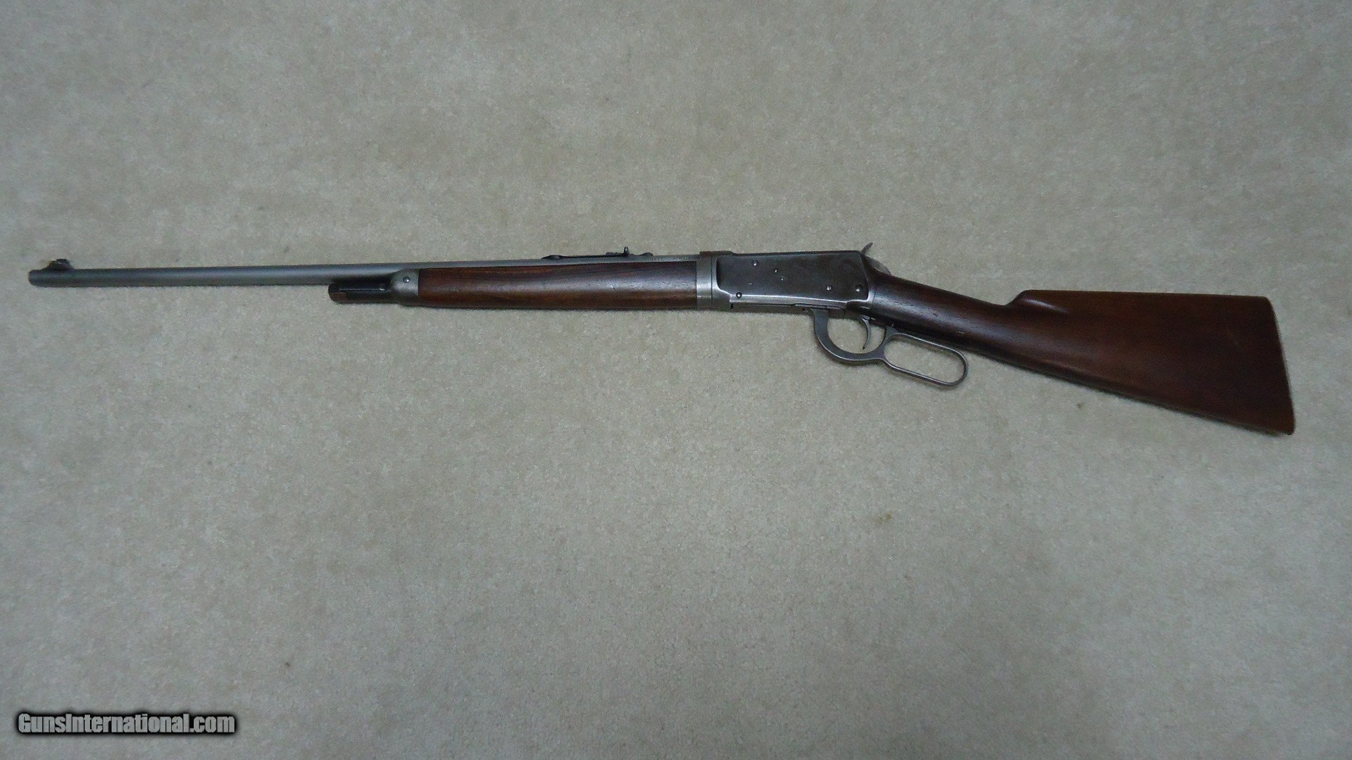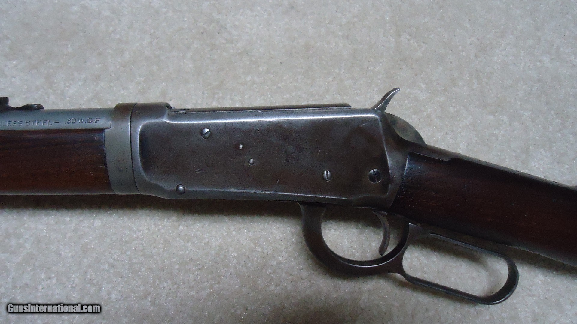 Description: EXTREMELY RARE MODEL 55 TAKEDOWN .30WCF WITH STAINLESS STEEL BARREL, #11XXX, MADE 1929. Winchester introduced Stainless Steel barrels in 1926 and offered them as a special order item. Demand was so limited that in 1930, right after the stock market crash of 1929 when this rifle was built and the beginning of the Great Depression, Winchester discontinued Stainless Steel barrels and informed their sales reps to announce that Winchester was selling firearms with stainless barrels "at bargain prices! (!) So, today, this means any of these rare guns are difficult to locate. Since Stainless Steel barrels wouldn't take the blue finish of the day, the factory put from one to four coats of black japanned finish on these barrels. This paint-like finish scraped and wore off easily and most users simply removed this japanned finish which left the barrel a bright to dull gray. This example has such a barrel. It is fitted with standard flat top buckhorn and blade sights and is clearly marked "STAINLESS STEEL" on the barrel side. Typical of this vintage rifle, the receiver blue has aged and flaked to an uncleaned gray/brown with fine blue on the loading gate and excellent screw heads. There is a small amount of blue in the most protected areas. Wood is generally excellent showing very light handling only and tight wood to metal fit. It retains the original steel butt plate. Action and takedown are tight and the bore is perfect. A very scarce variation on any model Winchester. SOLD Curio/Relic: Yes Rifle Caliber: .30-30 Winchester Manufacturer: Winchester Model: MODEL 55 Serial Number: 11XXX Barrel Length: 24 Condition: FINE Bore Condition: EXCELLENT |