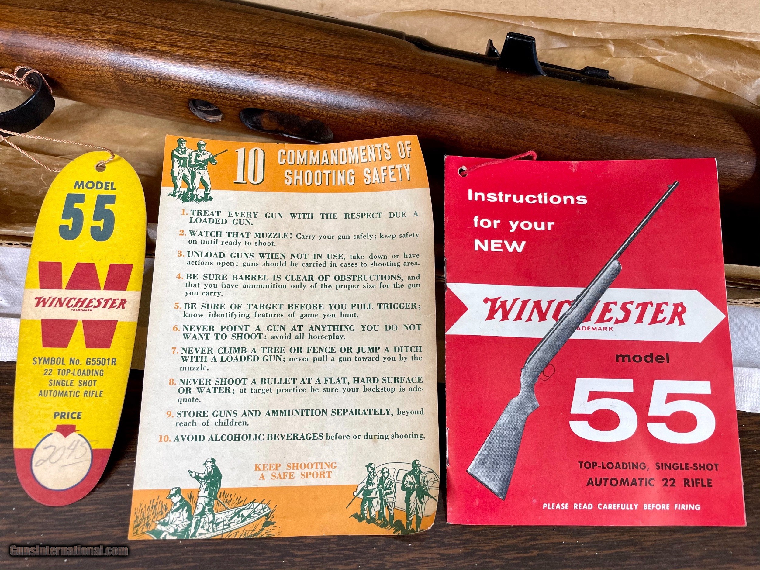 Description: For sale I have a Winchester model 55 that is unfired NIB. Included in this package is the original manual, warranty card, info card, and hang tag that has the original price of $20.60. This is one of the rarer 22s that you very seldom see come up for sale and this one is unfired in the original box! SOLD Rifle Caliber: .22 Long Rifle Manufacturer: Winchester |
