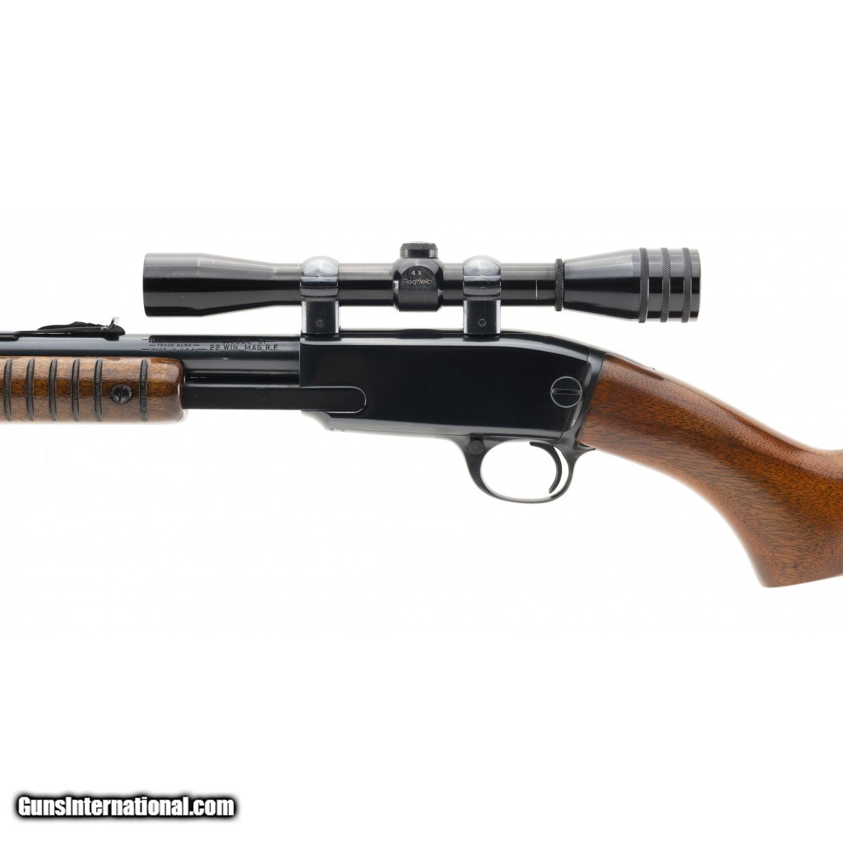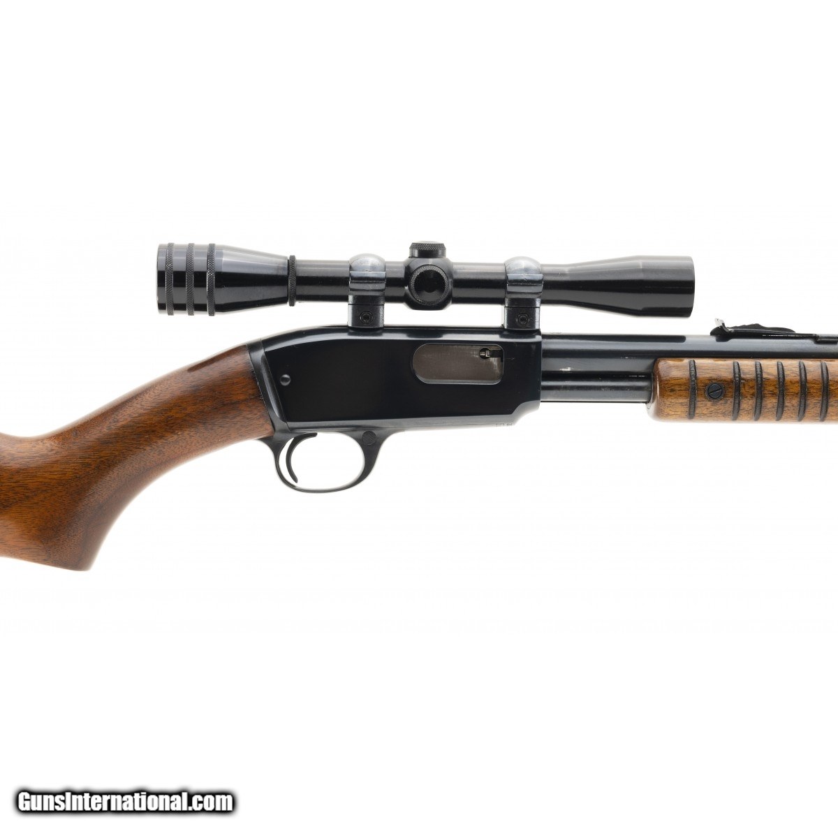 Desirable .22 magnum model with grooved receiver. Metal has been expertly refinished with a lustrous deep blue. (Which in our opinion is better than the factory finish.) Comes with a Redfield 4X scope. A popular .22 magnum!