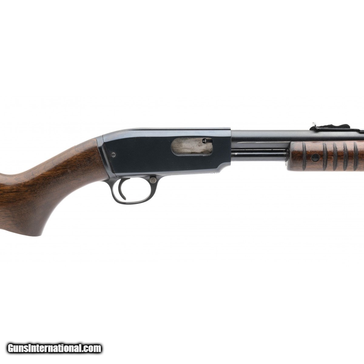 SN: 228151. Circa 1950s. Chambered in .22 short, long and long rifle with a 24"" barrel, bore is excellent. Slide action rimfire rifle with 95% original blue finish and walnut stock. Overall condition is very good plus condition with some light wear on barrel.