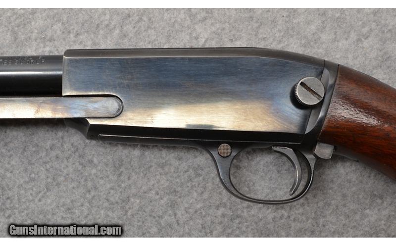 Description: Winchester model 61 in .22 S, L, LR. Featuring a 24" barrel with factory rear sight and front blade. Grooved action for optics. The bore is bright with strong rifling. Action shows some blue wear at the edges along with some very light patina. Barrel has some blue wear at the muzzle. The magazine tube and barrel show blue wear from operation. Stock and fore end have some handling marks, dings, and dents with a couple through the finish. This model 61 was built in the last year of production in 1963. .22 Long Rifle SOLD Metal Condition: Action has some light blue wear at the edges. Some real light patina on the right-hand side of action. Barrel and magazine tube show blue wear from operation and some blue wear at the muzzle. Wood Condition: "Stock and fore end have some handling marks, dings, and dents with a couple through the finish. Bore Condition: Bright bore with strong rifling. Barrels: 24" barrel. Triggers: Grooved trigger. Stock Dimensions: 13 1/2" LOP Fore End: Walnut stock and fore end. Butt Pad: Factory black plastic recoil pad. Weight: 5 lb - 10 oz Sights: Factory rear sight is adjustable for elevation and front blade. Grooved receiver for optics. Item Location: Mitchell, SD |