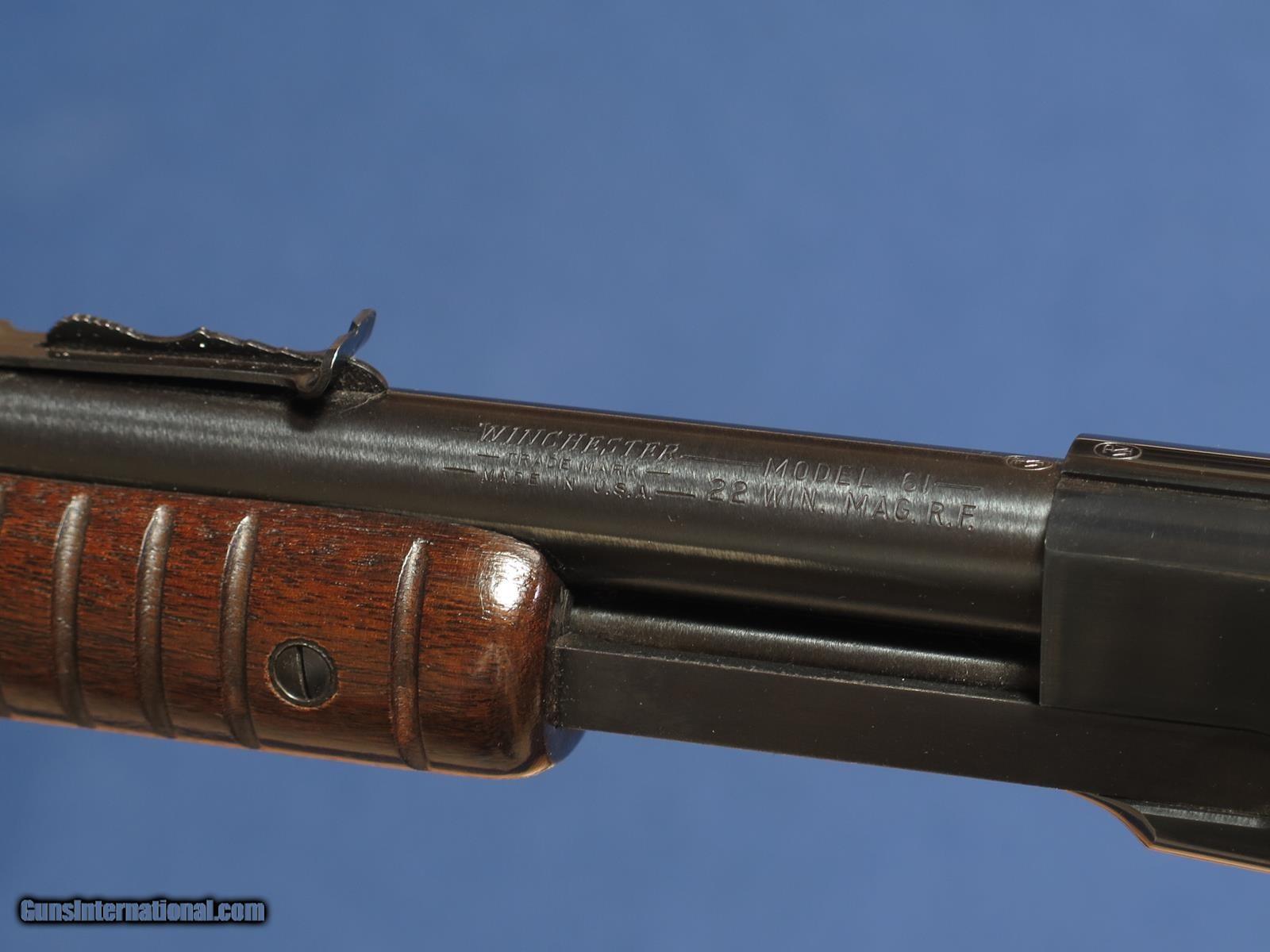Description: Winchester 61 22 Mag R.F. 24 inch barrel. 1960 mfg. Grooved top receiver. 98% original finish. Excellent bore. SOLD Curio/Relic: Yes |