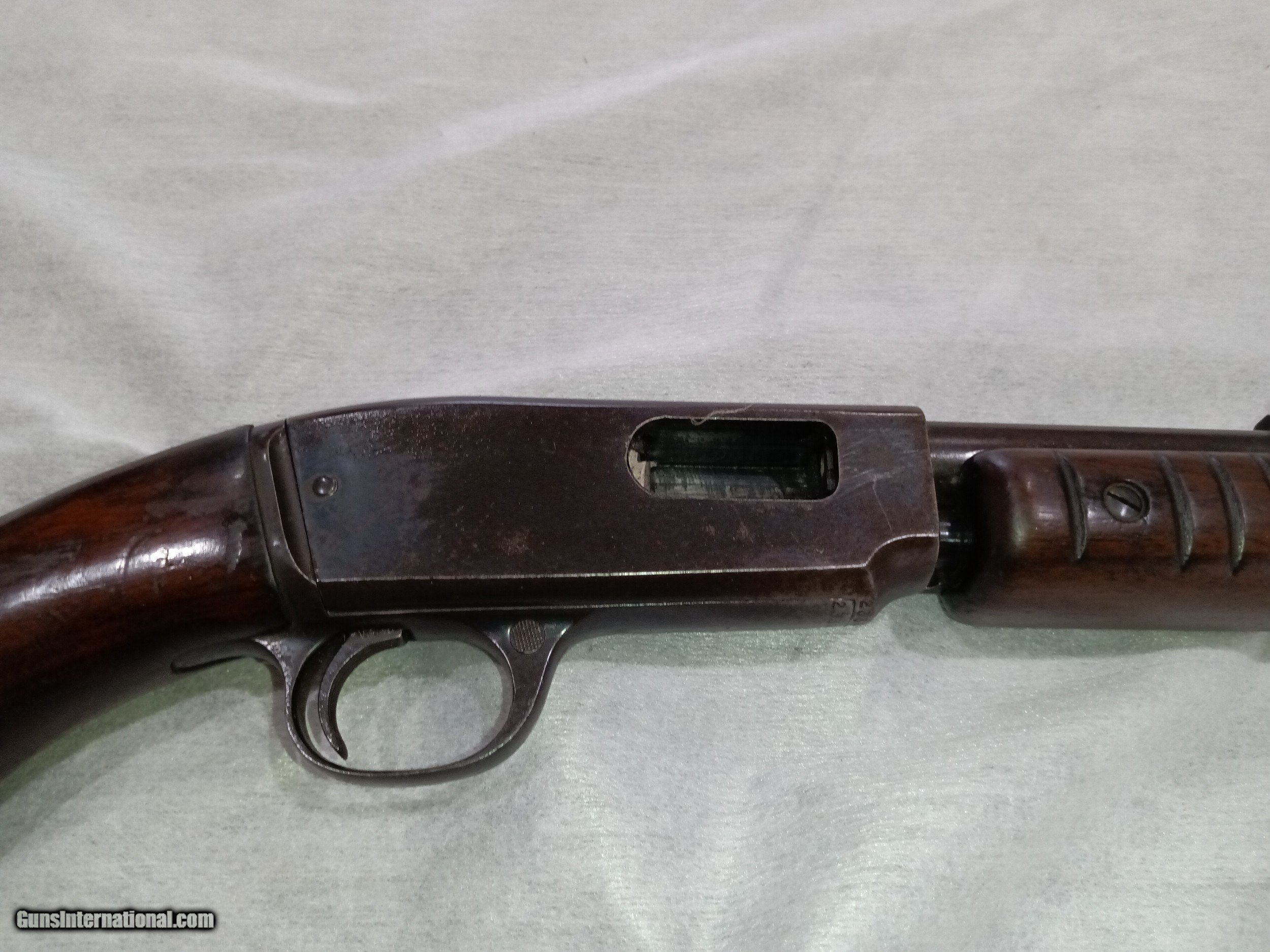 Description: winchester m61 22 cal good wood few minnor dings no cracks excellent shinny bore blueing turining patina metalbutt plate smooth action made 1958 SOLD |