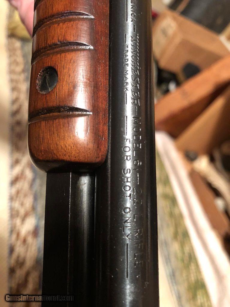 Description: Selling Winchester model 61 22 cal. shot only. This gun is mint, with no dings in wood and a collectors dream. It has a grove receiver. I have never loaded it since purchase, just cleaned it with the rigg. Serial # 2417xx, was made in 1956. I have owned this shotgun since 1960. I do not know about what bore it is, but a 22 cal. bullet has quite a lot of room around it when you set the lead in the end of the barrel. The gun has rigg grease on it, this is what you see in spots. This gun looks to have never been fired. So few were made that there is even not a category on this site for this particular gun SOLD Curio/Relic: Yes Manufacturer: Winchester Model: M61 Serial Number: 2417xx |