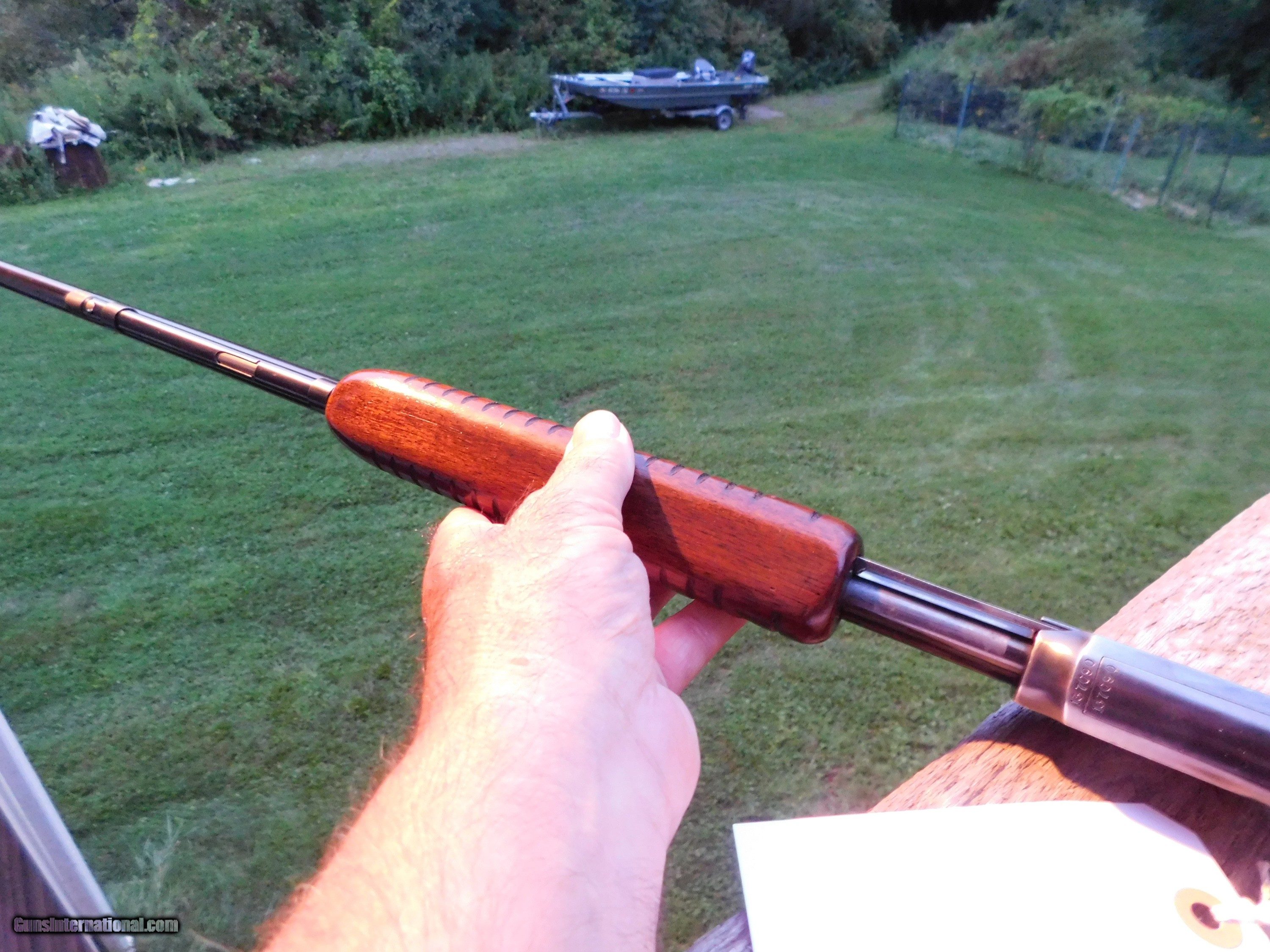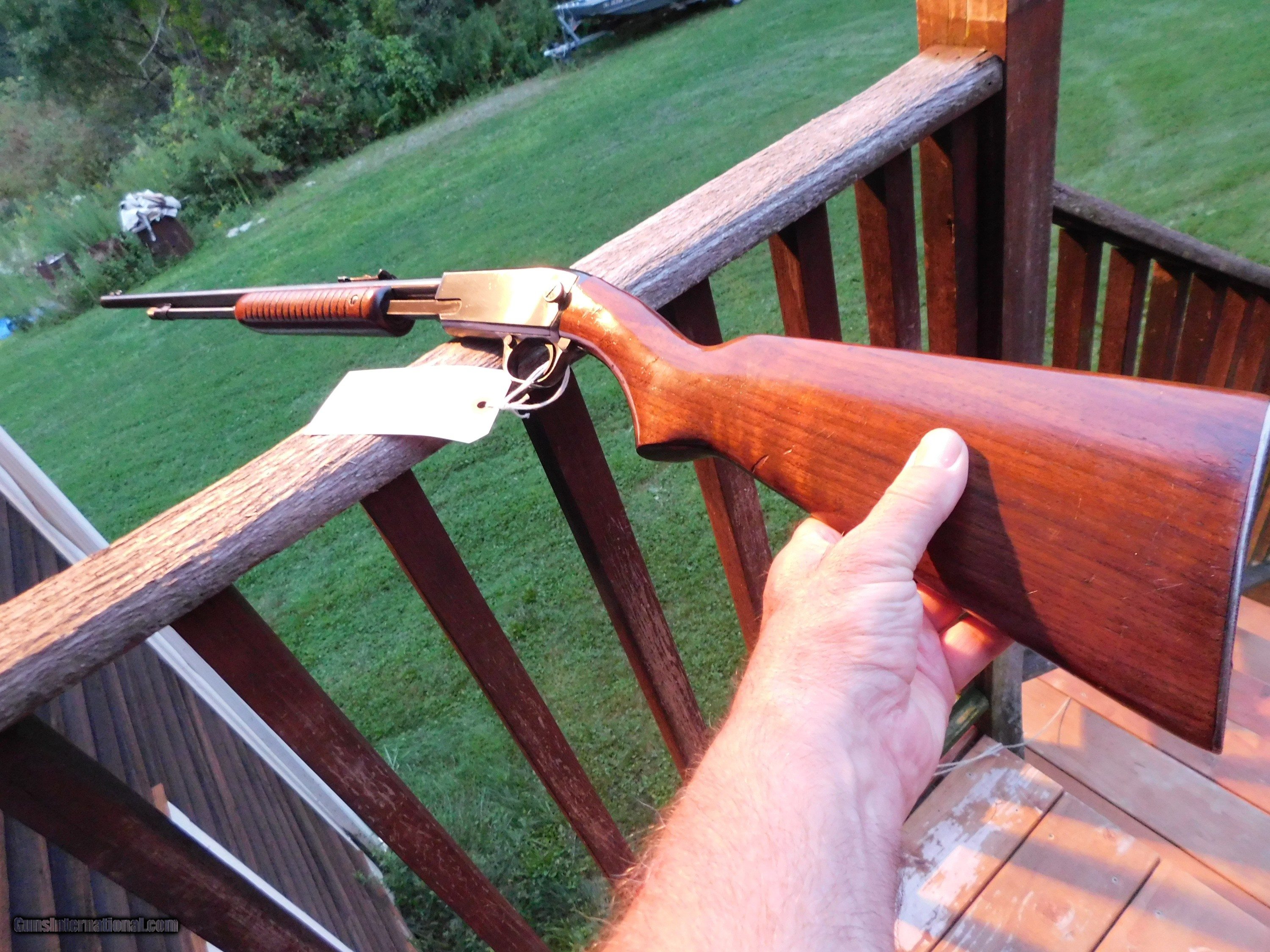 Description: SALE PENDING DAVE C. VA. 9/21/23 This came from the son of a Vermont Gentlman who's dad if i have it right was a country Dr. and a real sporting gentleman. He had many fine doubles, beautiful wood and canvass canoes and classic bamboo fly rods (inquire ...we bought two of these as well) In exceptional conditon for its age, well cared for and lighly used. Absolutly nothing that is not original to the gun, blue and stock finish are at or near 90%. The quality of the workmanship, blue and finish from Winchesters of this just past post WW11 era are 2d to none These are magnificent little take down 22's; ideal for shooting tin cans or early fall squirrel hunts. Shipping is $ 59.00 IF IT DOES NOT SAY ."SALE PENDING, UNDER DEPOSIT or ON HOLD"...IT IS AVAILABLE. WE DO NOT REPLY TO INQUIRIES THAT SAY "INTERESTED IN THIS GUN" OR "IS IT AVAILABLE" IF YOU WOULD LIKE TO BUY THIS OR ANY OF OUR GUNS WE SUGGEST YOU PHONE US; WE ARE OFTEN AVAIALABLE LONG HOURS. IF YOU ARE INTERSTED IN A GUN THAT IS UNDER DEPOSIT AND WOULD LIKE TO BE NOTIFIED IF A SIMILAR GUN COMES IN DROP US A LINE AND WE WILL MAKE EFFORTS TO CONTACT YOU WHEN ONE DOES COME IN. WE HAVE OVER 2000 SALES ON ALL SITES WITH AN A+ RATING ON ALL WE ALSO KEEP AN INVENTORY OF OLDER PERIOD CORRECT SCOPES; CALL WITH NEEDS WE MOSTLY PICK VERY CLEAN AND LIGHLTY USED GUNS. WE ARE HAPPY TO TAKE CONSIGNMENT GUNS AND COLLECTIONS OR WILL BUY YOURS OUTRIGHT. WE SOMETIMES ARE EMPLOYED FOR ESTATE PURPOSES AND VALUATIONS. AT THIS TIME WE ARE ONLY ACCEPTING US POSTAL MONEY ORDERS OR BANK CHECKS FOR PAYMENT IT IS THE BUYERS RESPONSIBILITY TO GET US A COPY OF YOUR RECEIVING FFL'S LIC AND A COPY OF YOUR PHOTO ID BEFORE THE GUN SHIPS YOU MUST CALL OR CONTACT YOUR FFL.WE DO NOT CALL FOR YOU UNLESS THEY RQUIRE IT. LAYAWAY PURCHASES NOT COMPLETED ON ANY RETURNED ITEM UNLESS NOT AS DESCRIBED OR DAMAGED ARE SUBJECT TO A 10% RELISTING/RESTOCKING FEE AND MUST BE RETURNED WITH NO NEW MARKS OR SCRATCHES, SENT BACK INSURED, PRIORITY SIGNATURE REQUIRED. ALL INFORMATION CONTAINED HEREIN IS BELIEVED TO BE ACCURATE BUT IS NOT GUARANTEED. WITH ANY OLDER OR USED GUN IT SHOULD BE INSPECTED BY A GUNSMITH PRIOR TO SHOOTING. SOLD |