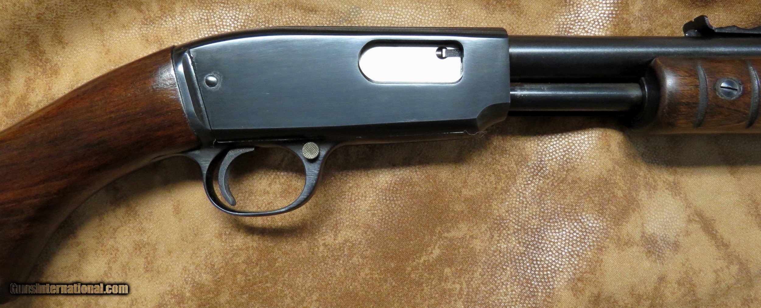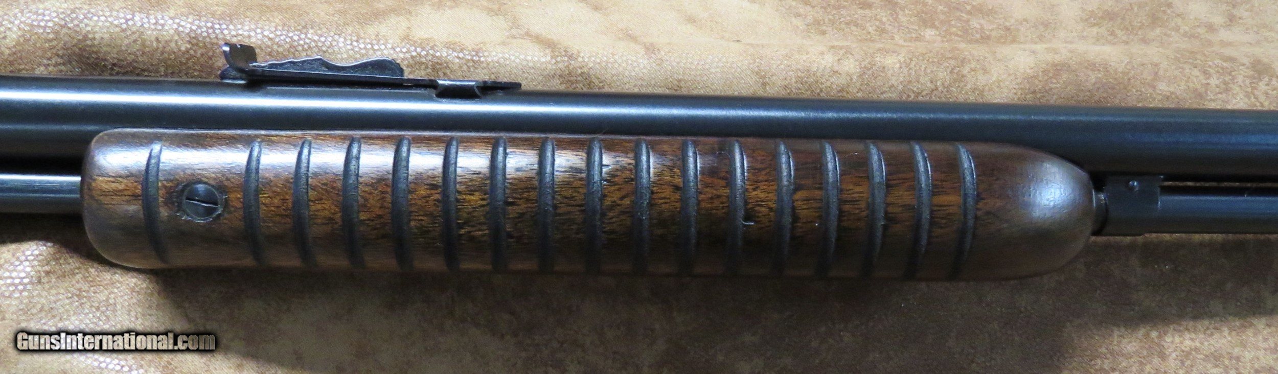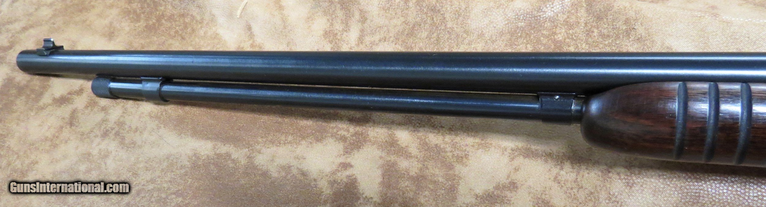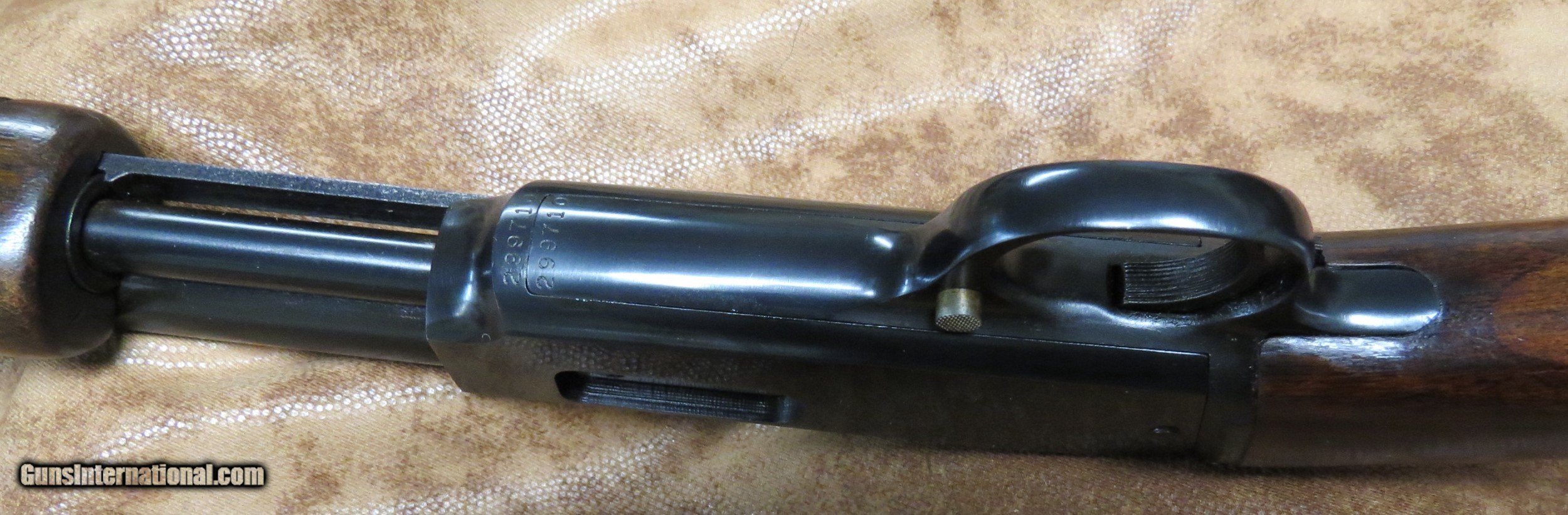Description: Winchester Model 61 .22 Magnum R.F. This gun is all factory correct & unmonkeyed with. Early magnum production... approx 1959. Shows vitually no wear from use other than SLIGHT blue loss line on bbl from pump handle travel. Virtually no high edge wear. Sharp & crisp all around. One or two very minor handling marks on wood. Bought this gun from original owner and he believes he never fired it. Not much to say.... just about as new as they come. I have had boxed guns that have more wear & marks than this gun does. Priced below market for immediate sale. More nice collectible pieces on my site (dot)foxriversporting(dot)com SOLD Curio/Relic: Yes Caliber Info: .22 Magnum |