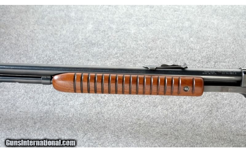 Description: SOLD Curio/Relic: Yes Manufacturer: 1958 Caliber Info: .22 S, L or LR Metal Condition: Fair, wear on the sharp edges, scratches and an area of finish damage on the barrel Wood Condition: Refinished in good condition Bore Condition: Very good, bright and sharp Barrels: 24 inch Stock: Walnut pistol grip stock Stock Dimensions: 13 1/2 inch LOP Fore End: Flat bottom 16 groove fore end Butt Pad: Winchester black plate Weight: 5 lbs. 9 oz. Sights: Sporter rear, bead front Item Location: Lehi, UT |