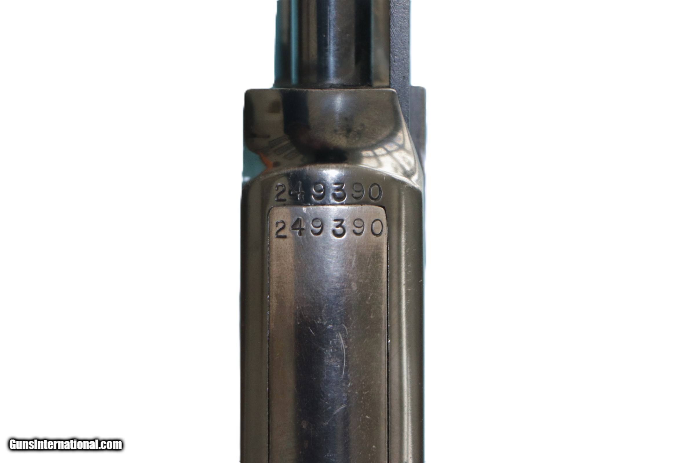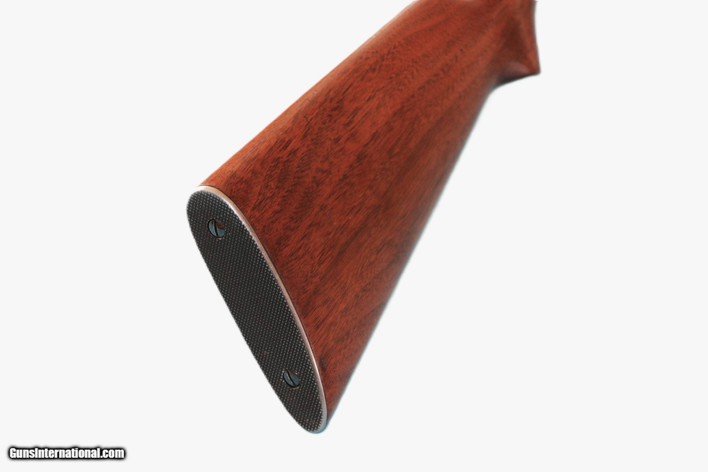 Description: This Winchester Model 61 is a right hand pump action rifle in .22 Short, Long or LE. 24" barrel, 13.5" LOP. Contains a blade front sight and an adjustable notch middle sight. The butt stock is a smooth grip walnut pistol grip style. The forearm is a walnut grooved. Serial Number 249390. Add $45 S+H SOLD Rifle Caliber: .22 Short Manufacturer: Winchester Model: 61 Serial Number: 249390 Barrel Length: 24 Bore: Clean Condition: VG Metal Condition: Good Wood Condition: VG Bore Condition: VG Action: Pump Stock: Wood |