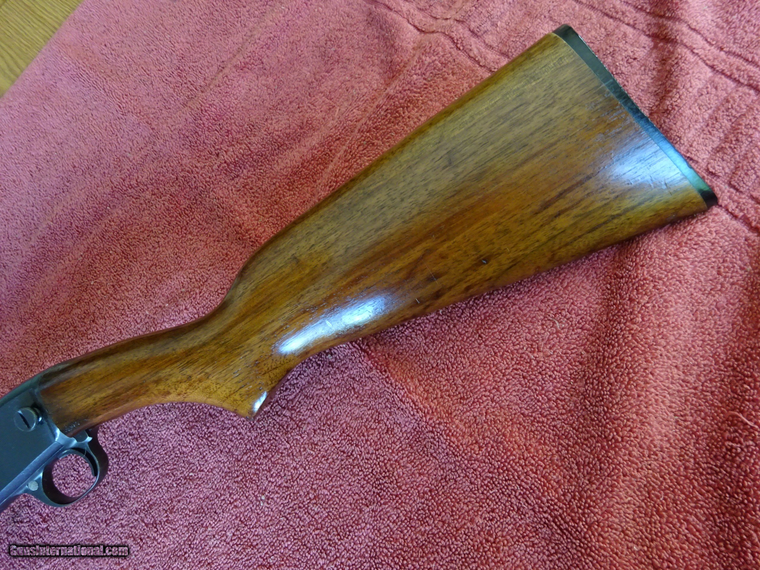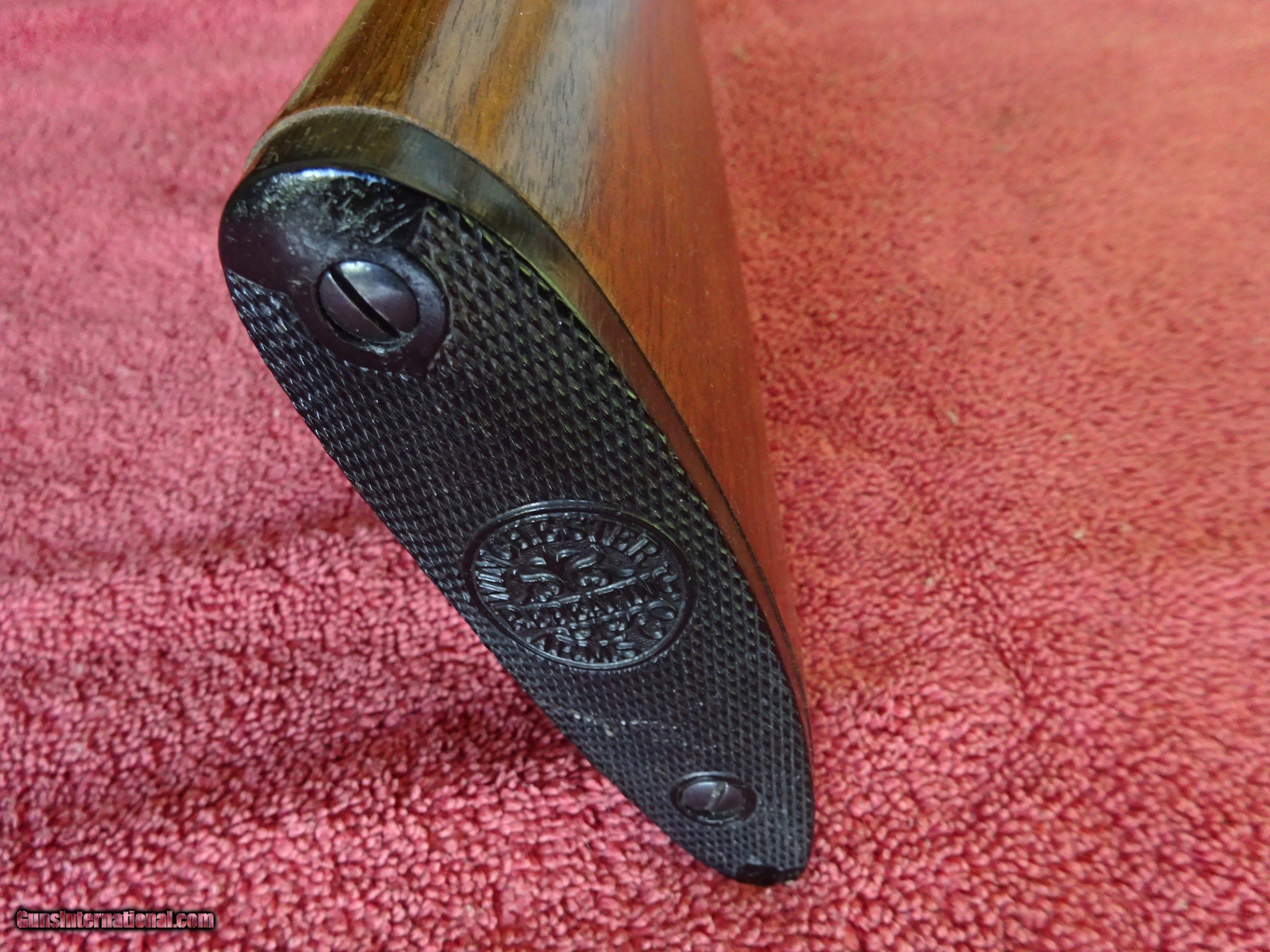 Description: SALE PENDING WINCHESTER MODEL 61, 22 S. L. OR L.R., 24" ROUND BARREL. MIRROR PERFECT BORE, ONLY BARREL BLUE WEAR IS FROM THE MOVEMENT OF THE SLIDE. GROOVED RECEIVER WITH 100% BLUE, NO EDGE WEAR. PISTOL GRIP STOCK, RIBBED FOREARM, NEAR PERFECT WOOD AND VARNISH, COMPOSITION BUTTPLATE. 100% ORIGINAL CONDITION. HARD TO FIND A NICER EXAMPLE. MADE IN 1963, THE FINAL YEAR OF PRODUCTION. $1275.00 + $60.00 Insured shipping to an FFL address. Layaway is available. See all Pats gun listings on this site! We also have hundreds of pieces of ORIGINAL gun company advertising & memorabilia available for sale on our site SPORTINGCOLLECTIBLES. We have no reprints or reproductions. Email for more information. SOLD Curio/Relic: Yes |