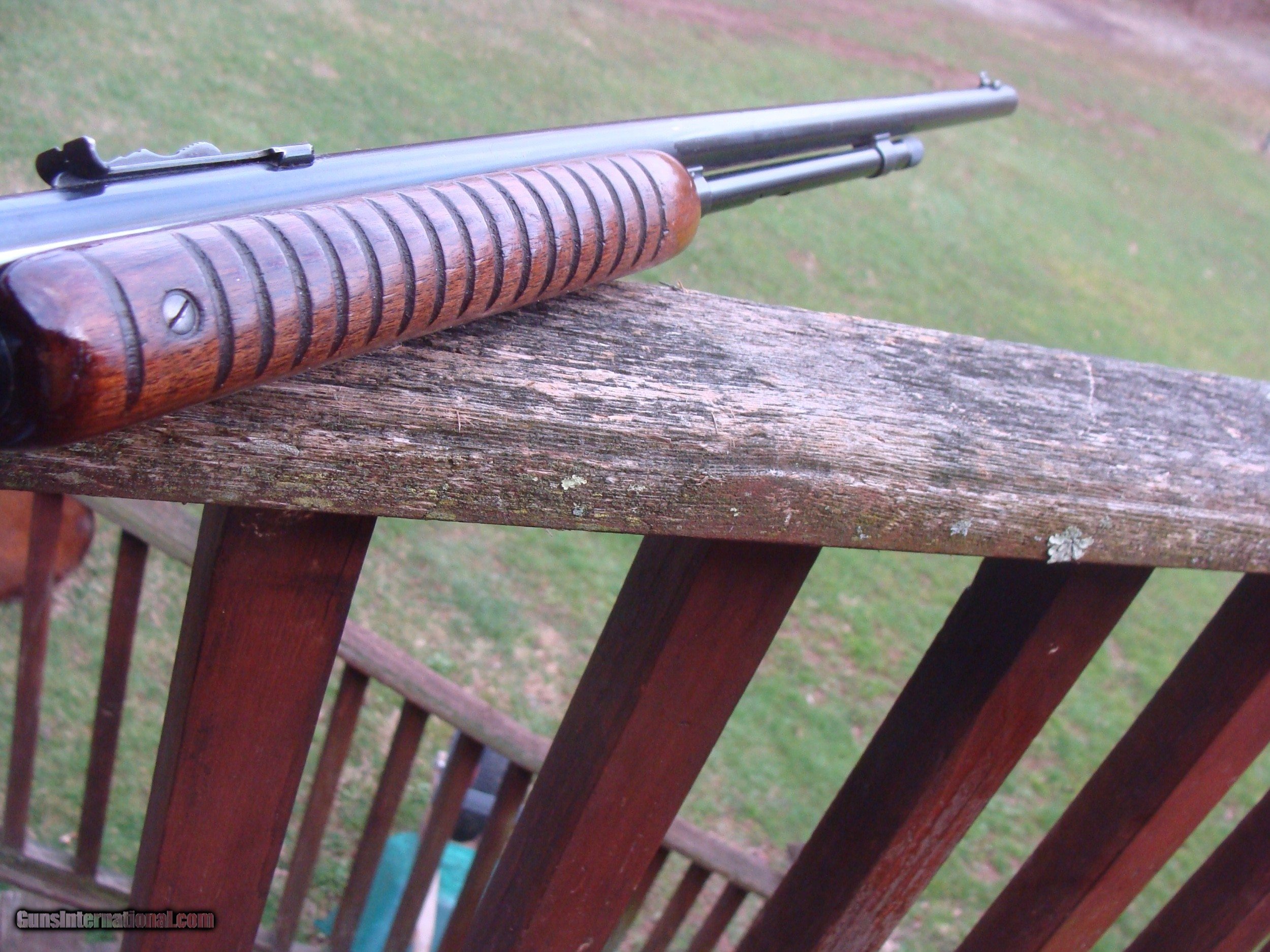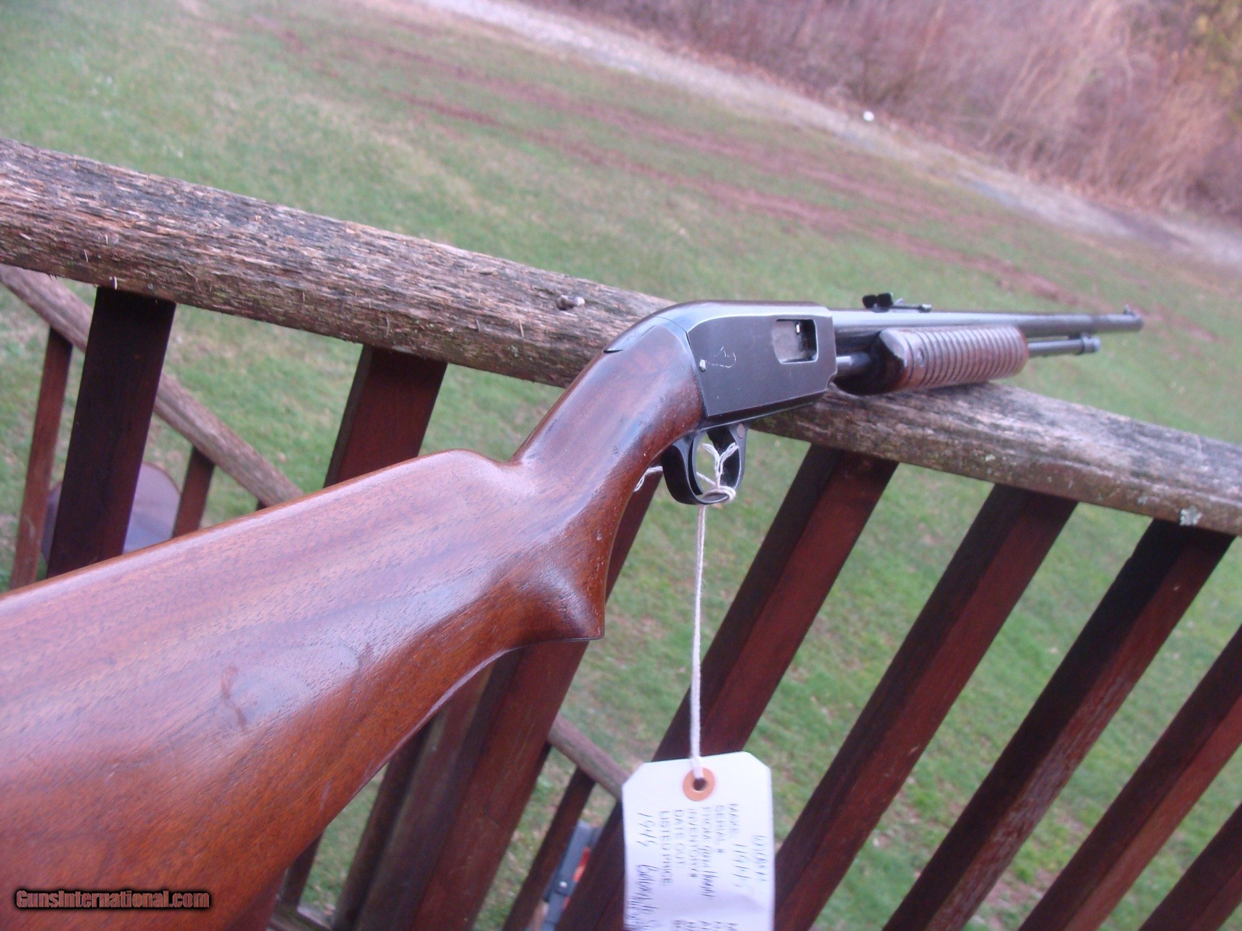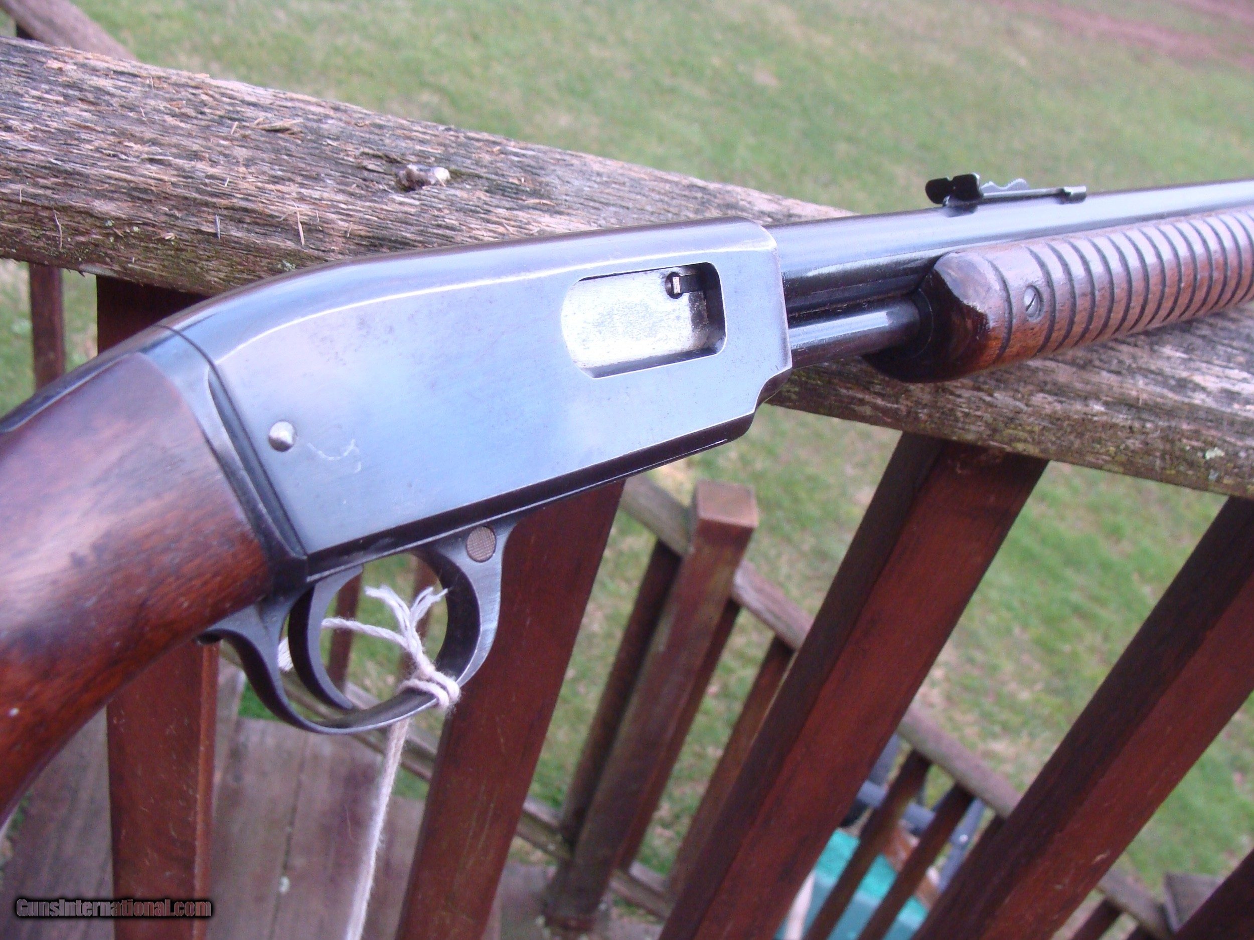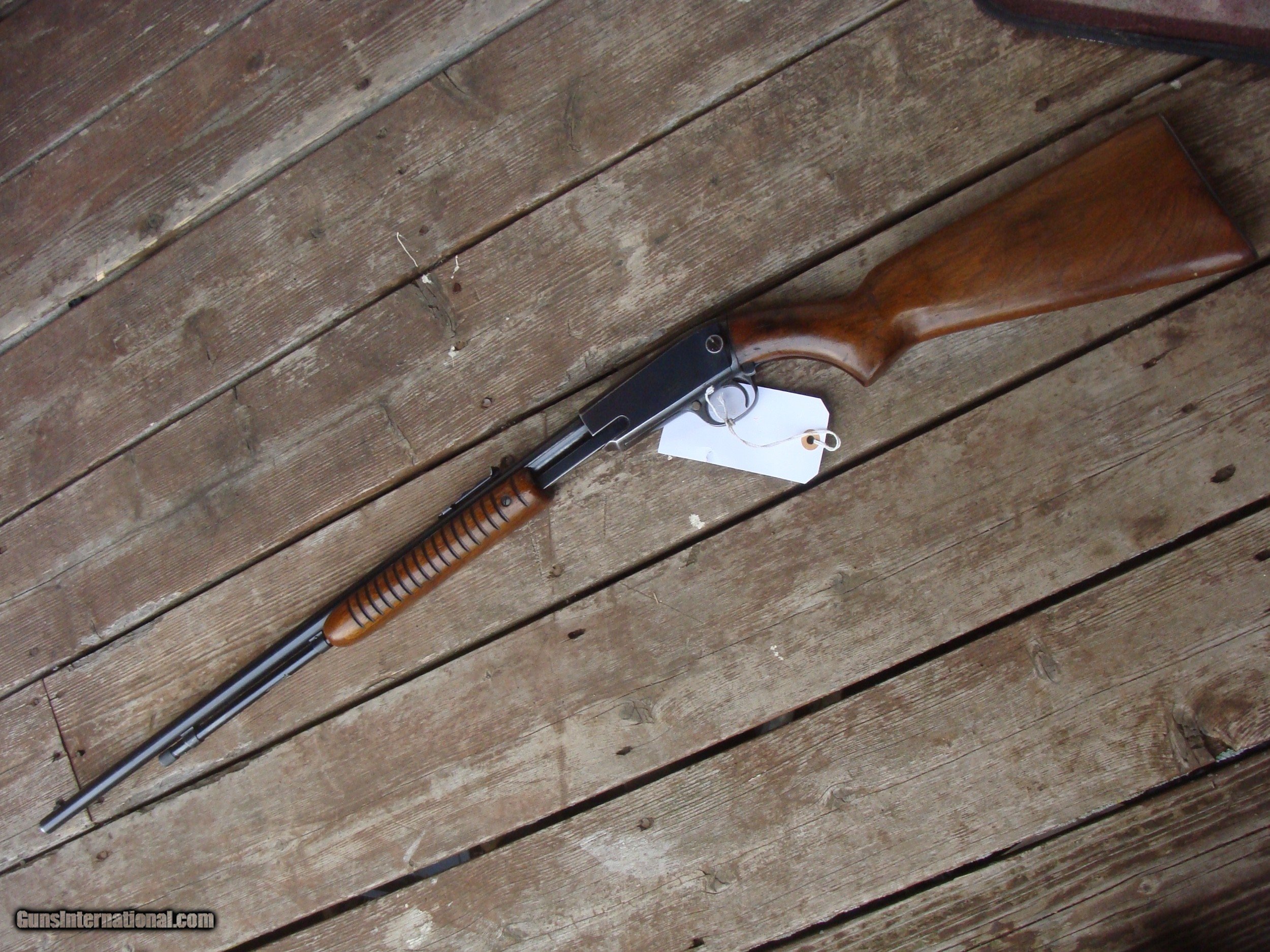 Description: Nice looking Model 61 pump action repeater. Quality New Haven Winchester 22 rifle. Produced in 1948 where there were real craaftsmen at Winchester who took pride in their work. These guns have beautiful lines, are reliable and handy as takedowns for packing, shipping and storing. This gun has normal wear for its age, we are calling it about 80% but would not argue a little above or below. There are no meaningful flaws to speak of. No rust or pitting or other than normal carry wear. These had been a prof. repair to the stock up near the pistol grip that is not really evident. Not often found at this price. Shipping is $ 48.00 (more to Ak and Hi and some W. Of the Miss. R Locations) PLEASE READ EVERYTHING BELOW IN BOLD: IF IT DOES NOT SAY NEXT TO THE PRICE..."SALE PENDING OR UNDER DEPOSIT"...IT IS AVAILABLE. WE DO NOT REPLY TO INQUIRIES THAT SAY "INTERESTED IN THIS GUN" OR "IS IT AVAILABLE" IF YOU WOULD LIKE TO BUY THIS OR ANY OF OUR GUNS WE SUGGEST YOU PHONE US; WE ARE OFTEN AVAIALABLE LONG HOURS. IF YOU ARE INTERSTED IN A GUN THAT IS UNDER DEPOSIT AND WOULD LIKE TO BE NOTIFIED IF A SIMILAR GUN COMES IN DROP US A LINE AND WE WILL MAKE EFFORTS TO CONTACT YOU WHEN ONE DOES COME IN. WE HAVE OVER 2000 SALES ON ALL SITES WITH AN A+ RATING ON ALL WE ALSO KEEP AN INVENTORY OF OLDER PERIOD CORRECT SCOPES; CALL WITH NEEDS WE MOSTLY PICK VERY CLEAN AND LIGHLTY USED GUNS. WE ARE HAPPY TO TAKE CONSIGNMENT GUNS AND COLLECTIONS OR WILL BUY YOURS OUTRIGHT. WE SOMETIMES ARE EMPLOYED FOR ESTATE PURPOSES AND VALUATIONS. CT RESIDENTS MUST CONTACT US TO UNDERSTAND OUR IN STATE TRANSFER POLICIES. PAYMENT USPS MONEY ORDER ONLY AT THIS TIME. ( WE CAN TAKE A DEPOSIT WITH A CARD BUT THE GUN MUST BE PAID WITH A USPS MONEY ORDER) IT IS THE BUYERS RESPONSIBILITY TO GET US A COPY OF YOUR RECEIVING FFL'S LIC AND A COPY OF YOUR PHOTO ID BEFORE THE GUN SHIPS YOU MUST CALL YOUR FFL.WE DO NOT CALL FOR YOU. LAYAWAY PURCHASES NOT COMPLETED OR ANY RETURNED ITEM UNLESS NOT AS DESCRIBED OR DAMAGED ARE SUBJECT TO A 10% RELISTING/RESTOCKING FEE AND MUST BE RETURNED WITH NO NEW MARKS OR SCRATCHES, SENT BACK INSURED, PRIORITY SIGNATURE REQUIRED. ALL INFORMATION CONTAINED HEREIN IS BELIEVED TO BE ACCURATE BUT IS NOT GUARANTEED. WITH ANY OLDER OR USED GUN IT SHOULD BE EXAMINED BY A GUNSMITH OR COMPETENT EXPERT PRIOR TO USE) SOLD |